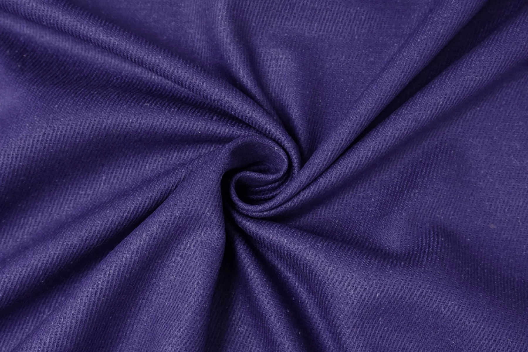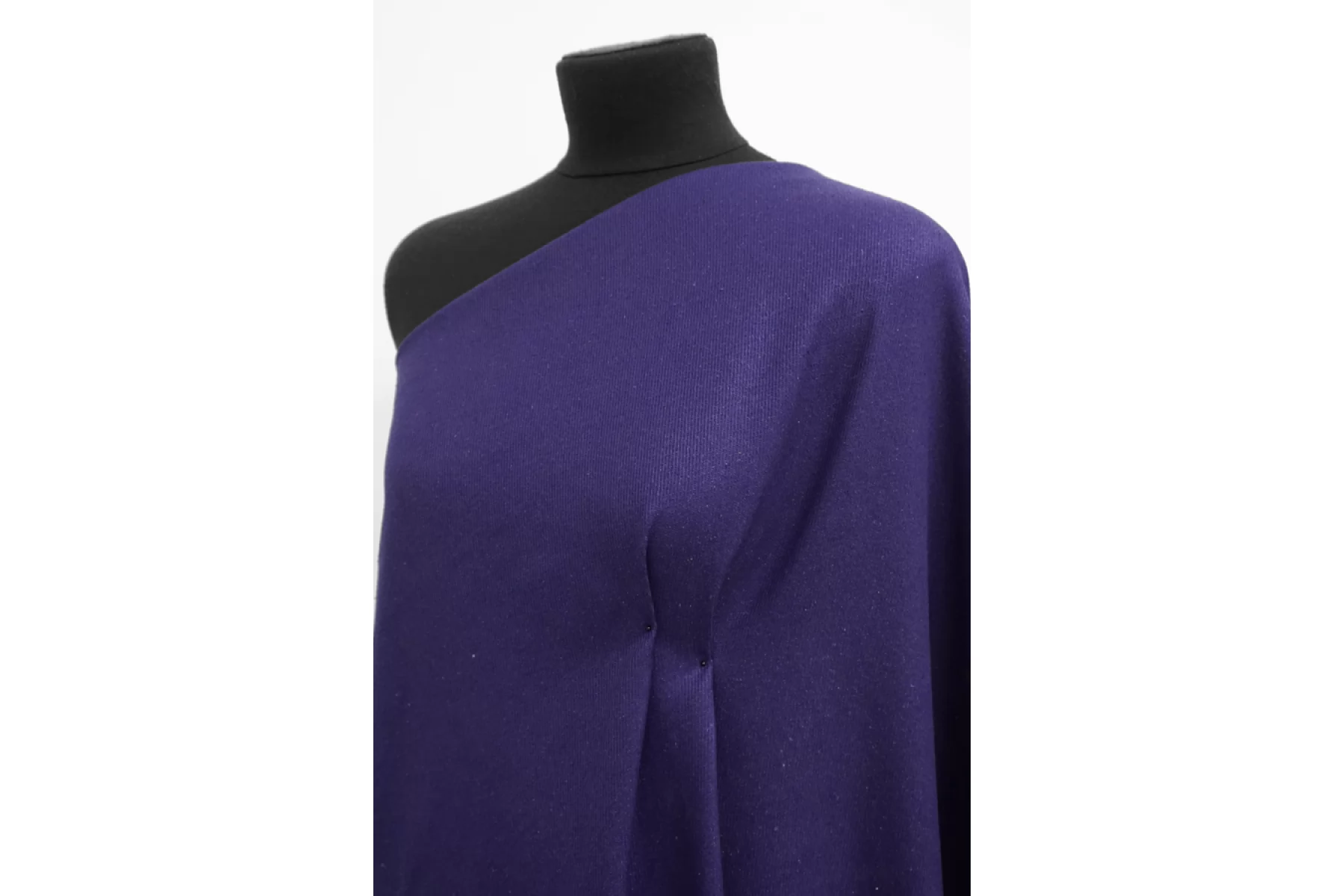 Буретный костюмный шелк диагонального плетения фиолетового оттенка. Буретный шелк - это так называемый дикий шелк, отличается своей экологичностью и гиппоалергенностью. За счет того, что шелк дикий, имеет естественные узловатые уплотнения или вкрапления. Плетение плотное. Ощущается плетение диагоналей. Материал мягкий, слегка суховатый, с легким лоском. Сминается, но восстанавливается практически полностью. Не просвечивает. Неплохо держит форму, красив в складках и своей пластике. Вариант на костюмы, платья, жакеты, кимоно, свободные брюки, юбки. Рекомендуется деликатный уход.