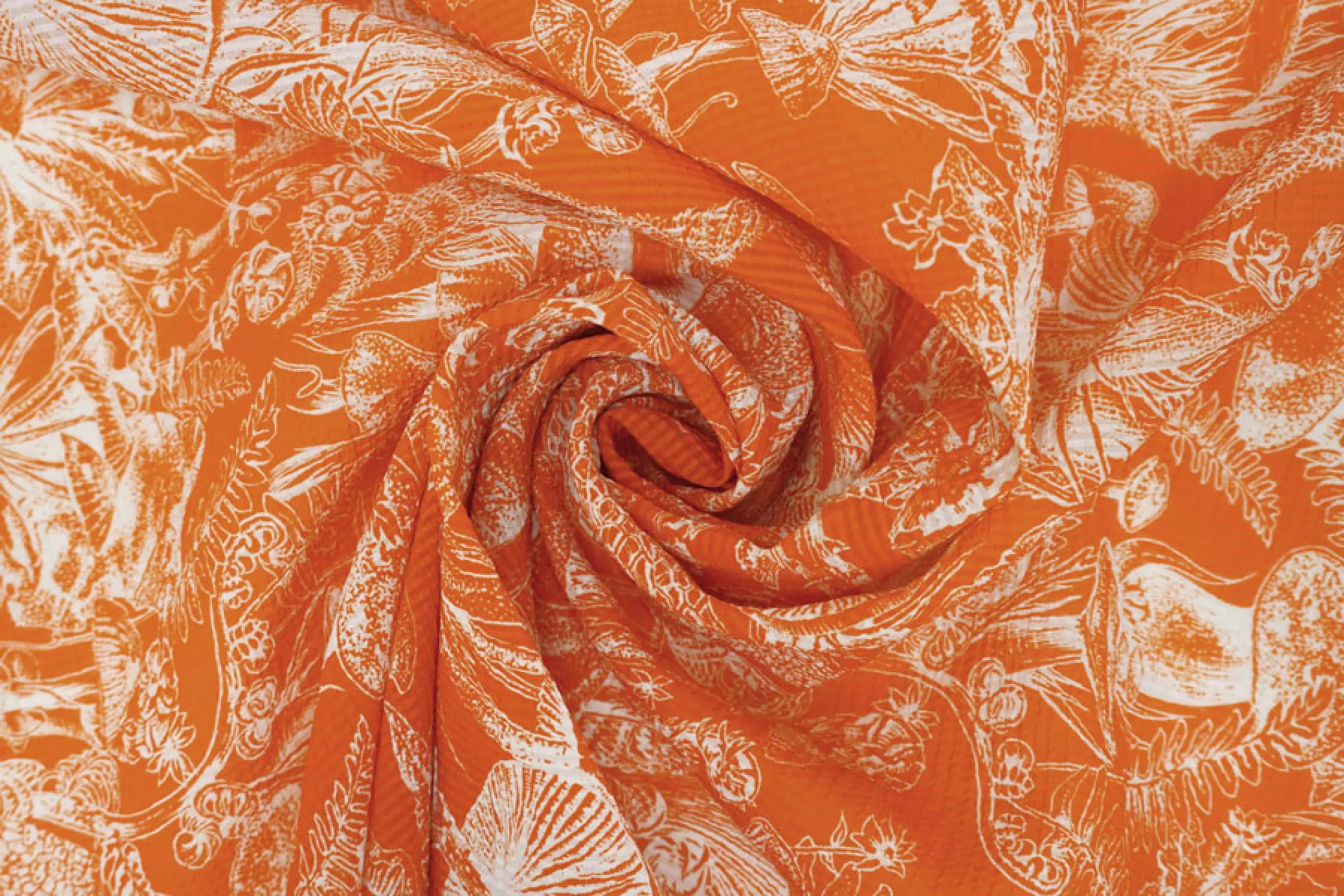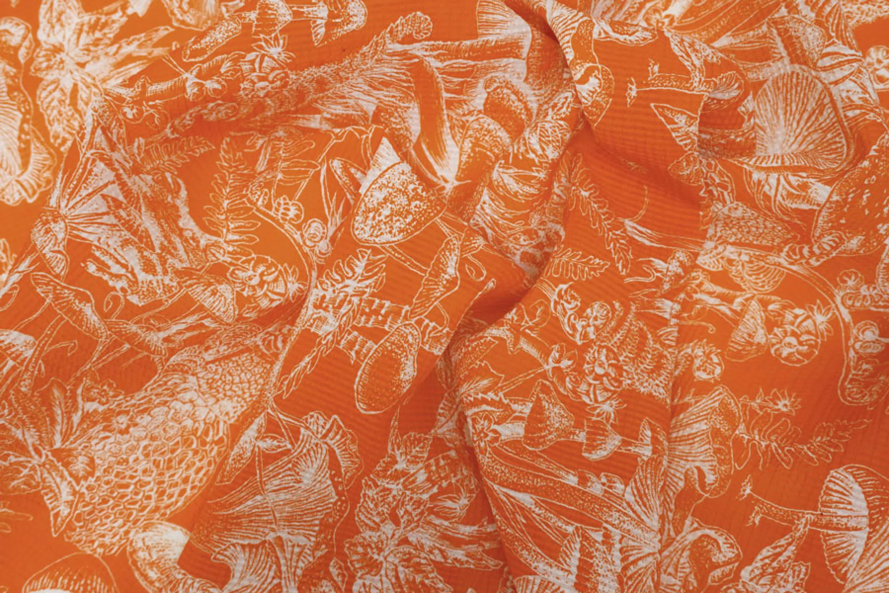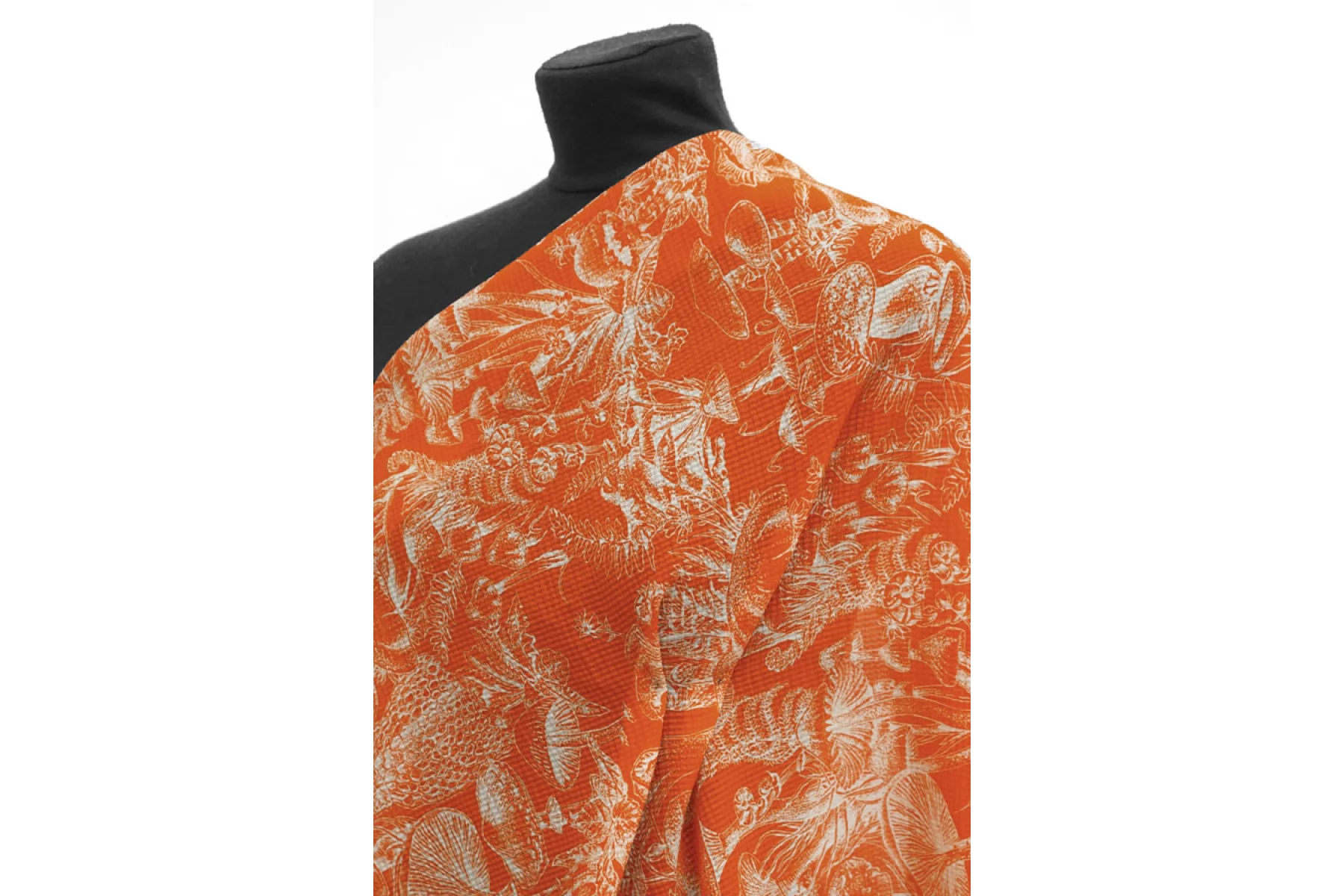 Шелк фактурный сирсакер Оранжевый Грибы BRS H33 N60 16122455