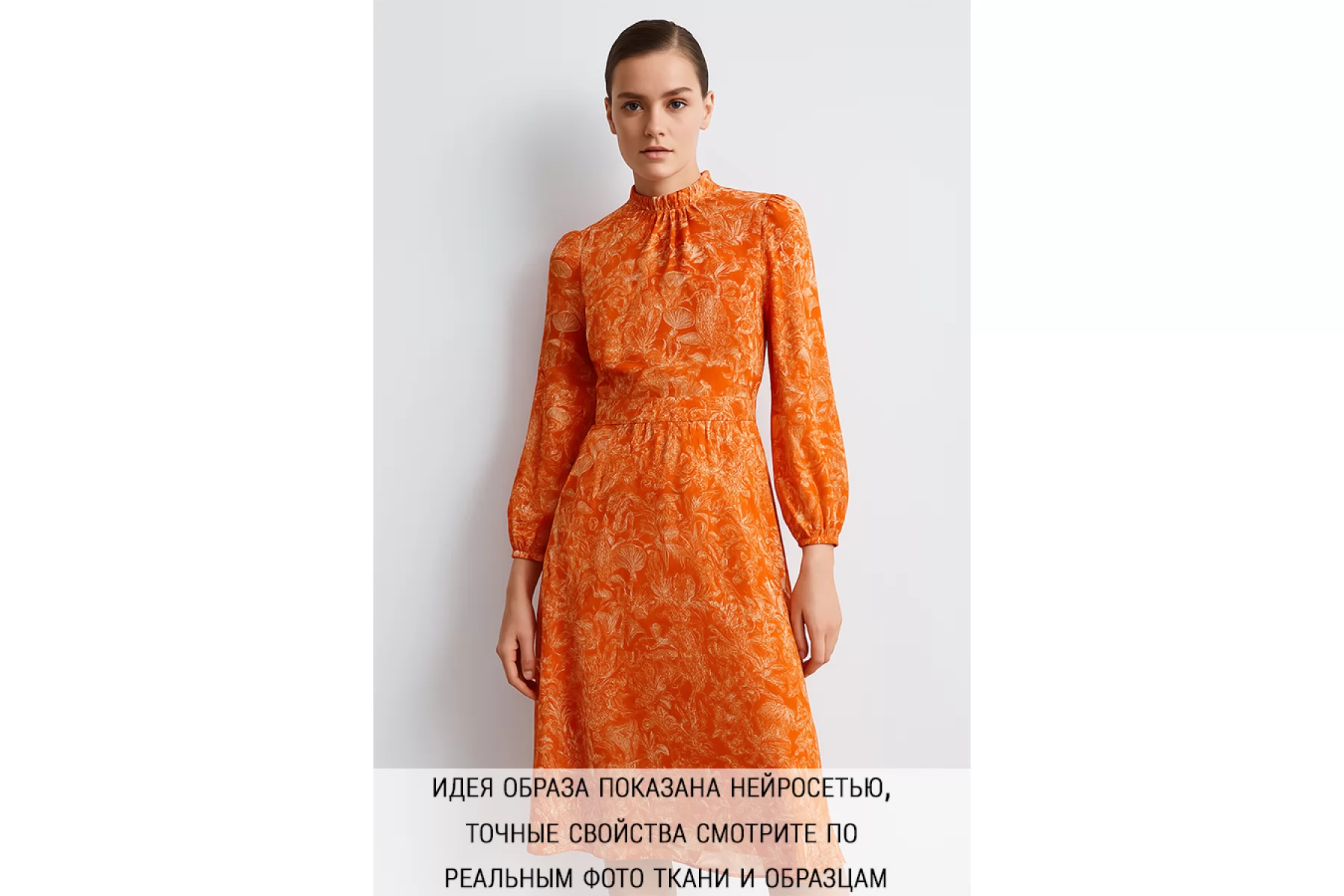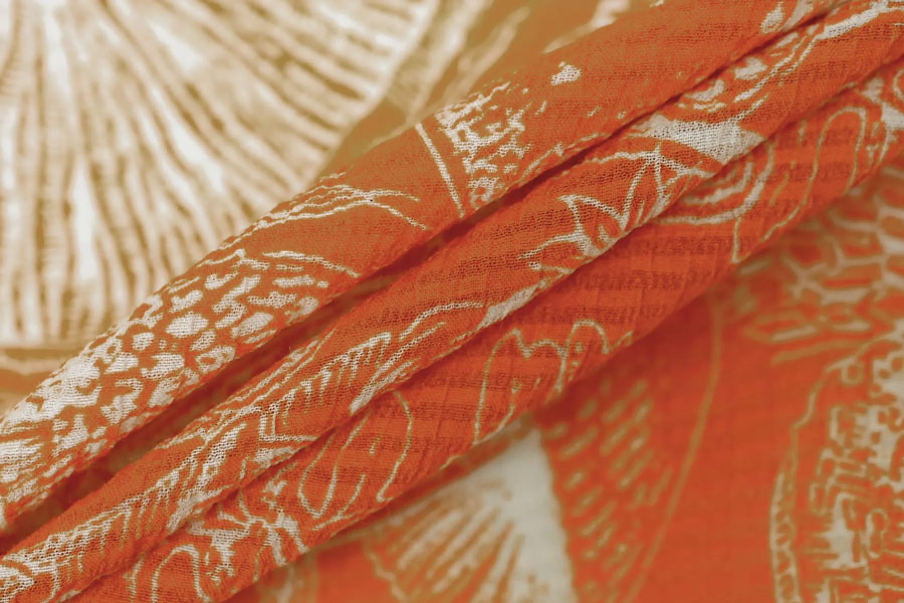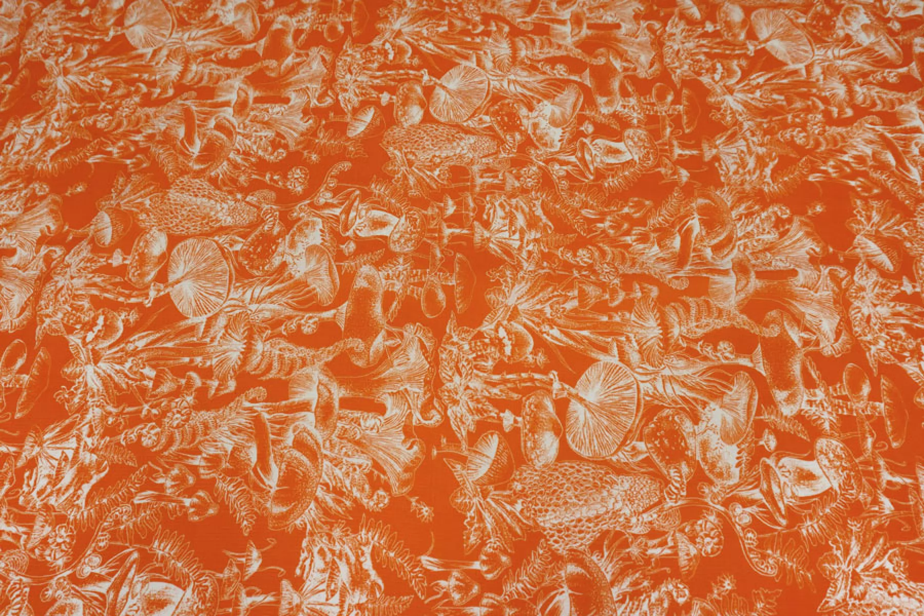 Шелк фактурный сирсакер Оранжевый Грибы BRS H33 N60 16122455