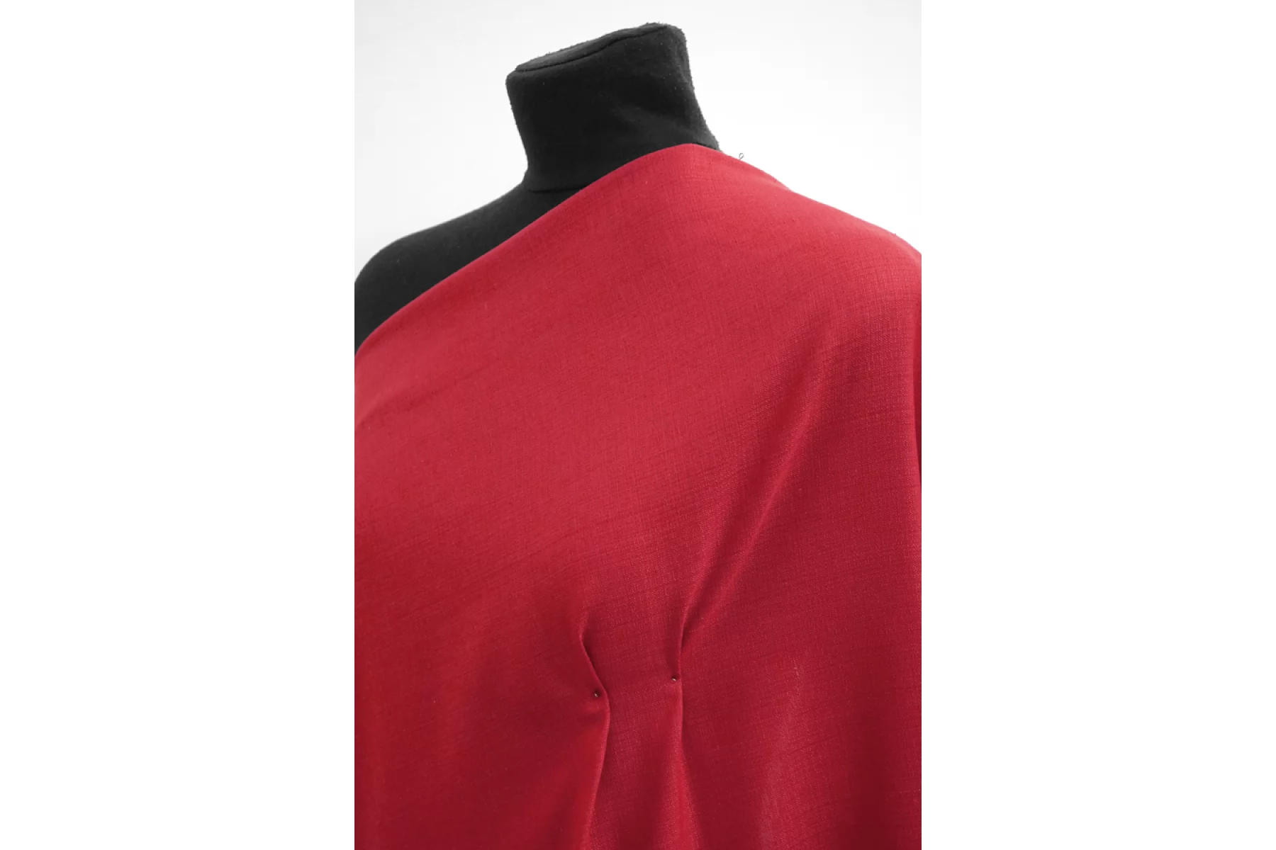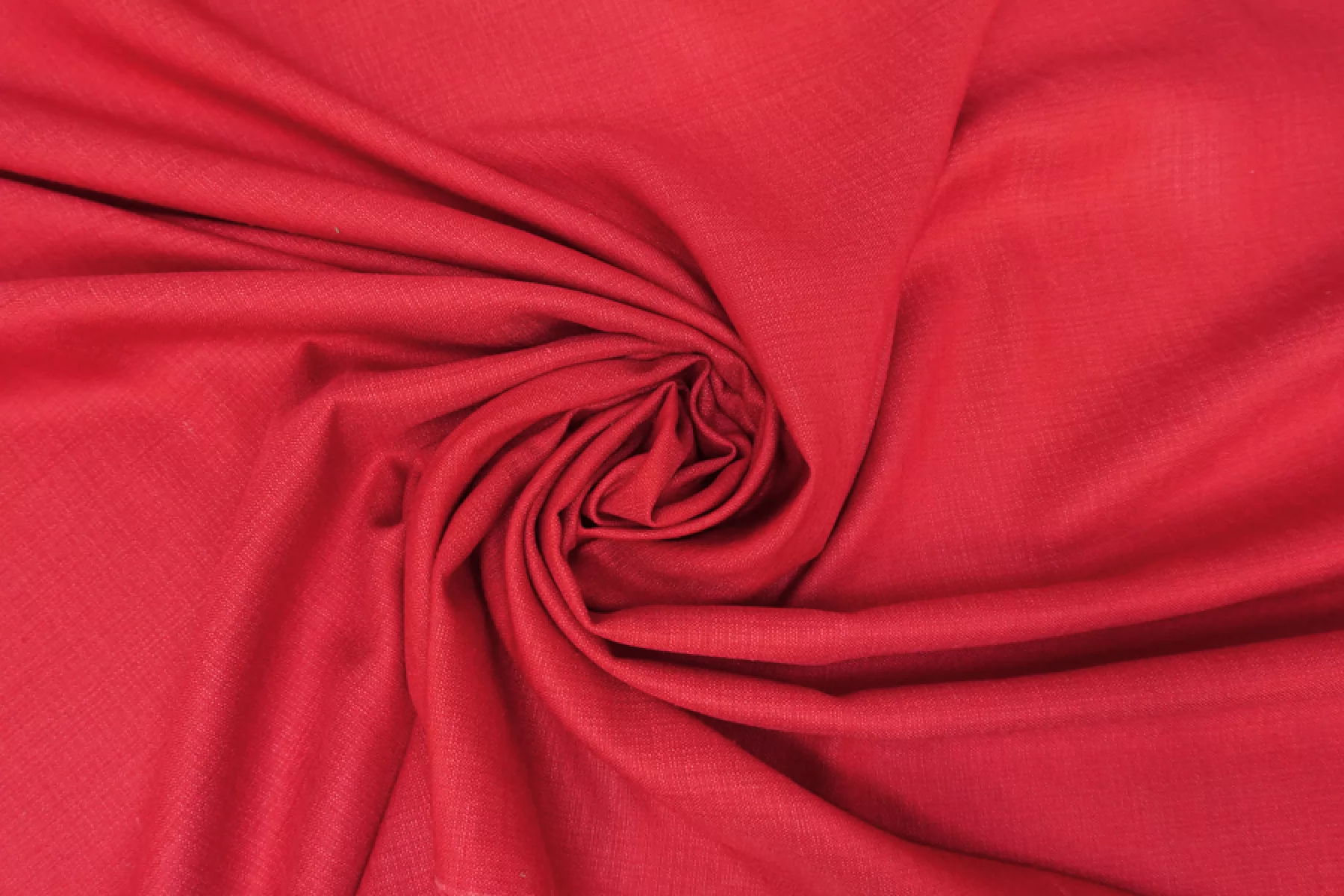 Прекрасный буретный шелк в насыщенном красном цвете, плотность плательно-рубашечная. Нити с красивым мягким лоском. Материал тонкий но плотный. Не тянется. Немного мнется. Красиво драпируется. Прекрасный вариант на нарядные платья, юбки, рубашки, кимоно. Уход деликатный.