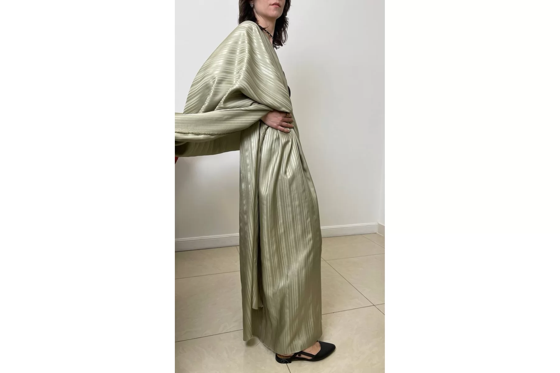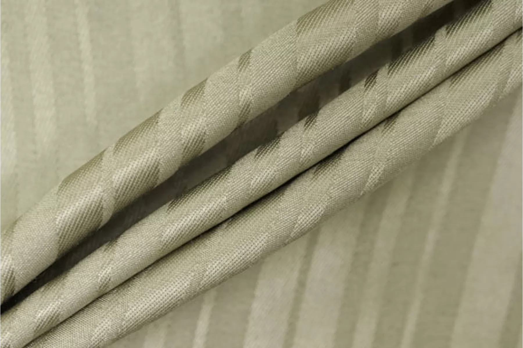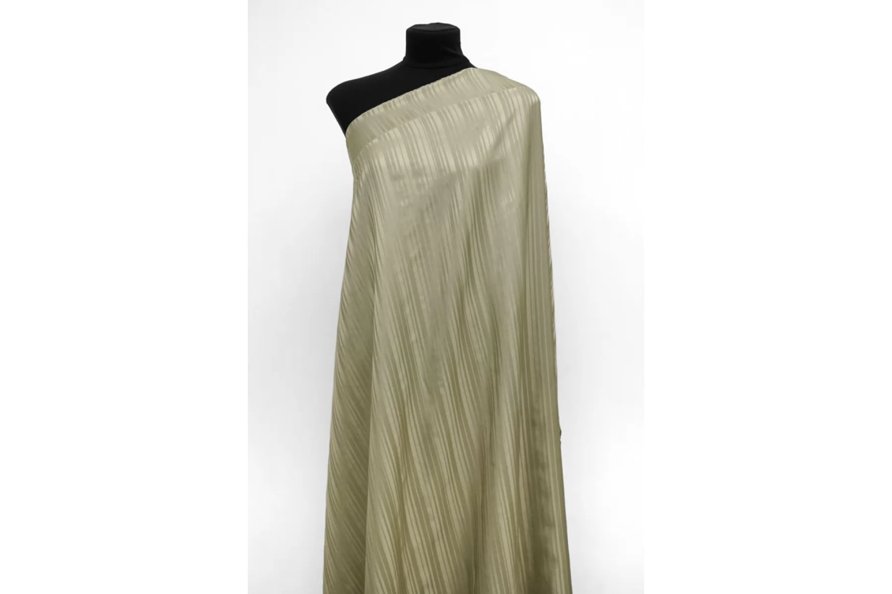 Внимание! Встречаются зацепки. Великолепный плательный шелк зеленовато-бежевого оттенка от HUGO BOSS с жаккардовыой выработкой в виде вертикальных полосок. Гладкий, плотный, не просвечивается. Слегка сминается. Форму не держит, но красиво драпируется. Подойдет на нарядные и не только: платья, юбки, жакеты. Уход за материалом деликатный.