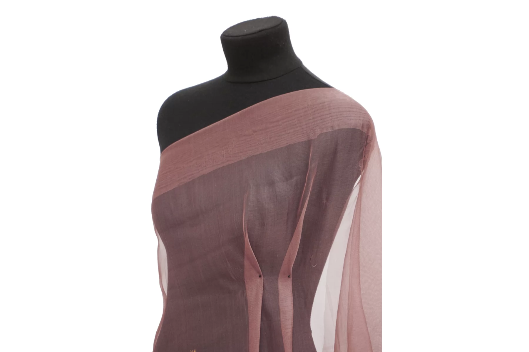 Прекрасная шелковая сетка, легкая, летящая, тонкая, полупрозрачная, в красивом темном припыленно-розовом оттенке. Не тянется. Мягкая, красиво смотрится в складке. Отлично подойдет как на повседневные на блузку, платье, тунику или юбку, так и для торжественных нарядов. Ткань легкая и нежная, возможны раздвижки при пошиве. Внимательно выбирайте иглы и нитки для пошива.