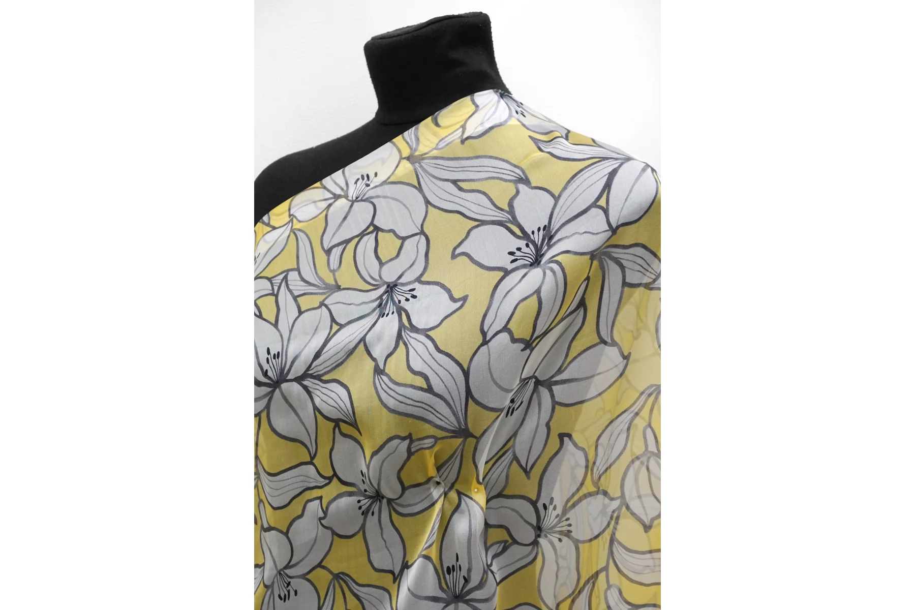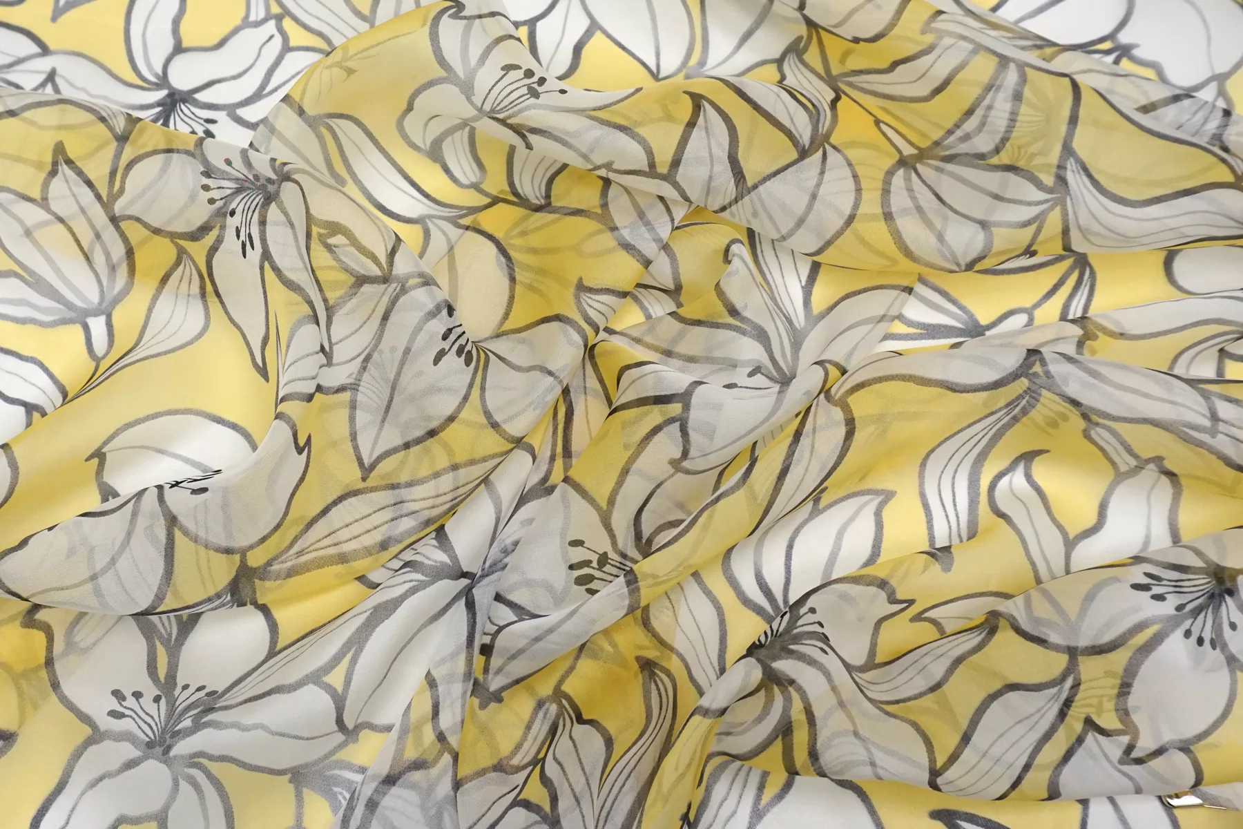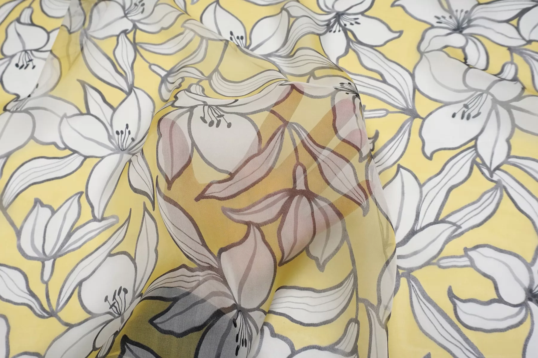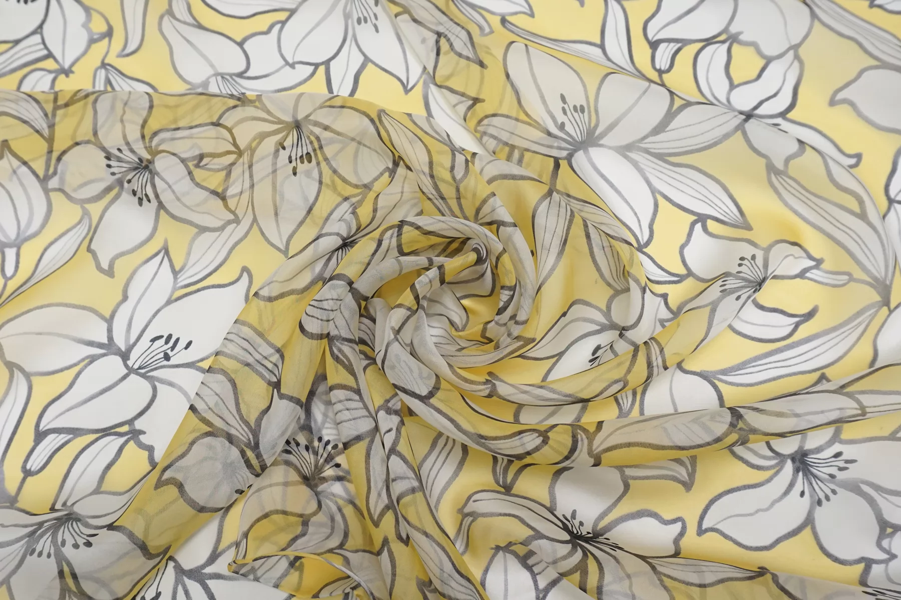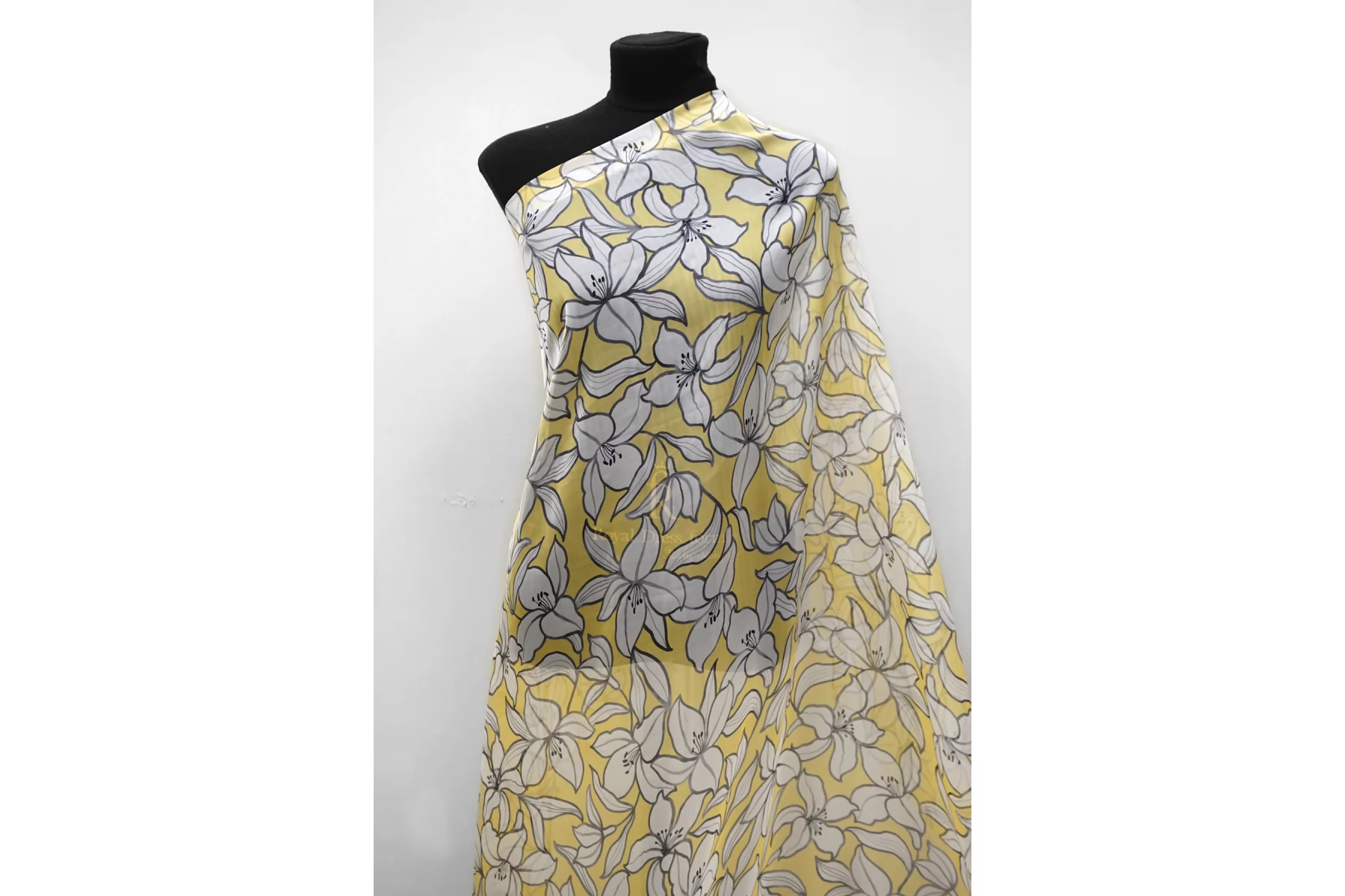 Шифон шёлковый MAX MARA Цветы на жёлтом MM H28/1 N50 14042550