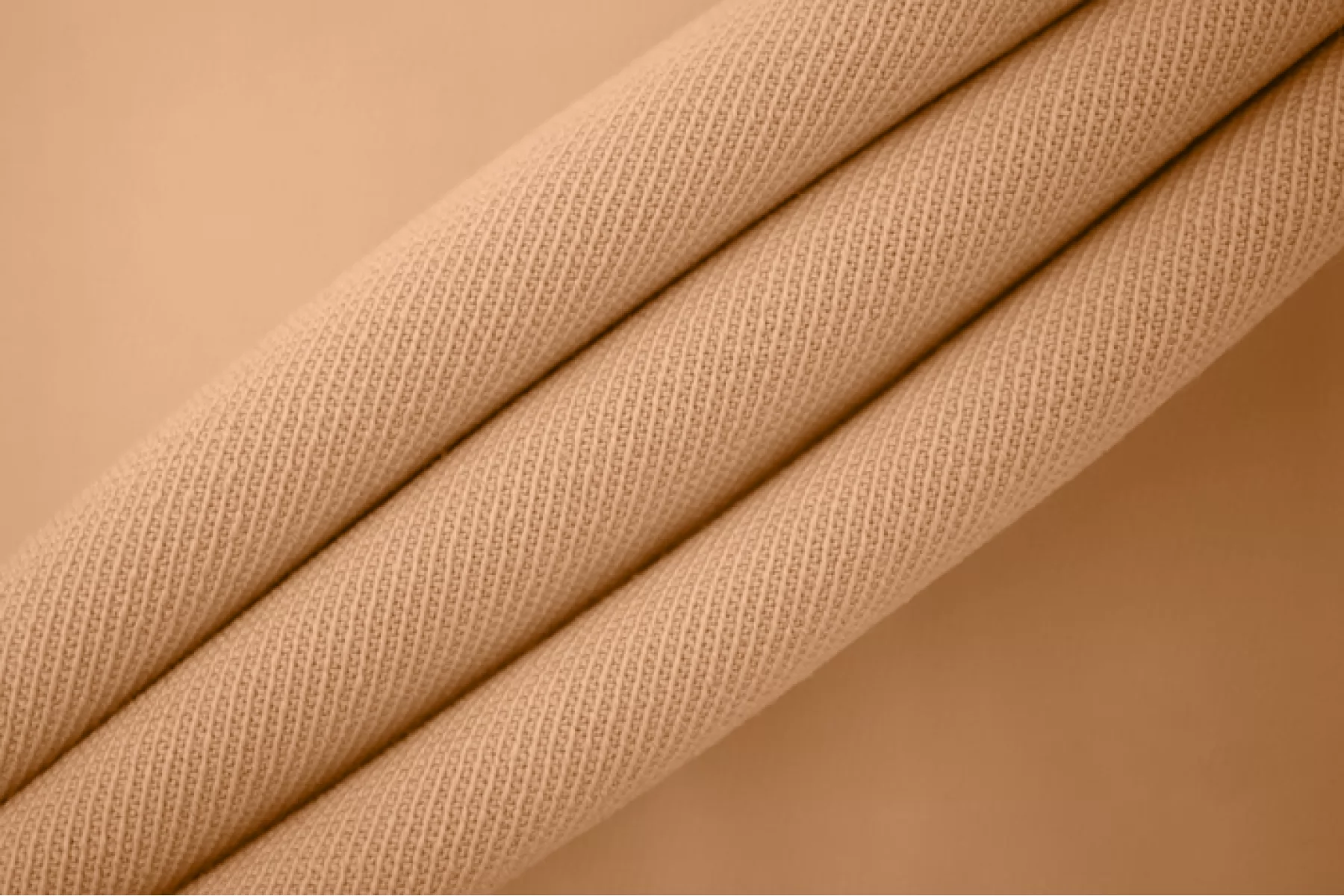 Костюмная шерсть стрейч диагонального плетения красивого бежевого, телесного оттенка. Материал тактильно шероховатый, ощущается фактура диагоналей, но пластичный и мягкий. Не колется. Очень хорошо тянется за счет содержания эластана. Плотненький. Не просвечивает. Немного держит форму и красив в складке. Слегка сминается, но восстанавливается практически полностью. Полиэстер в составе добавит изделию износостойкости. Вариант на костюмы, пиджаки, жакеты, юбки и не только. Уход деликатный.