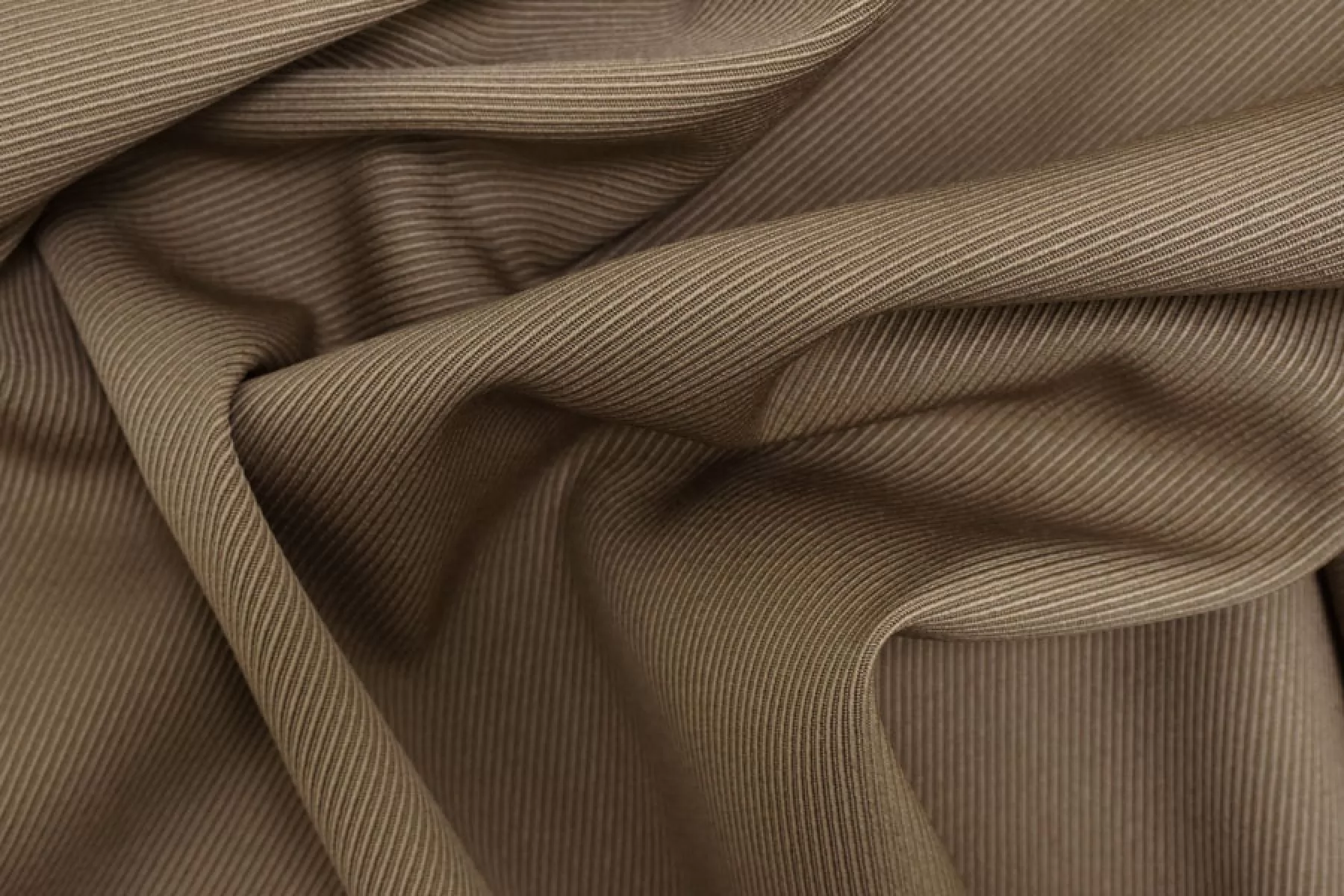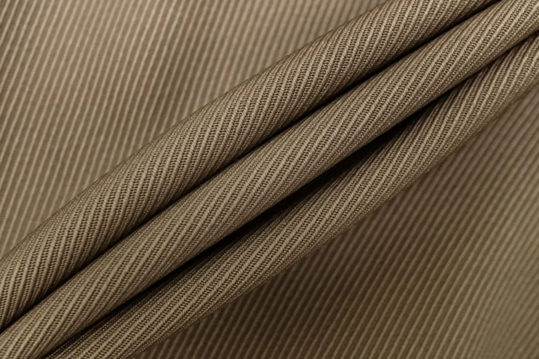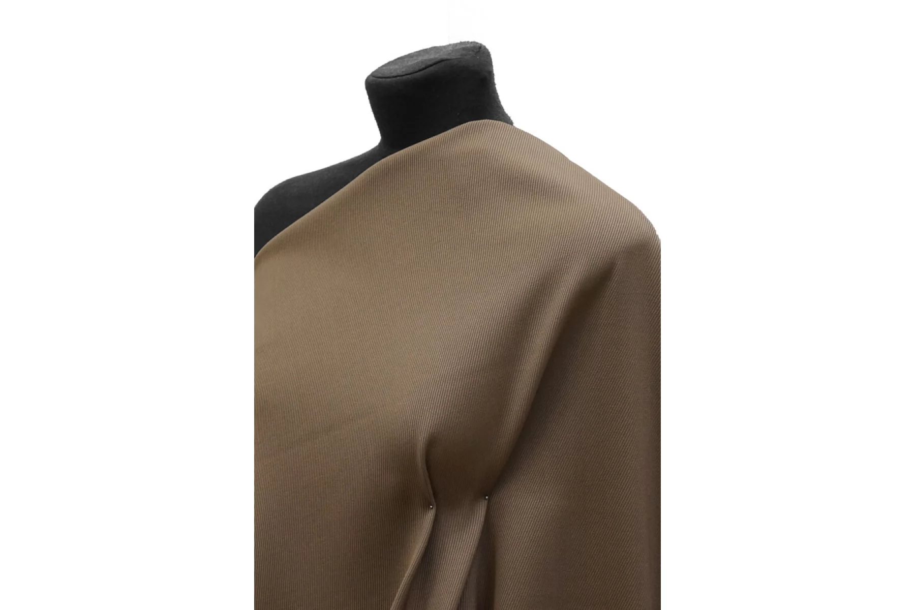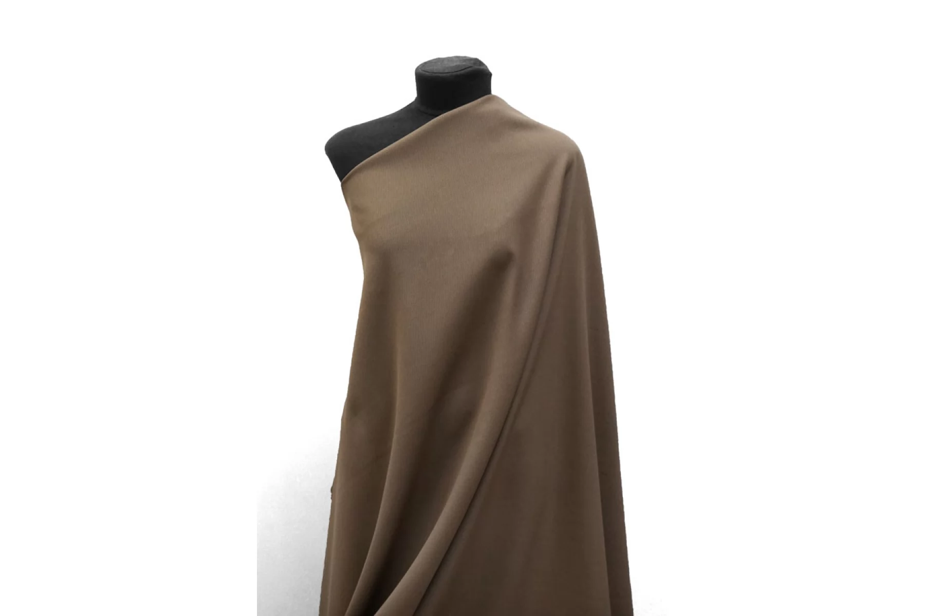 Итальянская костюмная шерсть от бренда Loro Piana, фактурное плетение с ярко выраженным рубчиком. Цвет кофейно-бежевый. Довольно плотная, ощущается фактура плетения. Немного суховата, покалывает. Не просвечивает. Не тянется. Отлично держит форму. Подойдет для пошива костюма, жакета. Деликатный уход.