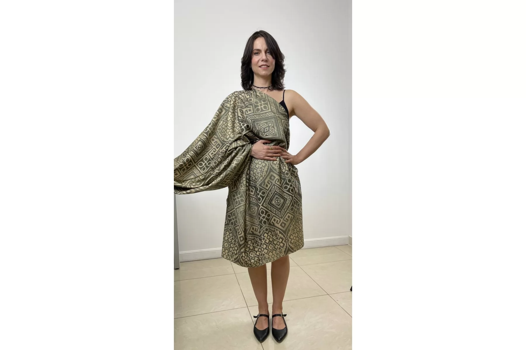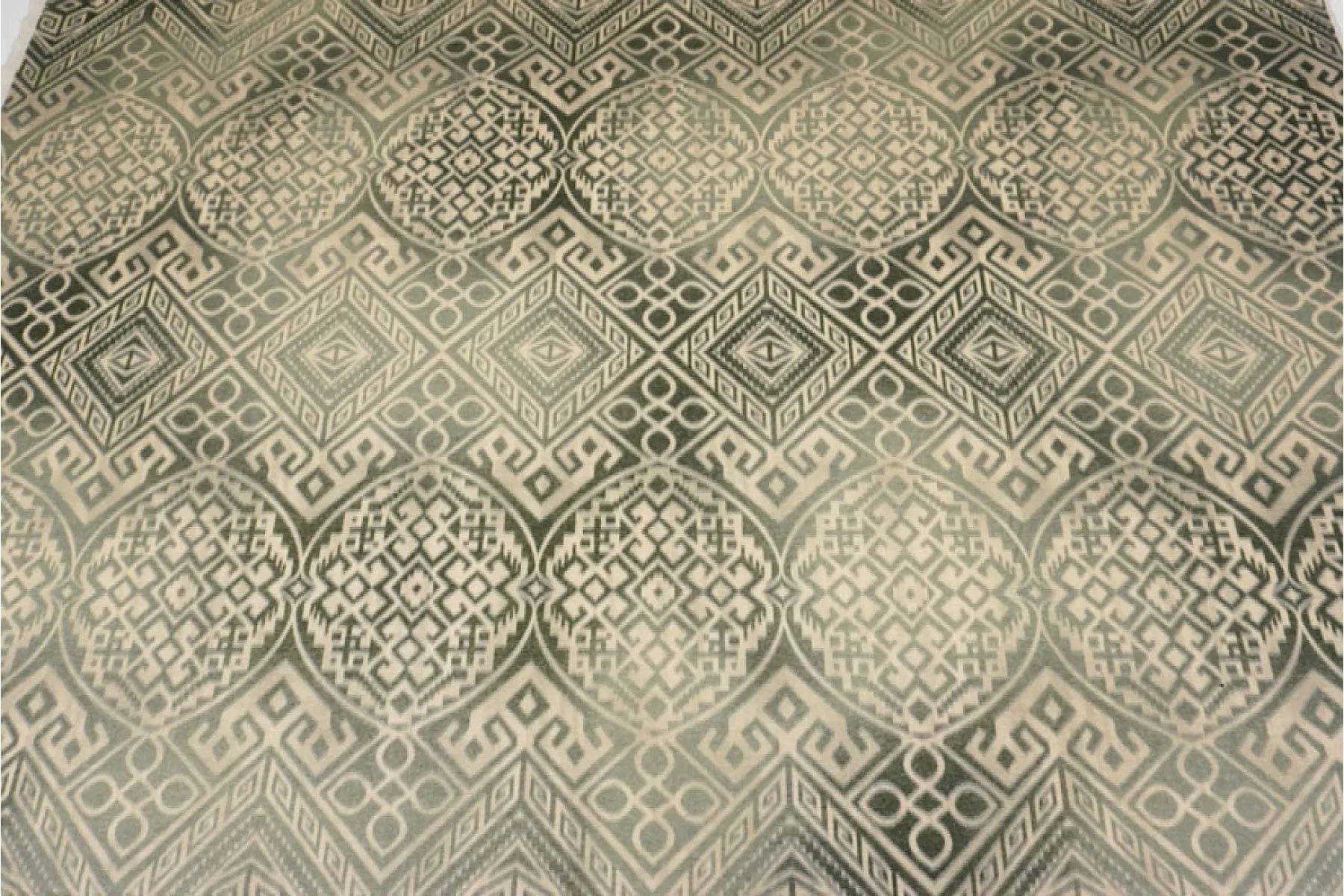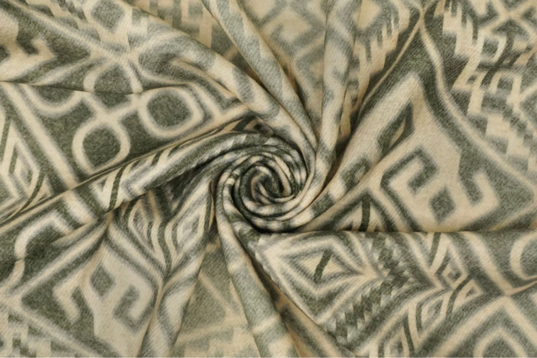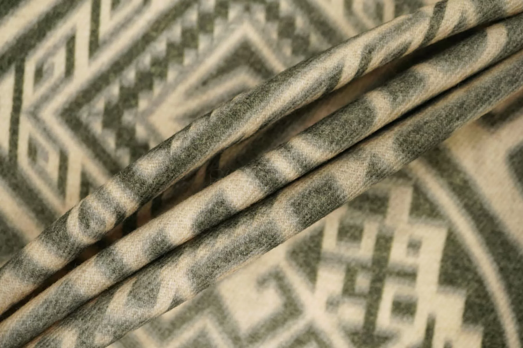 Прекрасная костюмно-плательная шерсть в от бренда ETRO бежево-зеленого оттенка с этническим орнаментом. Шерсть тактильно очень приятная, мягкая, с легким ворсом,не колется. Не мнется. Материал тонкий, но плотный. Совсем слегка тянется благодаря плетению, немного заметен силуэт, если смотреть прямо на просвет. Красива в складках. Отличный вариант для костюмов, теплых платьев, жакетов. Уход за материалом деликатный. При необходимости используйте подкладочный материал.