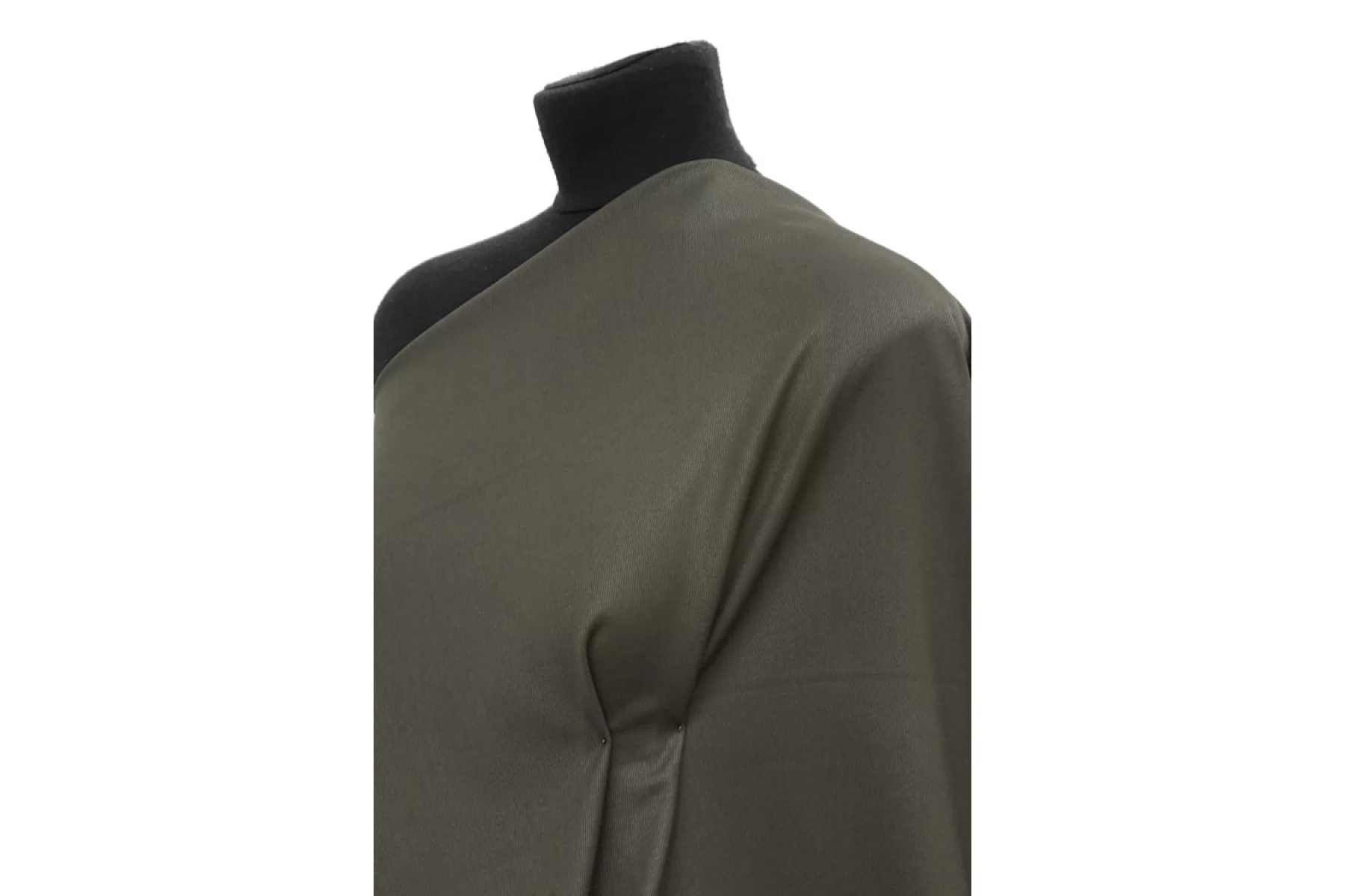 Шикарная костюмно-плательная шерсть диагонального плетения в оттенке хаки. Гладкая и приятная наощупь. Практически не колется. Немного тянется. Слегка сминается и частично восстанавливается. Форму держит. Не просвечивает. Тонкая и пластичная. Отличный вариант на теплые, при этом легкие костюмы, платья, юбки. Уход деликатный.