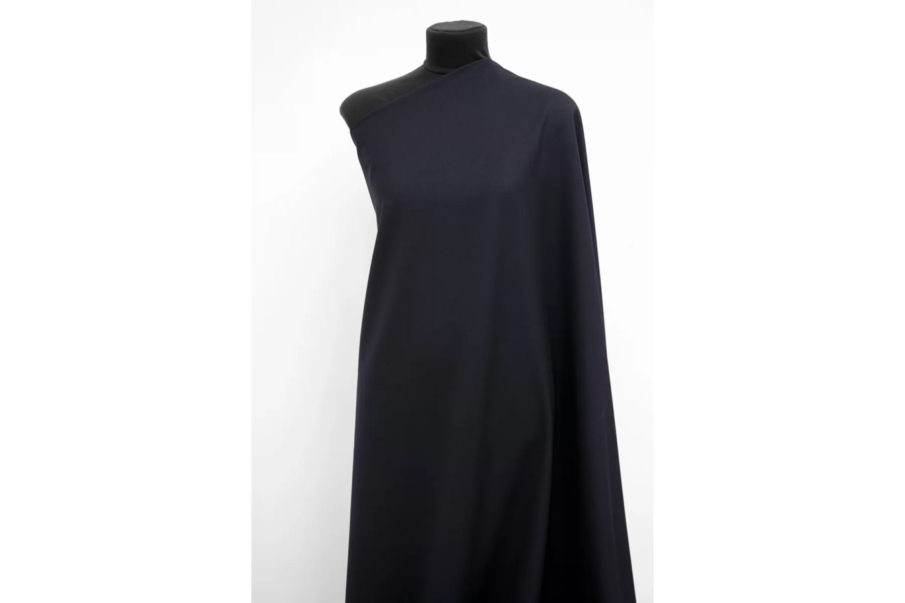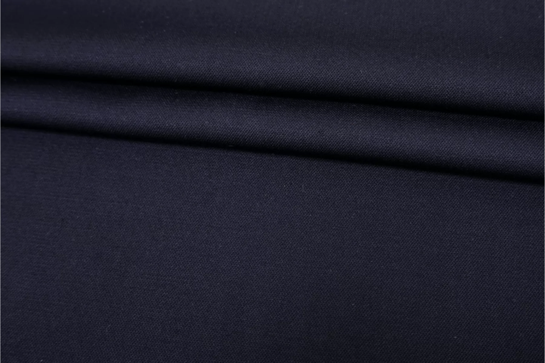 Плотная костюмная шерсть VERSACE крепового плетения темно-синего цвета. Тактильно шероховатая (чувствуется креповость плетения). Немного колется. Слегка ощущается плетение диагоналей. Обладает красивым матовым лоском. Пластичная и красиво драпируется. Не просвечивает. Не тянется. Немного держит форму. Не мнется. Отличный вариант на жакеты, пиджаки, брюки и костюмные варианты. Уход за шерстью деликатный.