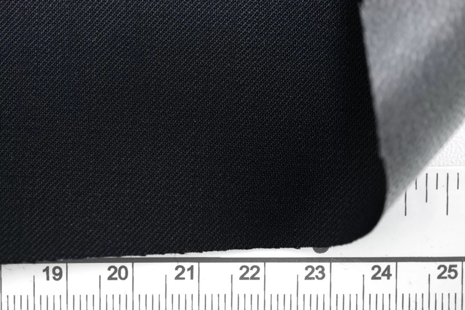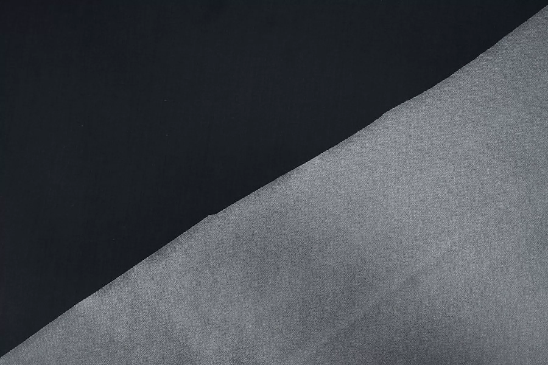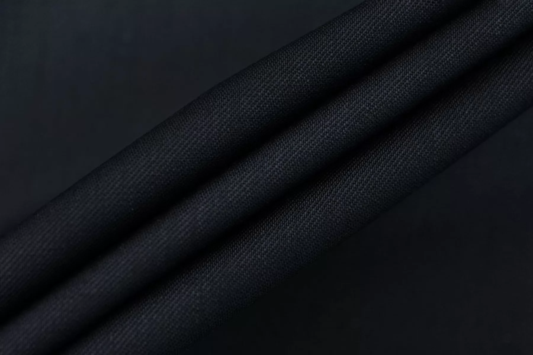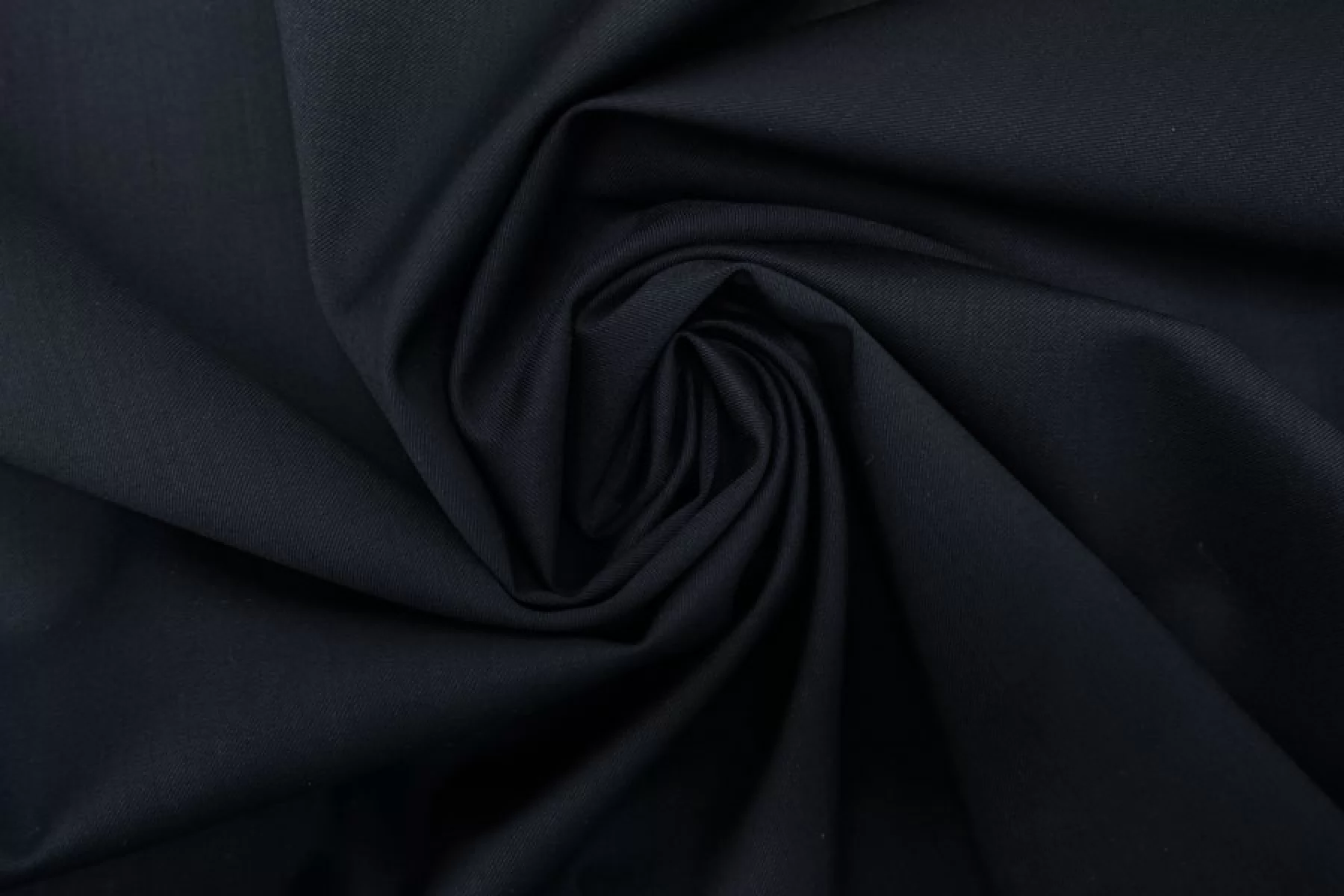Костюмная шерсть на мембране (полиамид), темно-синего оттенка, диагонального плетения. Вода легко стекает с поверхности, но через 10 минут слегка начинает впитываться в поверхность материала, но мембрана не пропускает воду насквозь. Влаго- и ветрозащитная. Тянется. Приятная, слегка суховатая. Хорошо держит форму и складки. Не просвечивает. Слегка сминается, но восстанавливается. Подойдет для пошива тренча, куртки, бомбера, плаща.