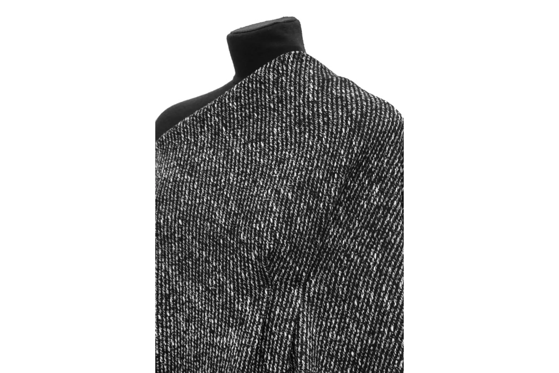 Шикарная костюмно-пальтовая фактурная шерсть с хлопком в диагональ черно-белого цвета. Тактильно суховатая и фактурная, немного покалывает, но приятная наощупь. Тянется немного. Не просвечивает. Толстенький примерно 1,5 мм. Не мнется. Обладает легким лоском. Пластичный. Хорошо драпируется и держит форму. Шьем костюмы, пальто или теплые рубашки. Уход деликатный.