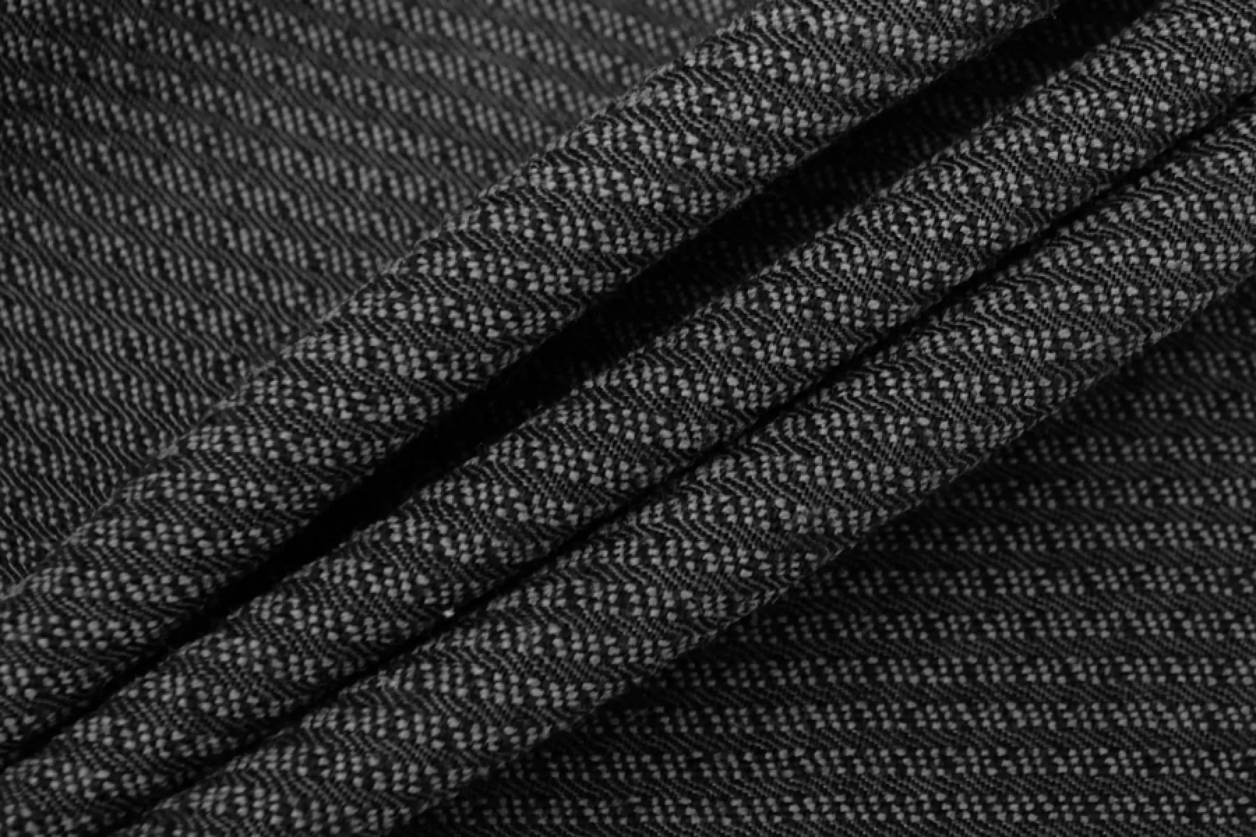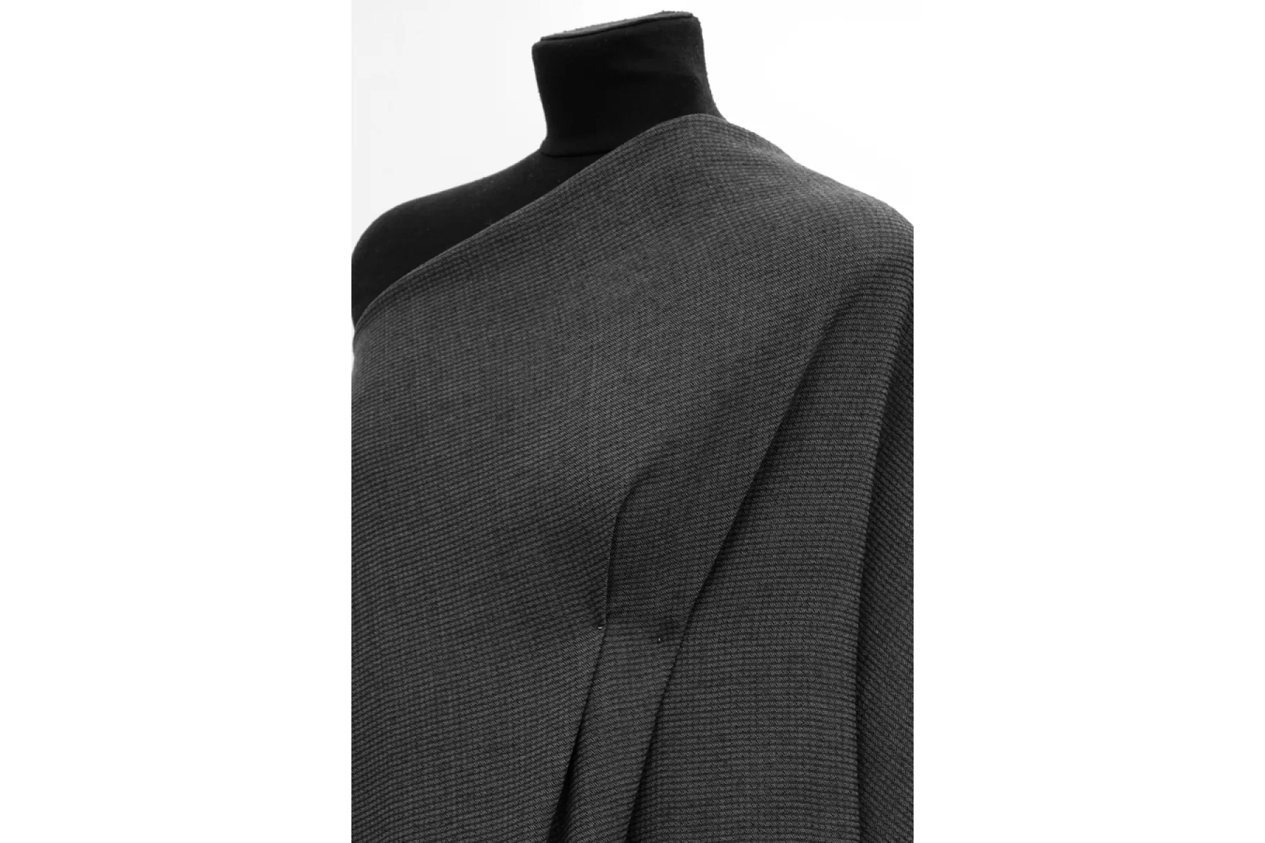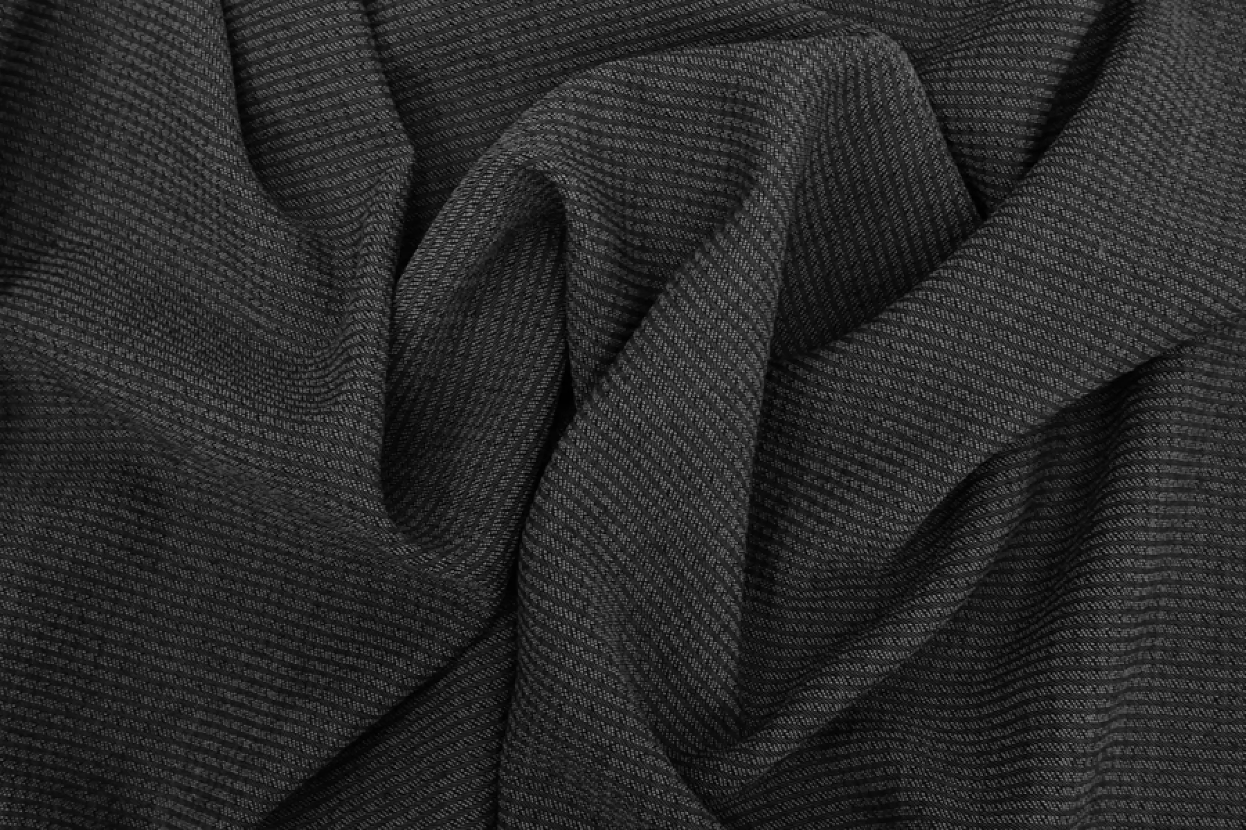 Очень приятная и мягкая фактурная шерсть с шелком плательной плотности в горизонатльную полоску темно-серого оттенка. Чуть-чуть суховатая наощупь, ощущается фактурность. Немного тянется. Слегка просвечивает, если смотреть прямо на просвет.Форму держит, но при этом чоень пластичная. Классный вариант на теплые платья, юбки, костюмы, мягкие жакеты.