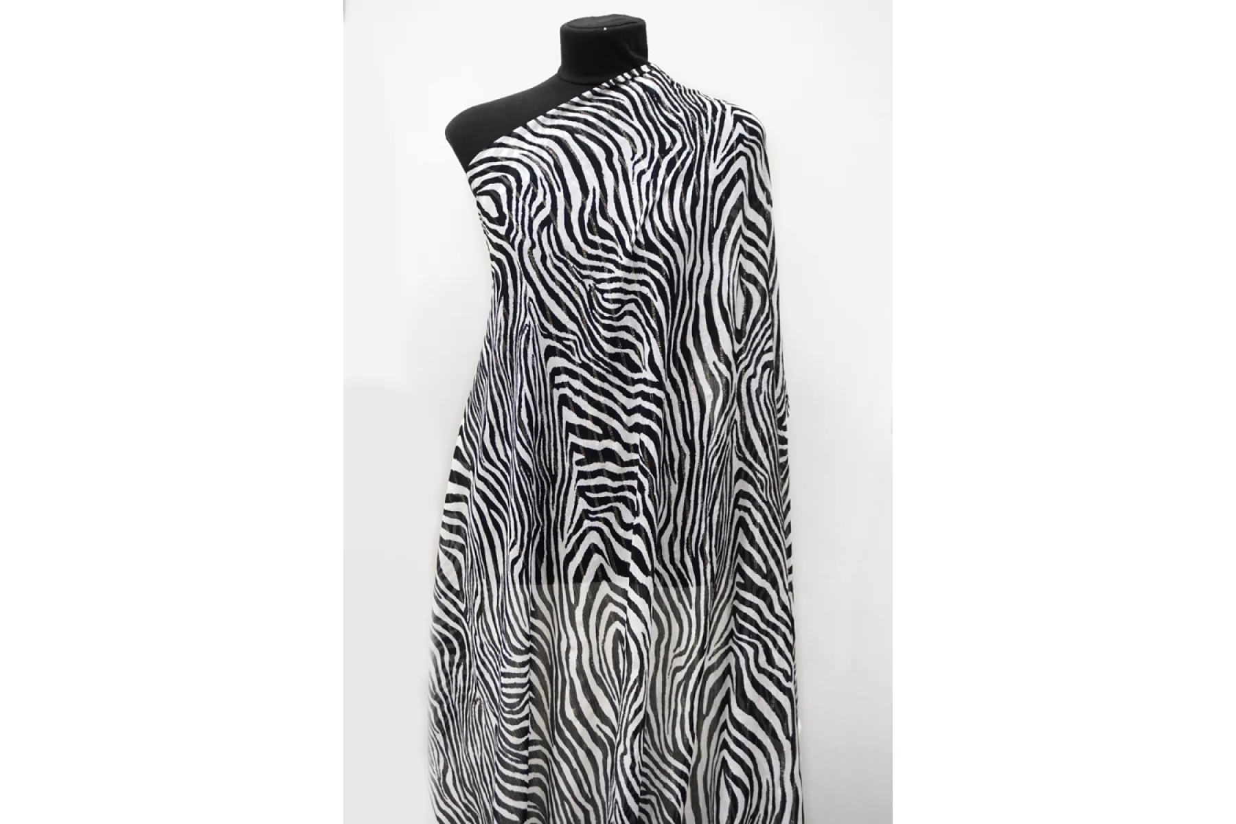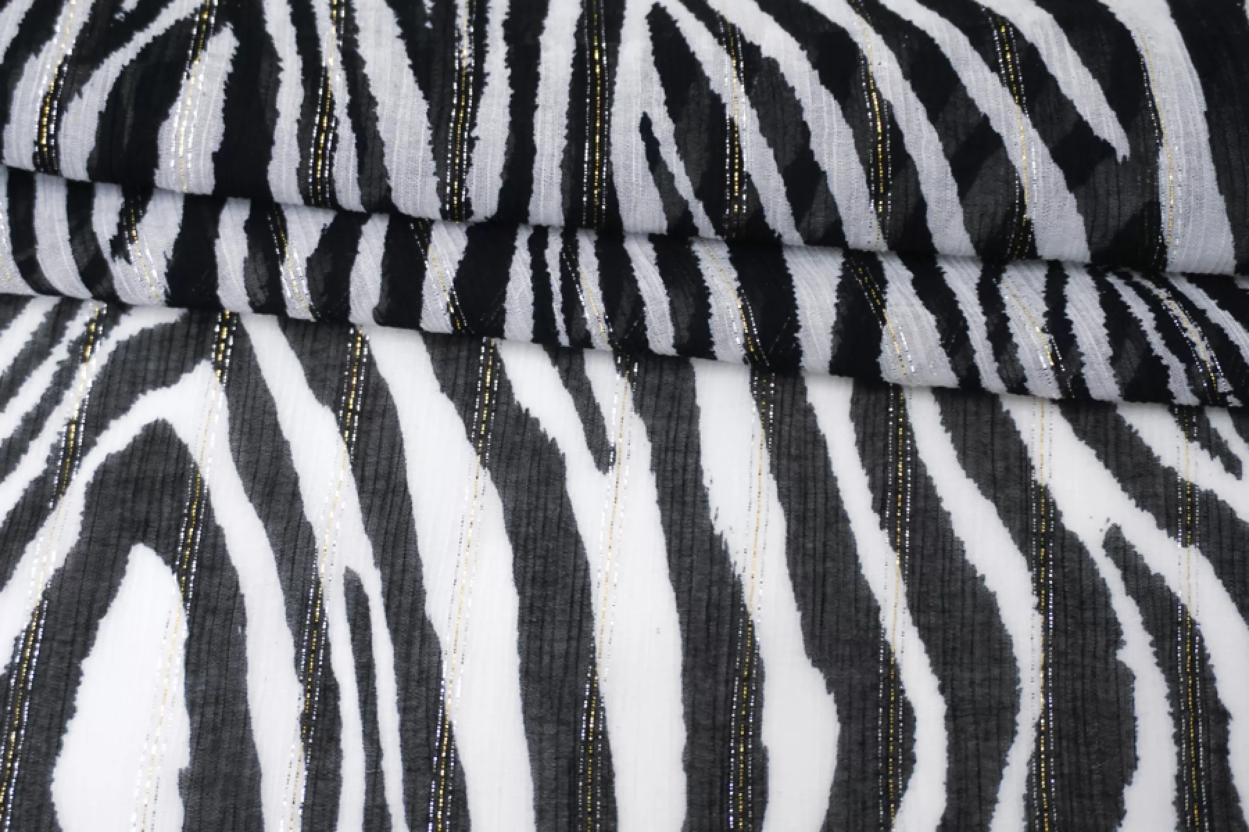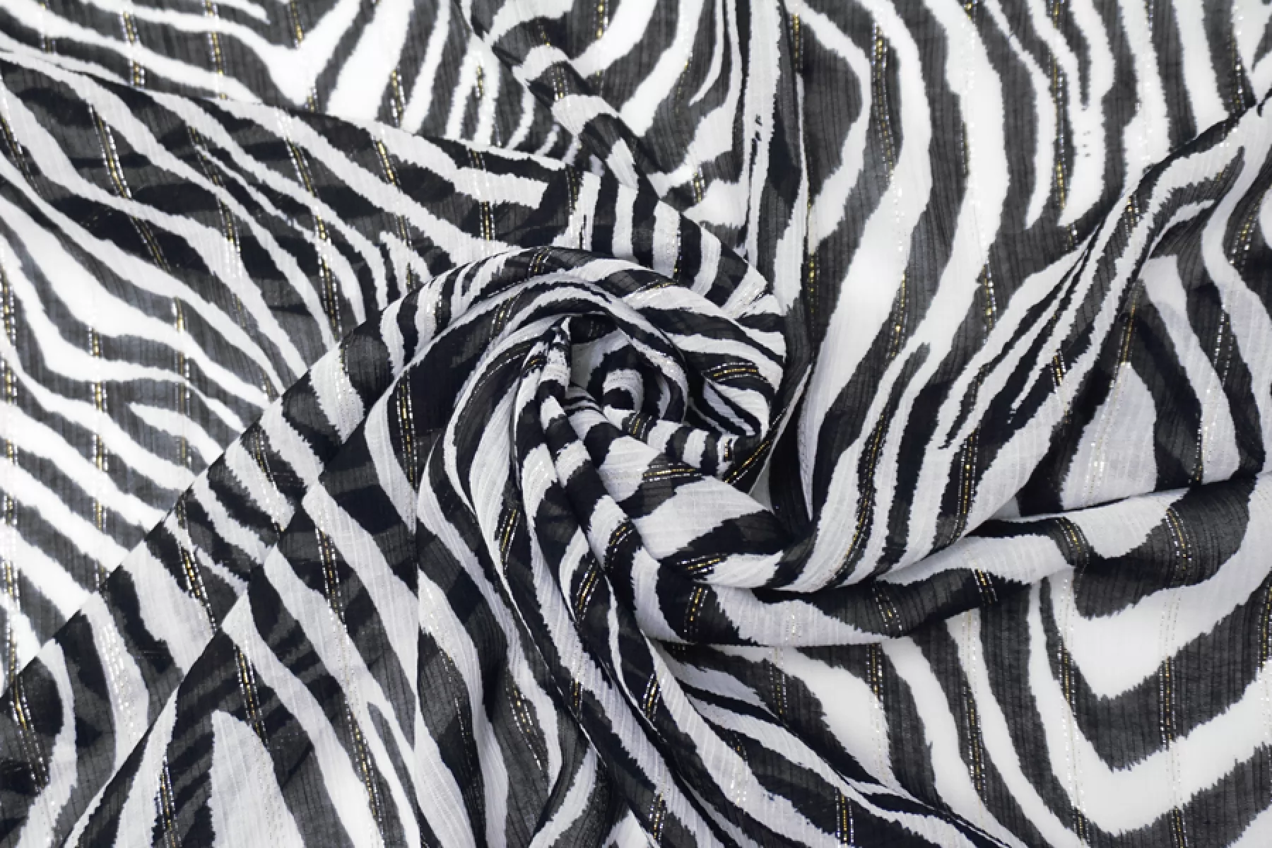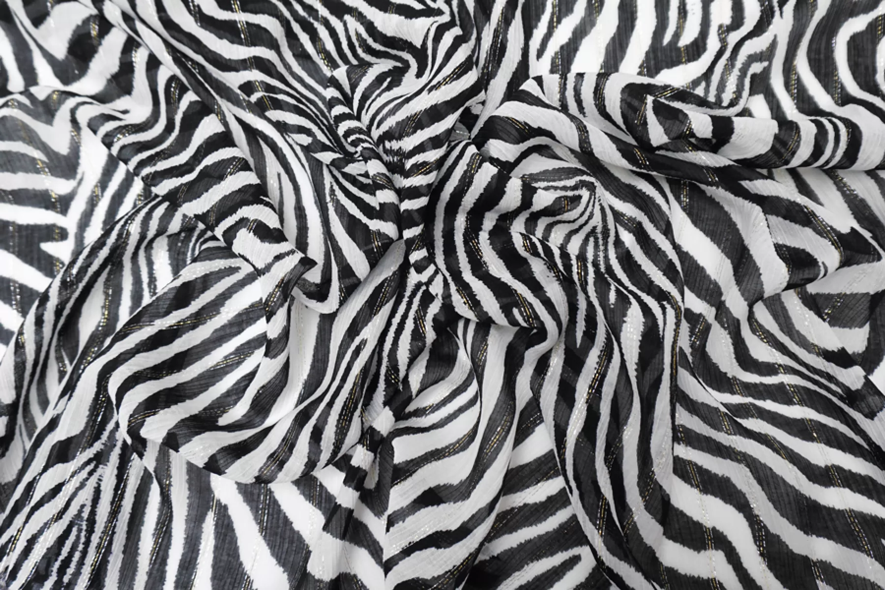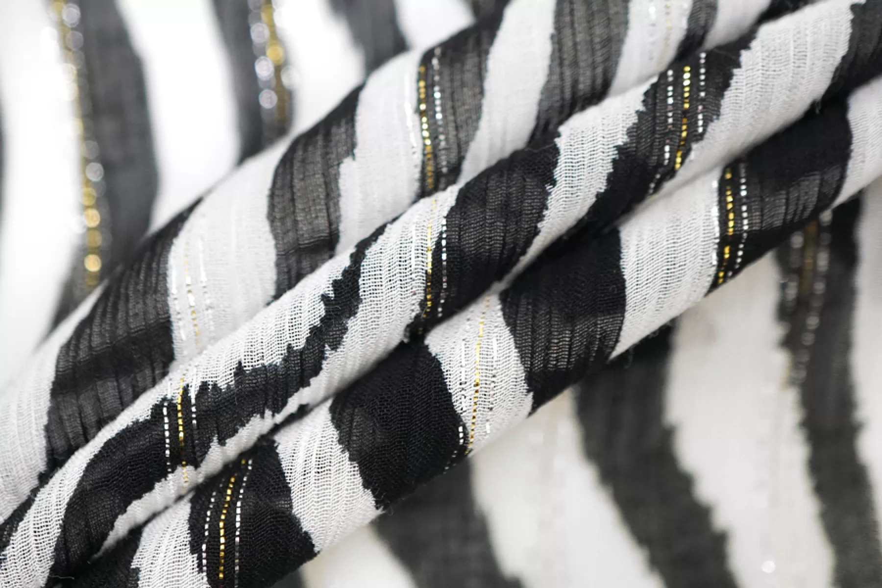 Шифон-креш шелковый с вискозой и люрексом Черно-белый KZ H22/3 I20 18022571