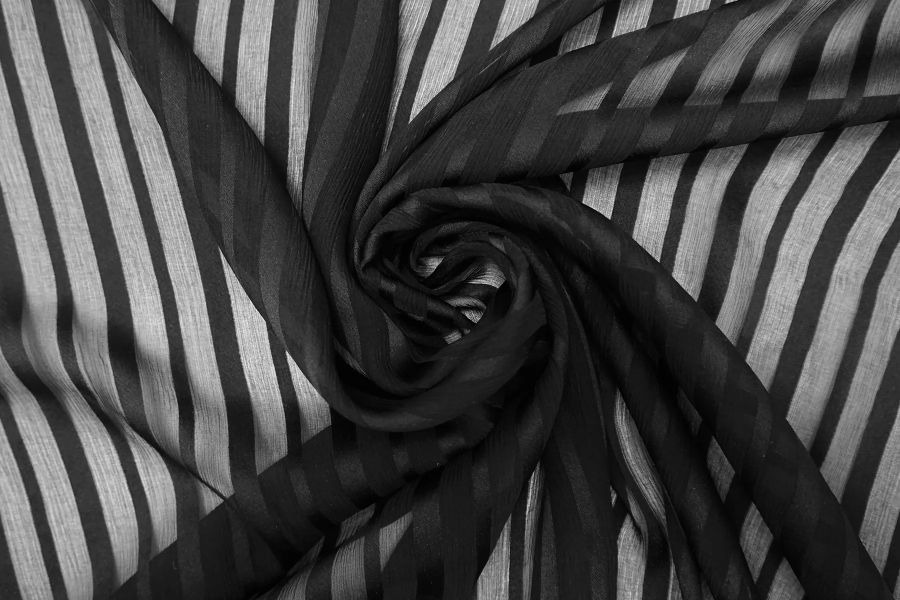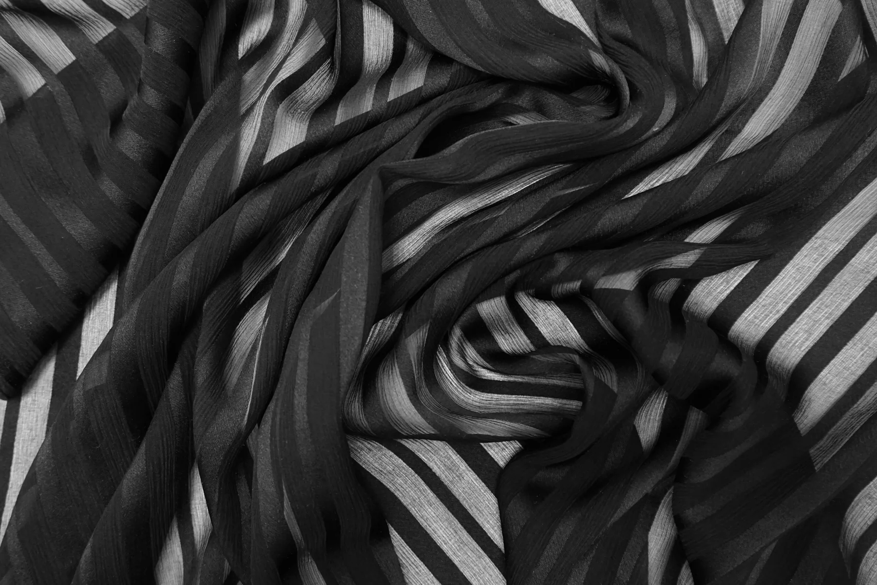 Шифон-креш шёлковый Чёрный в полоску BL H28/1 N50 10022622