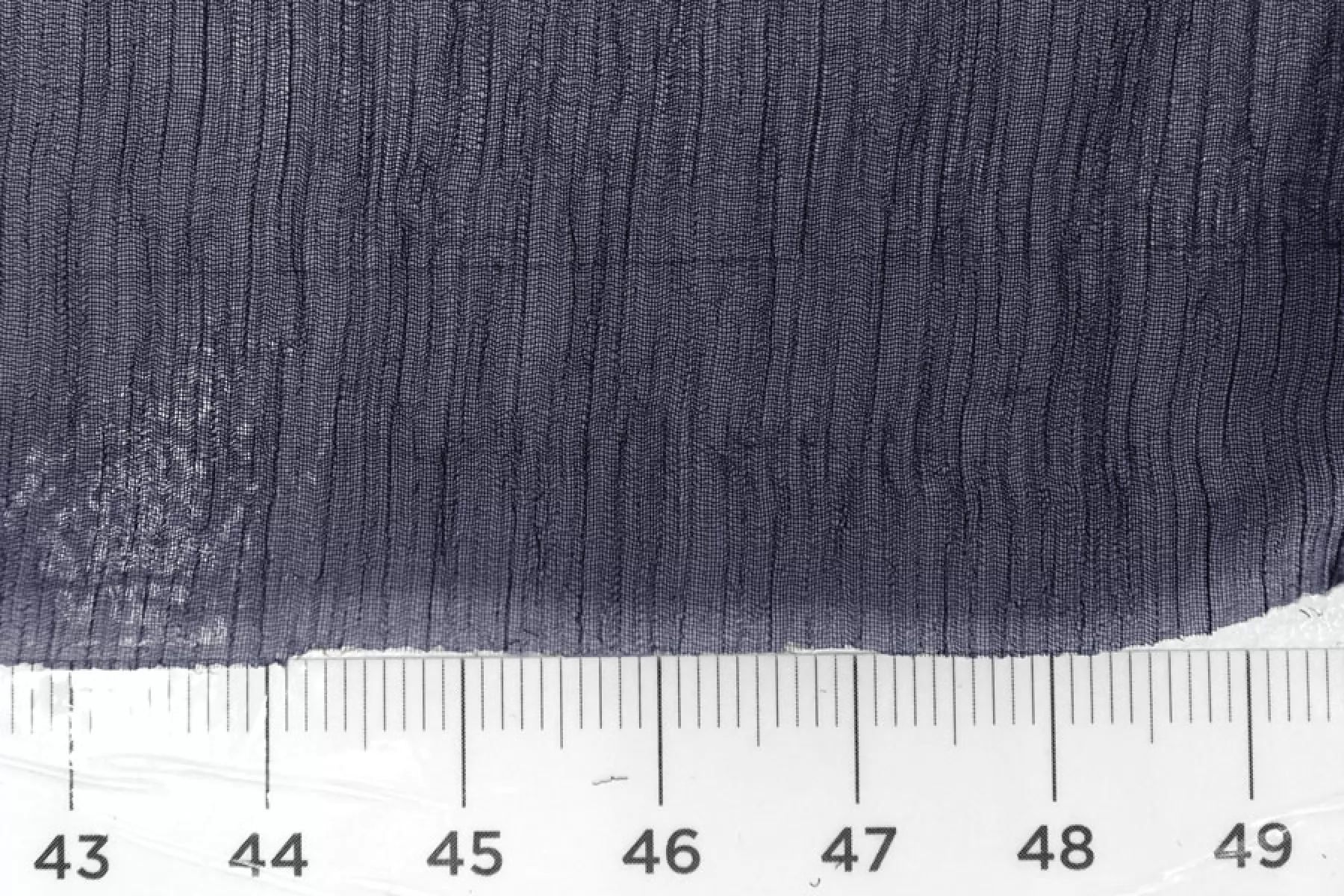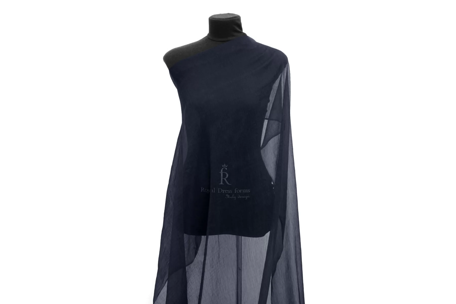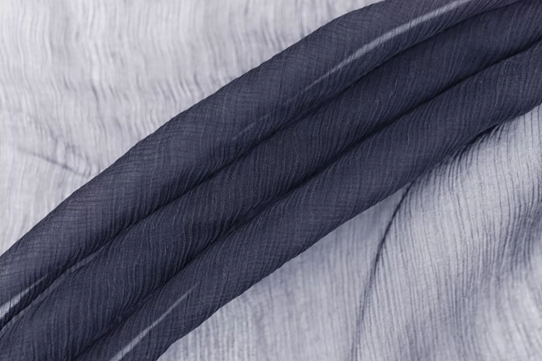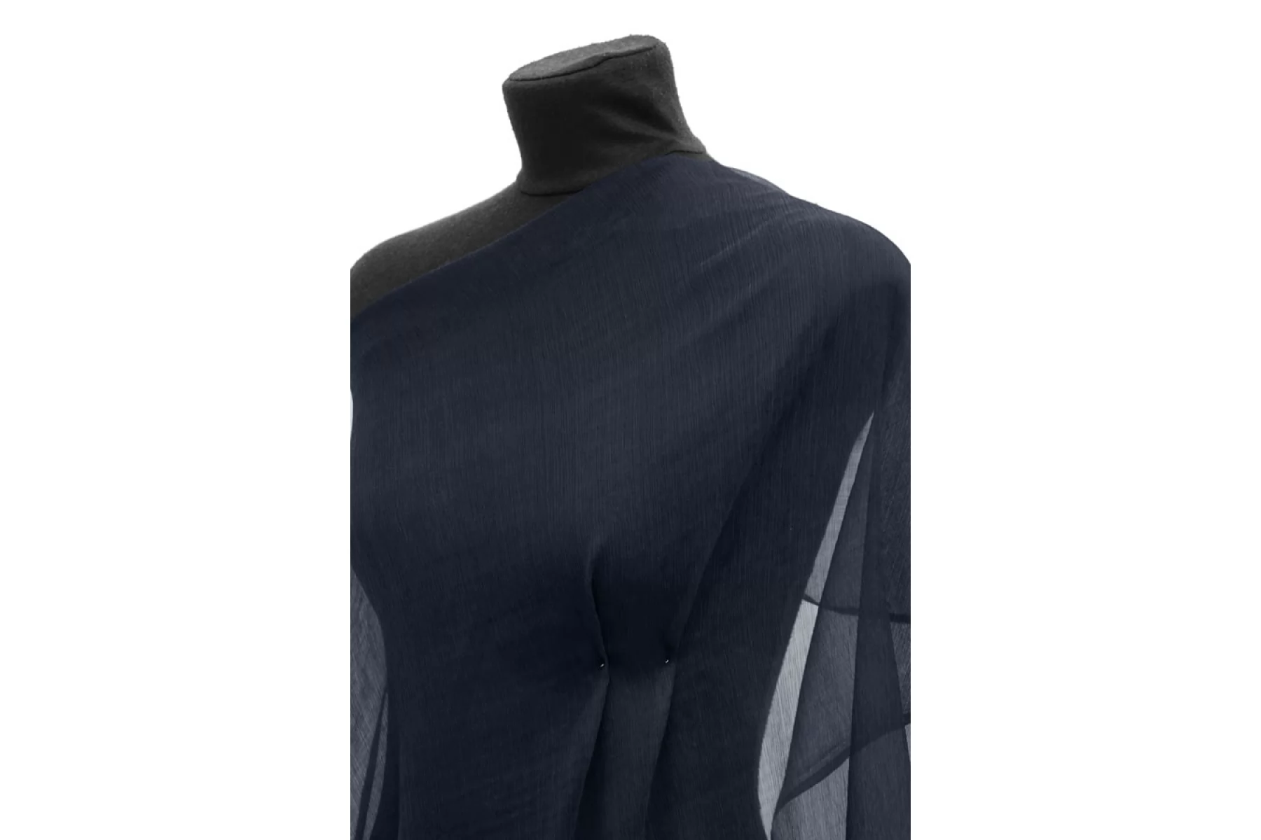 Шелковый крешированный шифон в синем оттенке. Струящийся, летящий, воздушный, шероховатый, отлично тянется за счет жатой фактуры. Прозрачный. Подойдет на платье, блузку, юбку. Уход, как и за любым шелком, деликатный.