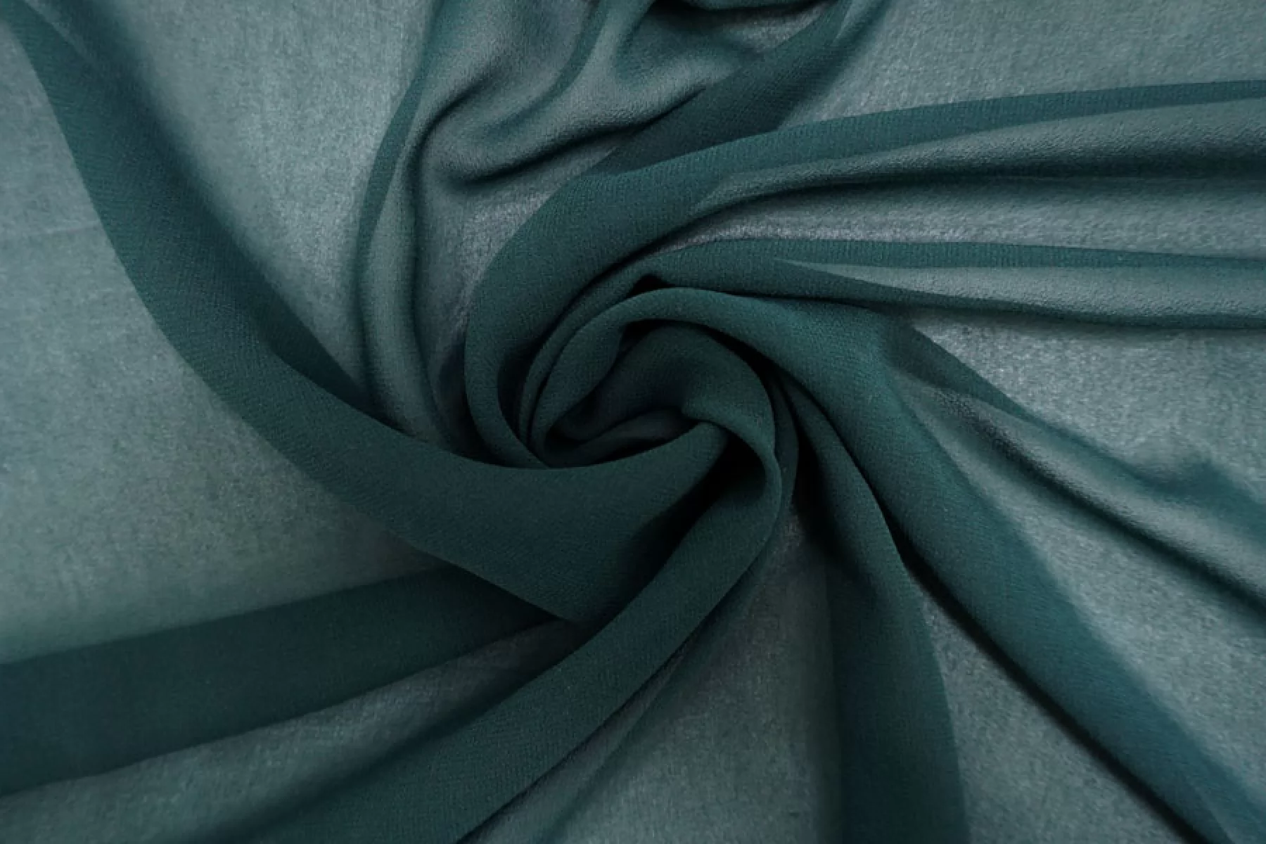 Шёлковый шифон от бренда Max Mara, в красивом, тёмном изумрудном оттенке (синевато-зелёный). Струящийся, летящий, воздушный. На ощупь ткань мягкая и приятная. Уход, как и за любым шёлком, деликатный. Эластана нет, то плетение хорошо тянется-пружинит. Полупрозрачный. Подойдет на платье, блузку, юбку.
