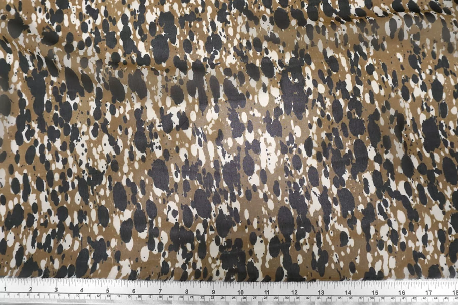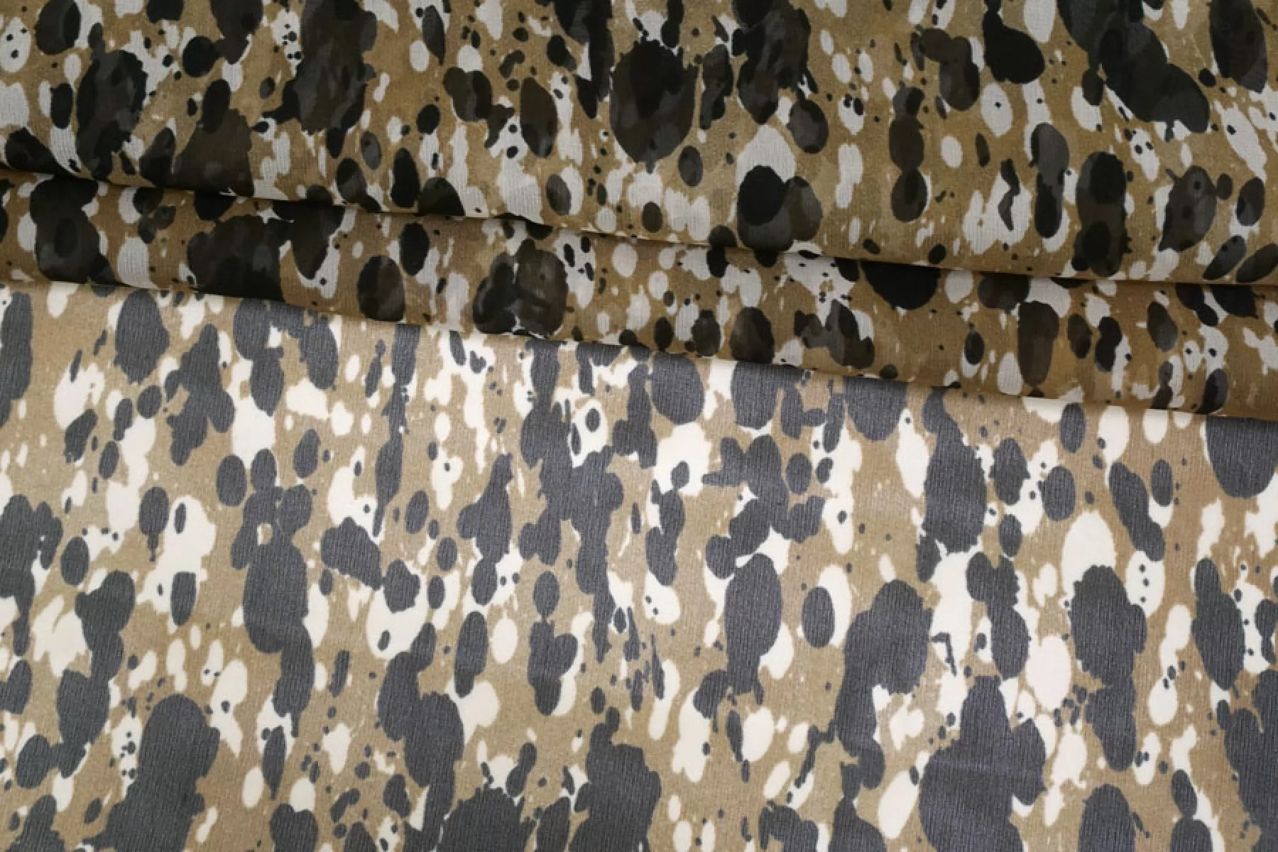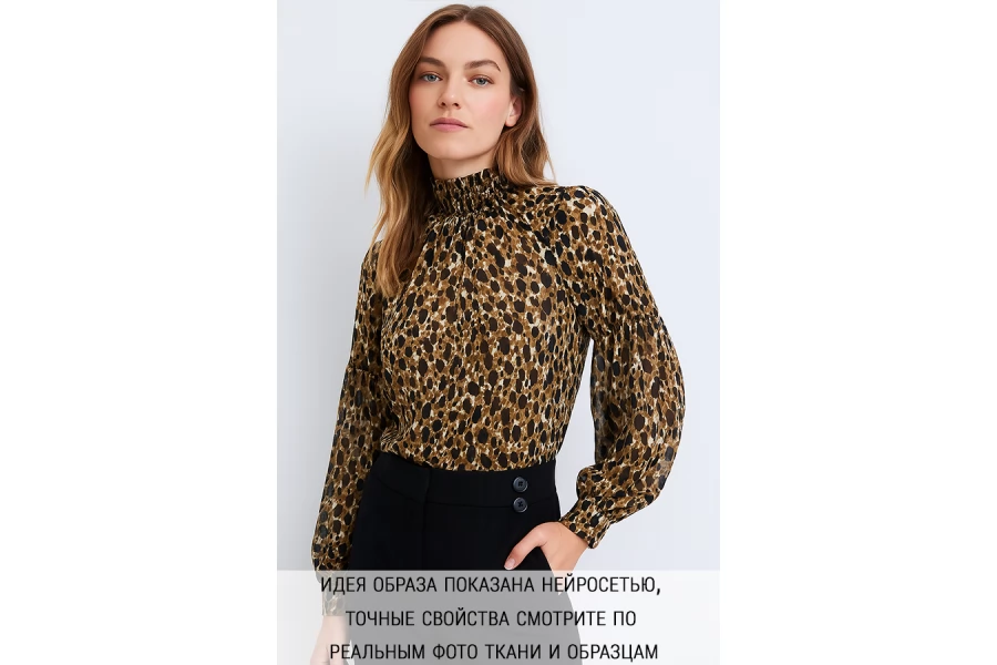 Прекрасный шёлковый шифон от бренда Max Mara, пятнистый чёрно-белый принт на коричневато-бежевом фоне. Струящийся, летящий, воздушный, очень приятный и нежный к телу. Уход, как и за любым шелком, деликатный. Прозрачный. Сминается несильно. Подойдет на платье, блузку, юбку.