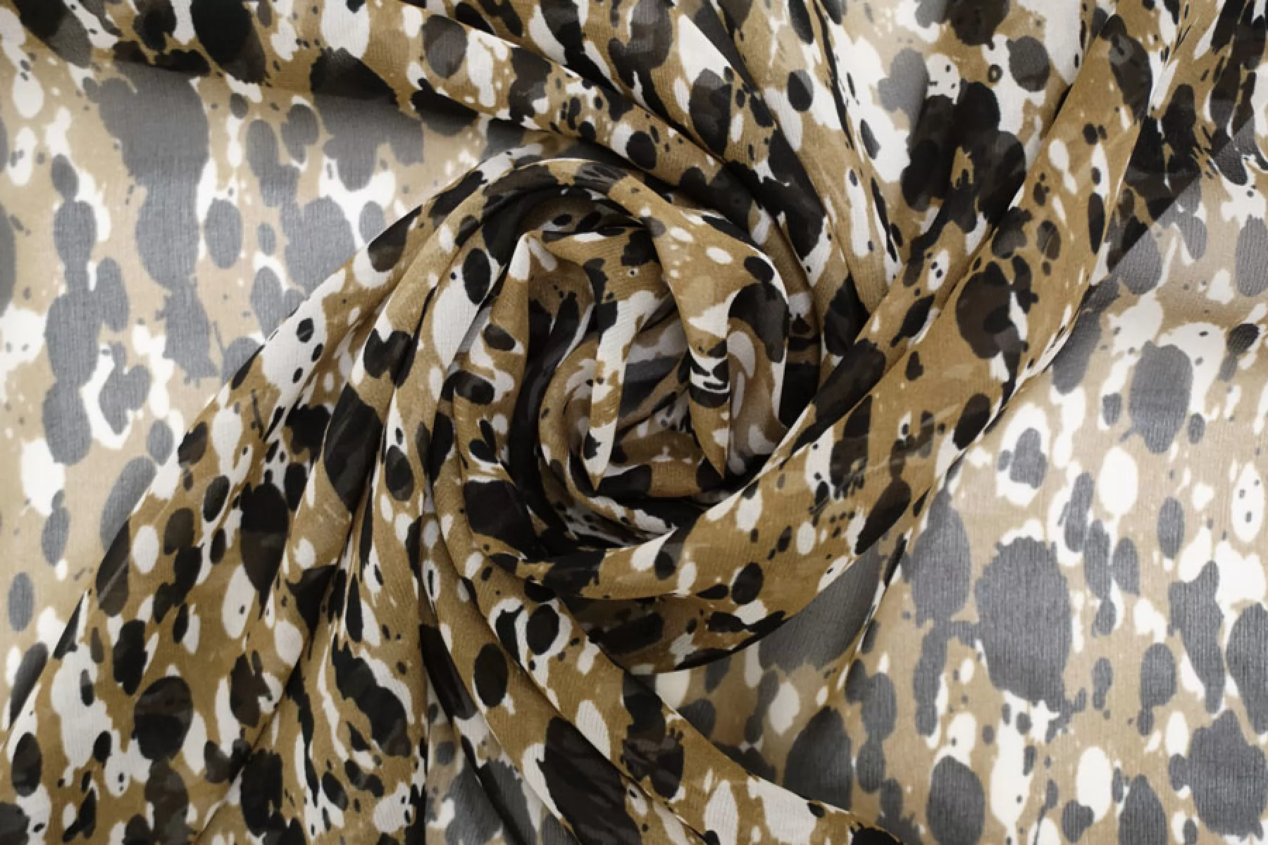 Шифон шёлковый MAX MARA Чёрно-белые пятна на бежевом MM H28/1 N50 14042530
