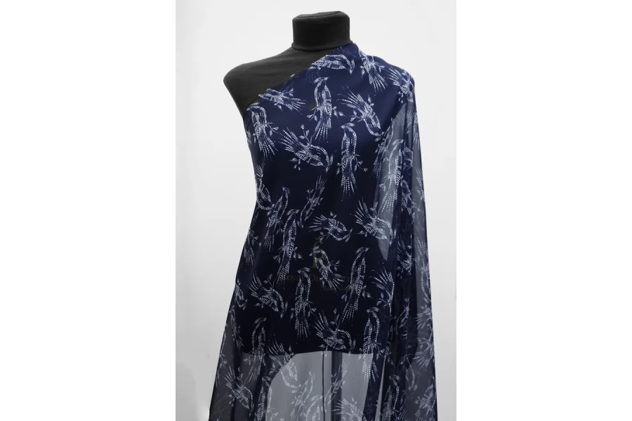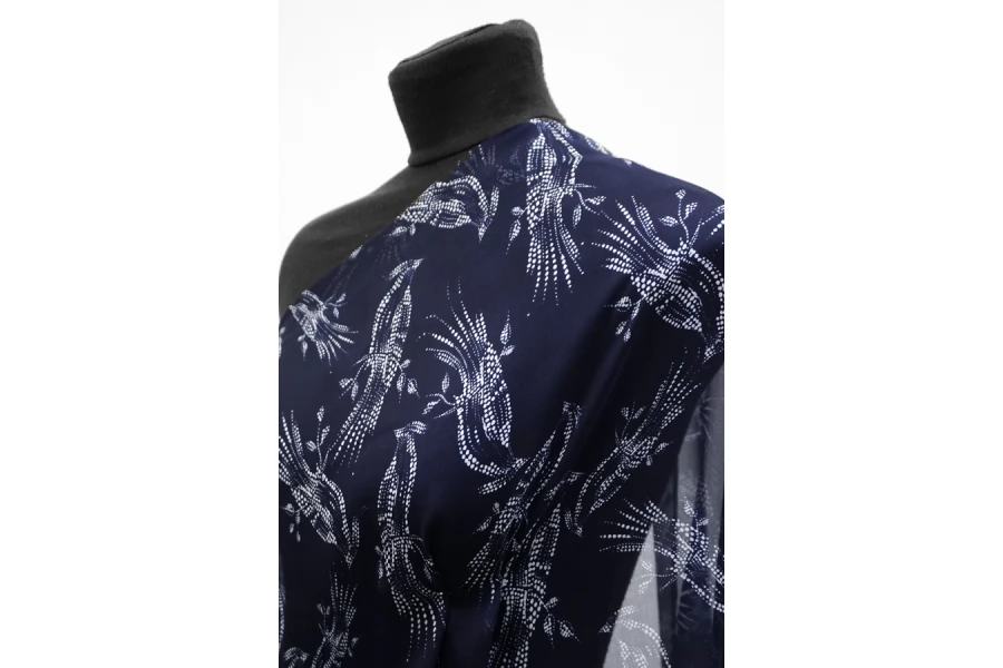 Шифон шёлковый MAX MARA Птицы на тёмно-синем MM H28/1 N50 1102502