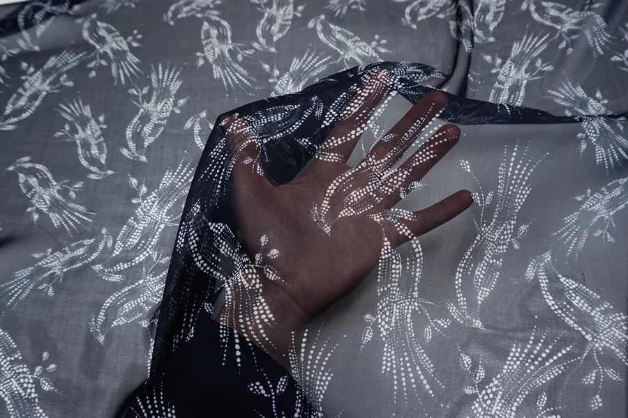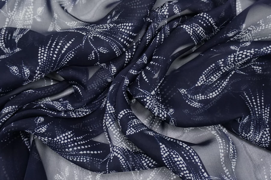 Прекрасный шёлковый шифон от бренда Max Mara, стилизованный принт в виде белых силуэтов птиц на тёмном синем фоне. Струящийся, летящий, воздушный, очень приятный и нежный к телу. Уход, как и за любым шелком, деликатный. Полупрозрачный Сминается несильно. Подойдет на платье, блузку, юбку.