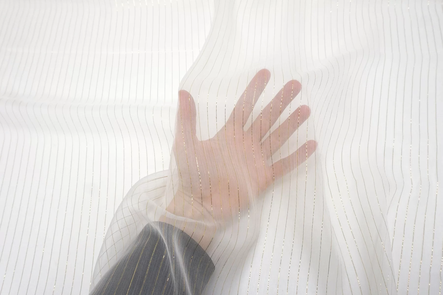 Шифон шёлковый MAX MARA Белый с золотистым люрексом MM H28/1 N50 14042552