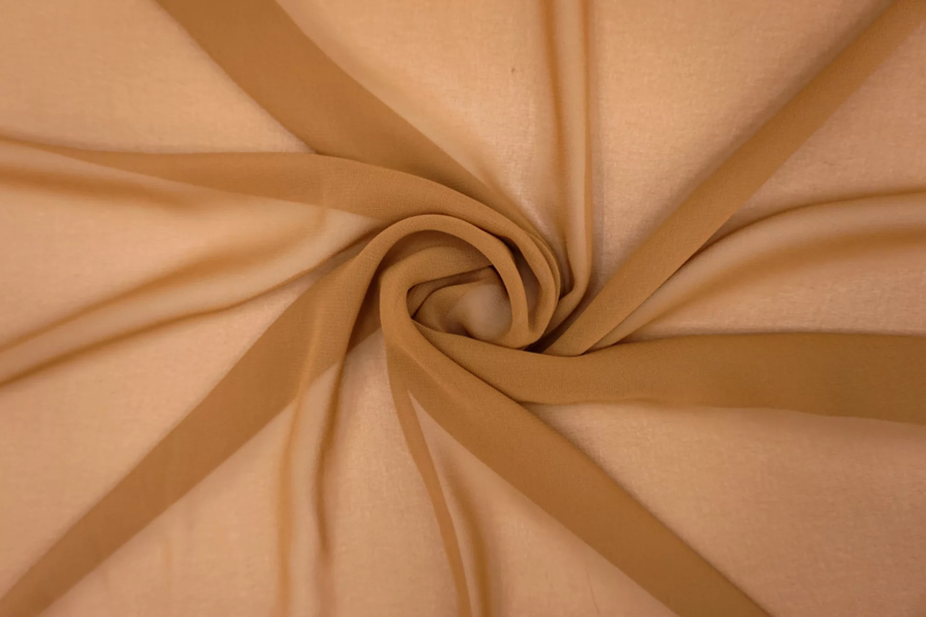 Тонкий шифон светло-коричневого оттенка, не тянется, с легкой шероховатой поверхностью, просвечивает. Прекрасно подойдет для платья, блузки или юбки, накидки, красивого многослойного изделия.