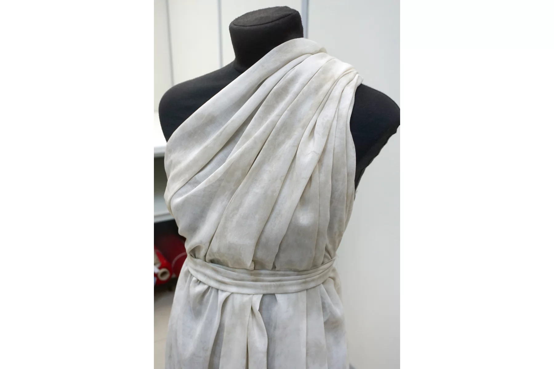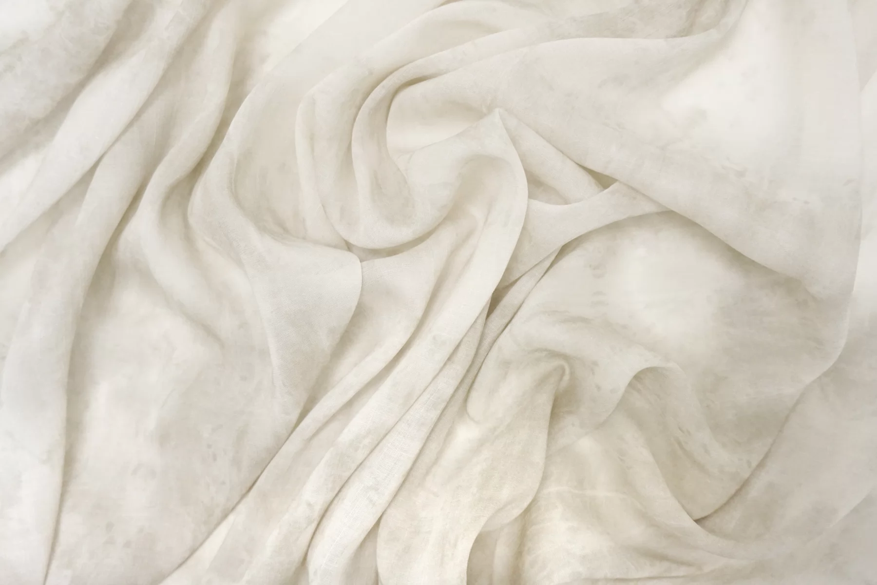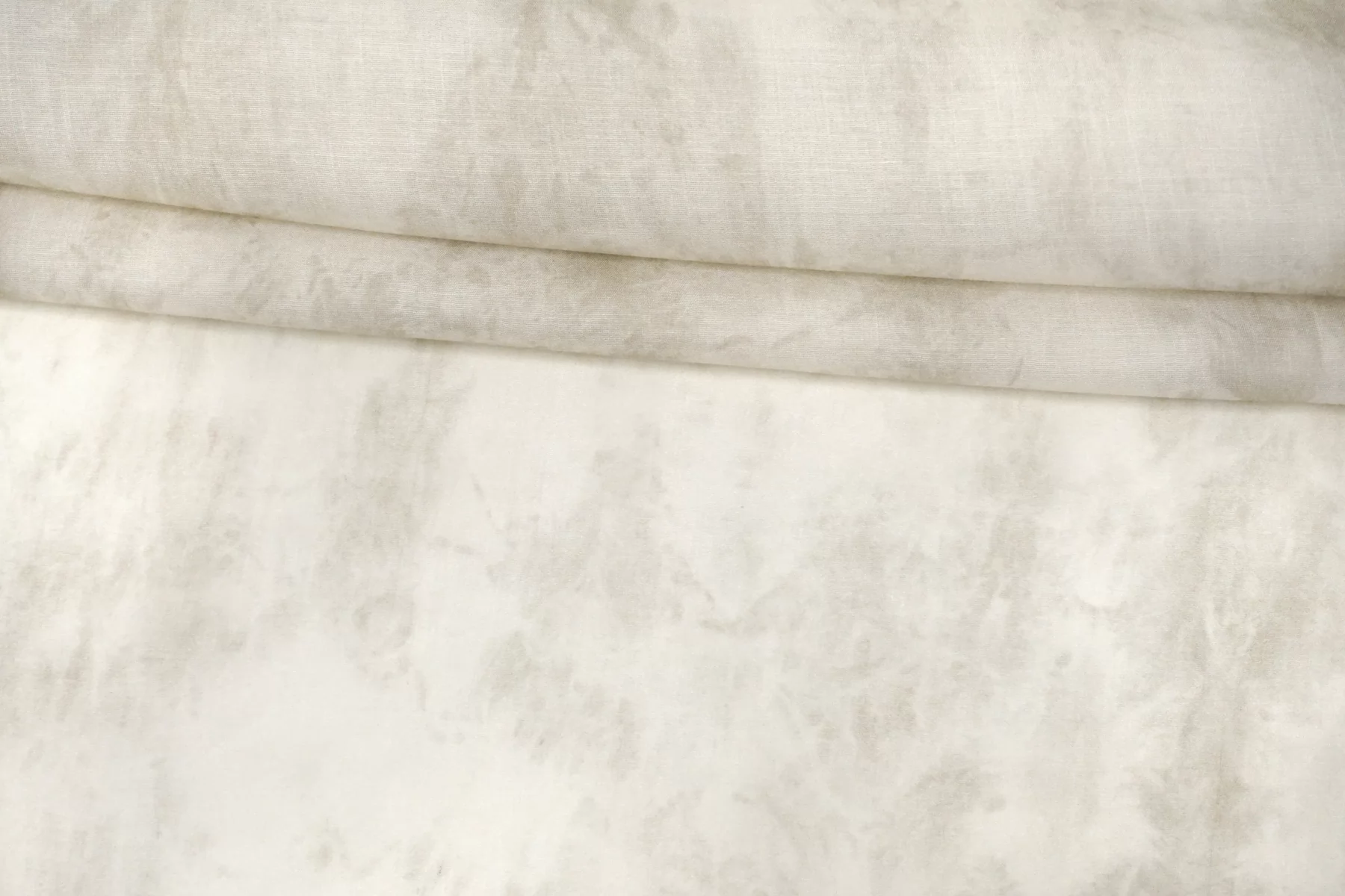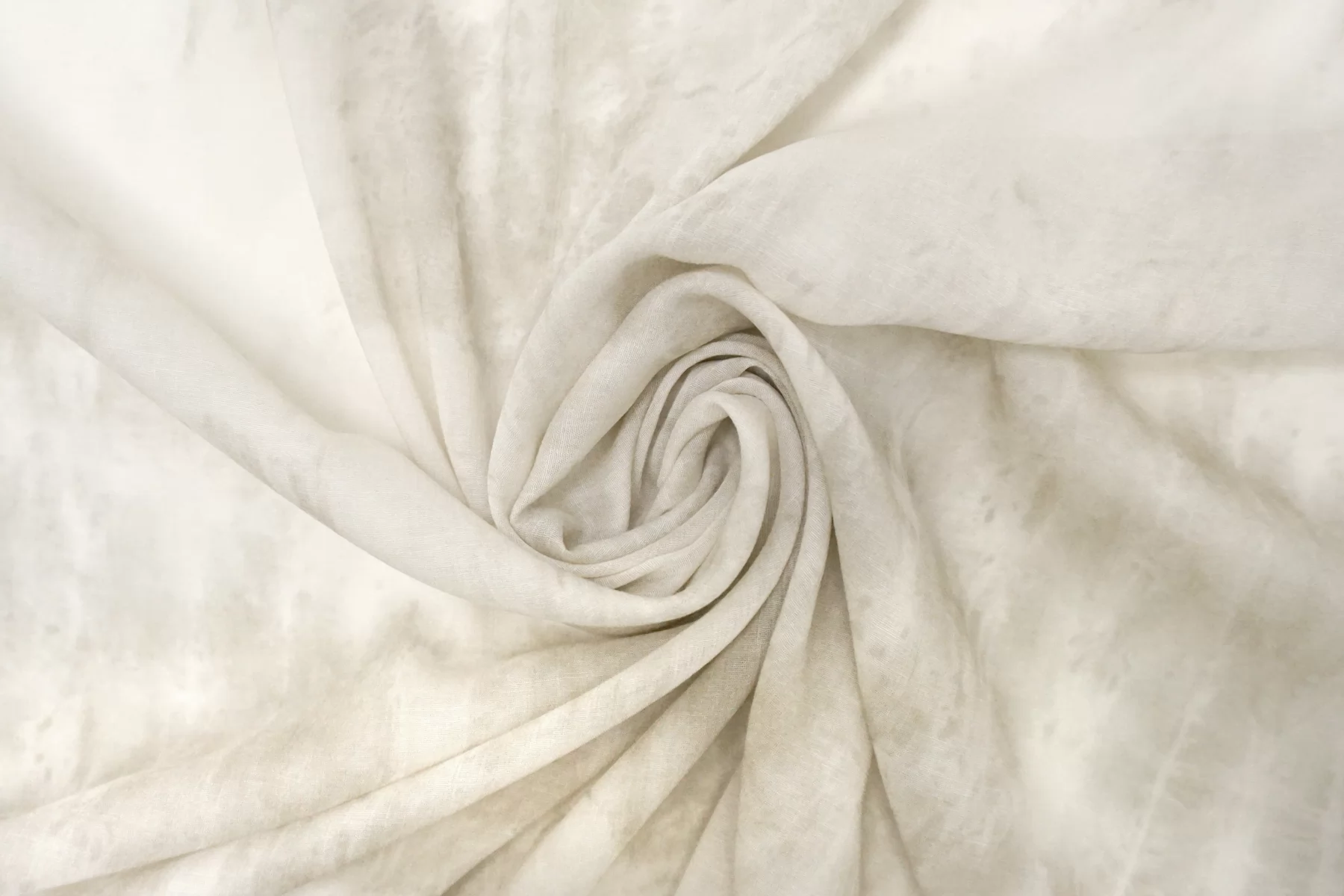 Итальянский вискозный шифон с с принтом в стиле тай-дай: сочетание молочно-белого и светло-бежевого цвета. Поверхность не гладкая, фактурой немного напоминает марлёвку. Просвечивает, пластичный, легкий, тактильно сухой. Подойдет для пошива блузки, туники, платья, юбки (на подкладе или многослойной).