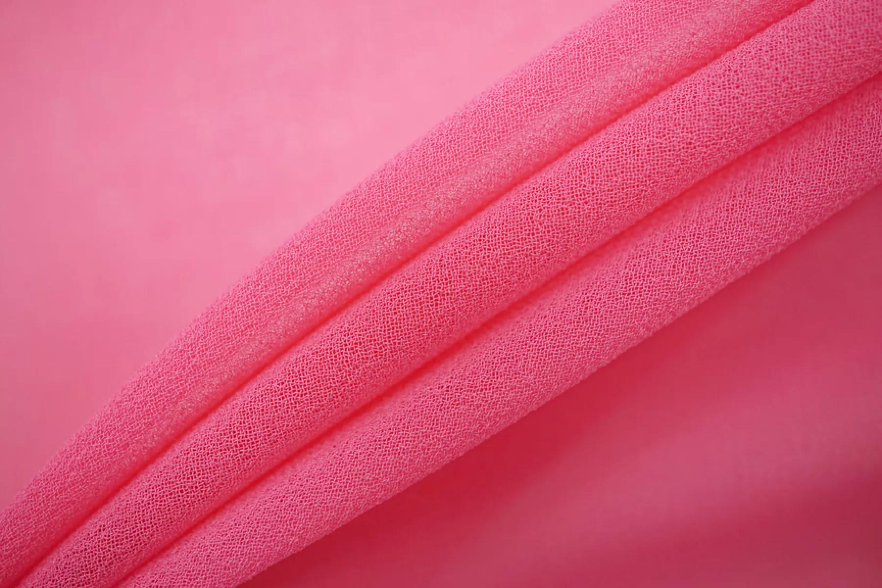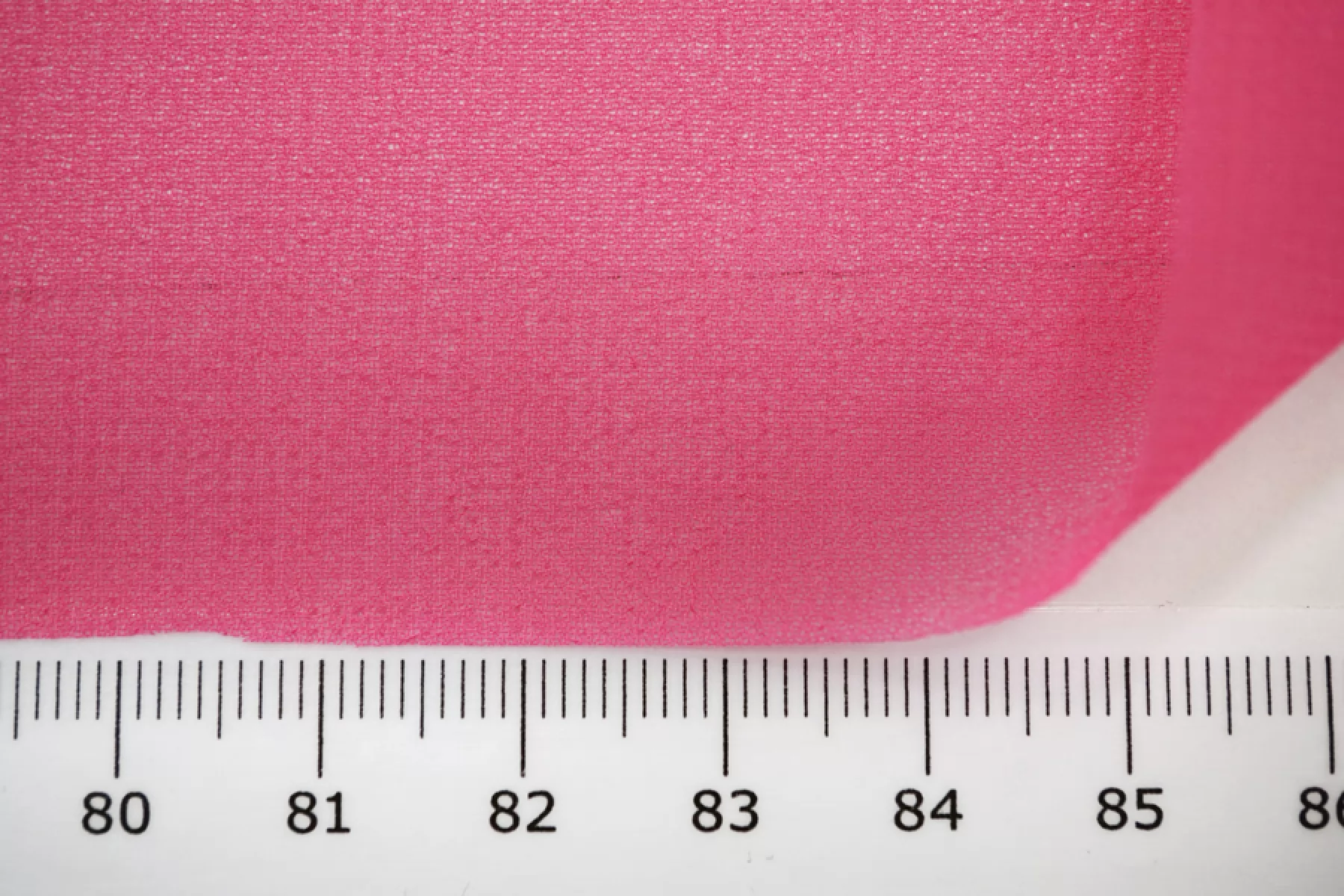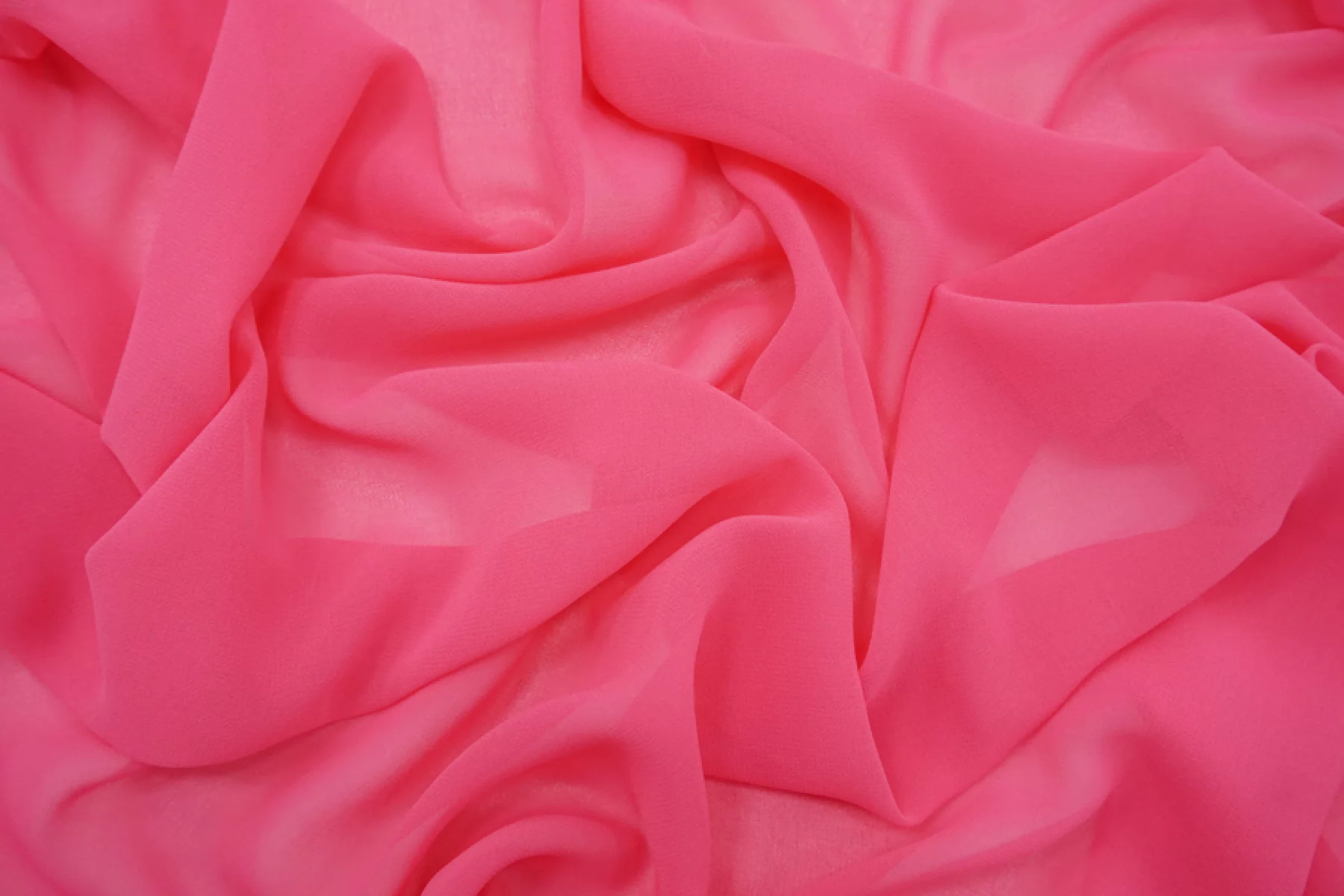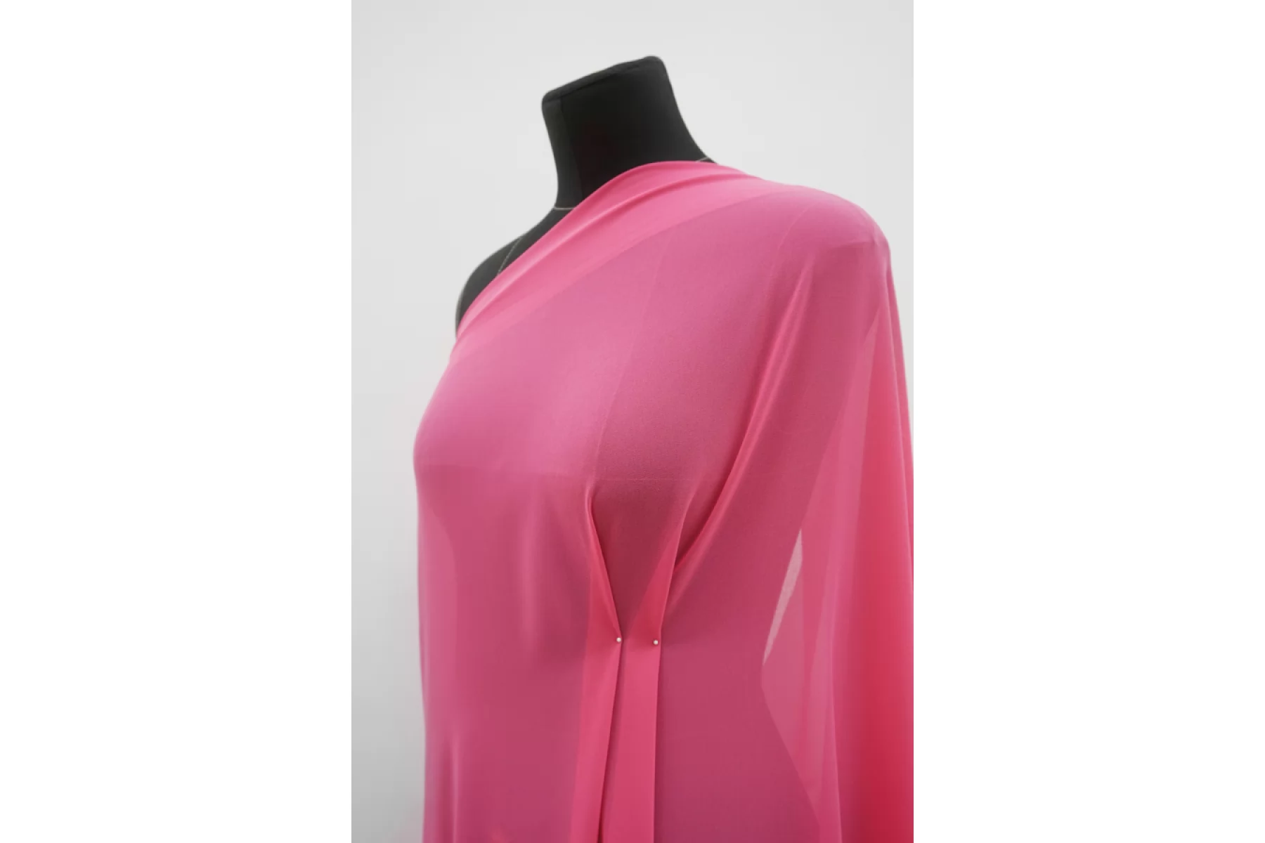 Итальянский синтетический шифон в ярко-розовом оттенке. Просвечивает, пластичный, легкий, тактильно сухой. Подойдет для пошива блузки, туники, платья, юбки (на подкладе или многослойной), парео.