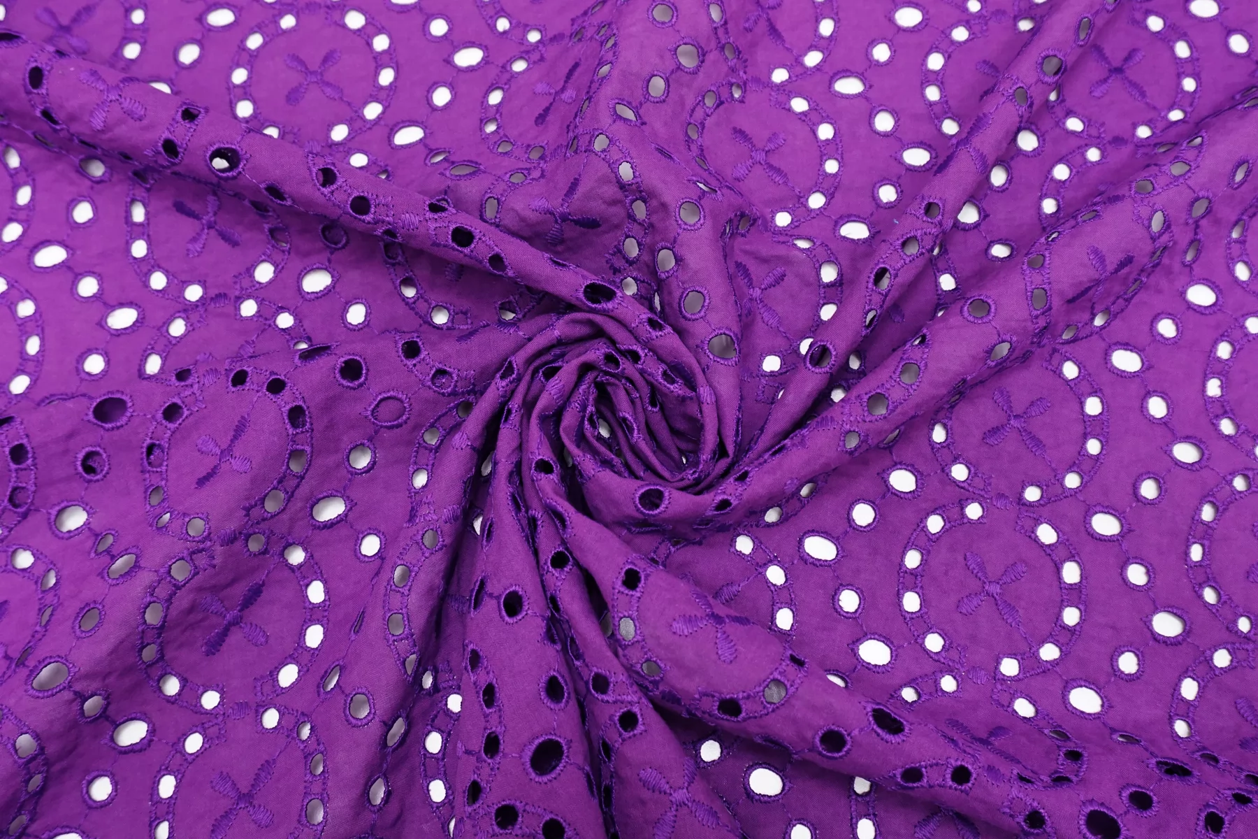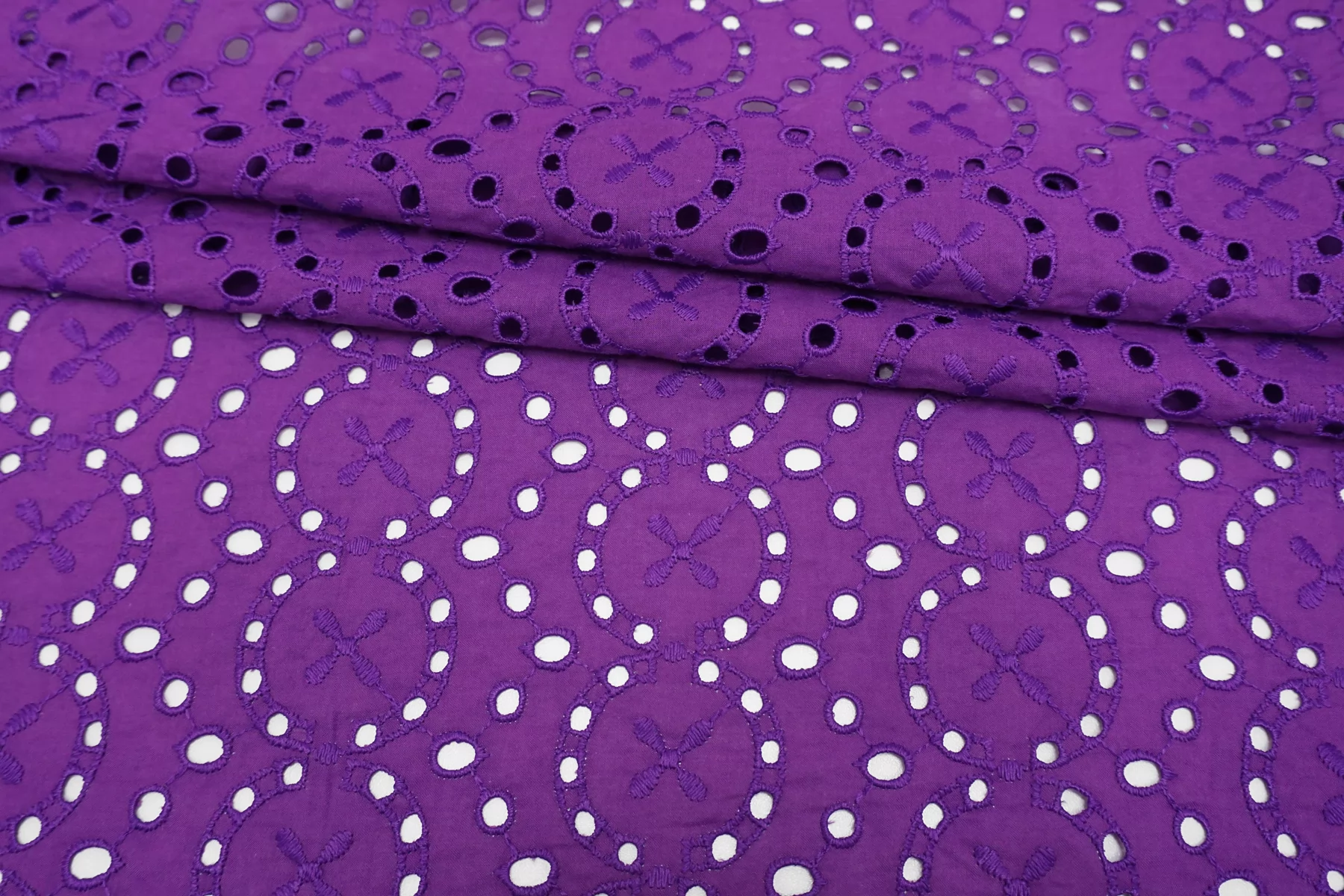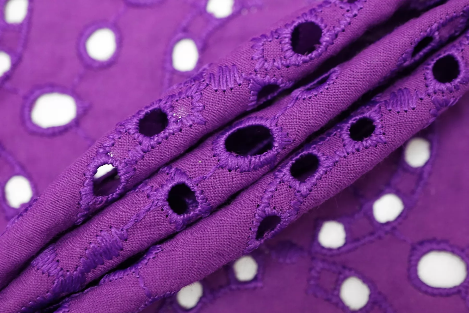 Красивое хлопковое шитье насыщенного фиолетового цвета (со сливовым подтоном) от бренда Max Mara с геометрическим орнаментом. В основе ткани хлопок, вышивка синтетической нитью. Материал пластичный, но при этом держит форму. Просвечивает. Слегка мнется. Не тянется. Прекрасный вариант на платья, сарафаны, блузки и юбки. Для однослойных изделий при необходимости используйте подкладочный материал.