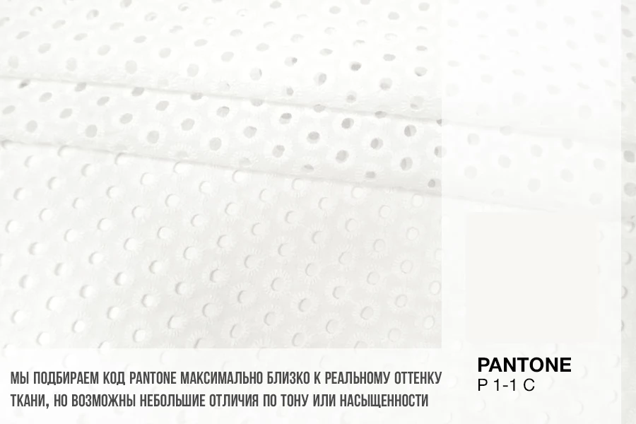 Мы делаем все возможное, чтобы точно описать цвет каждой ткани из нашего каталога. Мы осматриваем и фотографируем каждую ткань в естественном свете, стараемся находить только правильные цветовые условия и описания. Но несмотря на наши старания, мы не можем гарантировать точное соответствие цветов из-за одного простого факта: различия в цветовых настройках мониторов или мобильных дисплеев слишком велики для однозначного определения какого-либо цветового оттенка. Именно поэтому мы предлагаем вам заказать образец перед покупкой любой ткани. Также если Вы занимаетесь индивидуальным пошивом (ателье), то данная услуга поможет Вам улучшить работу с клиентами.
