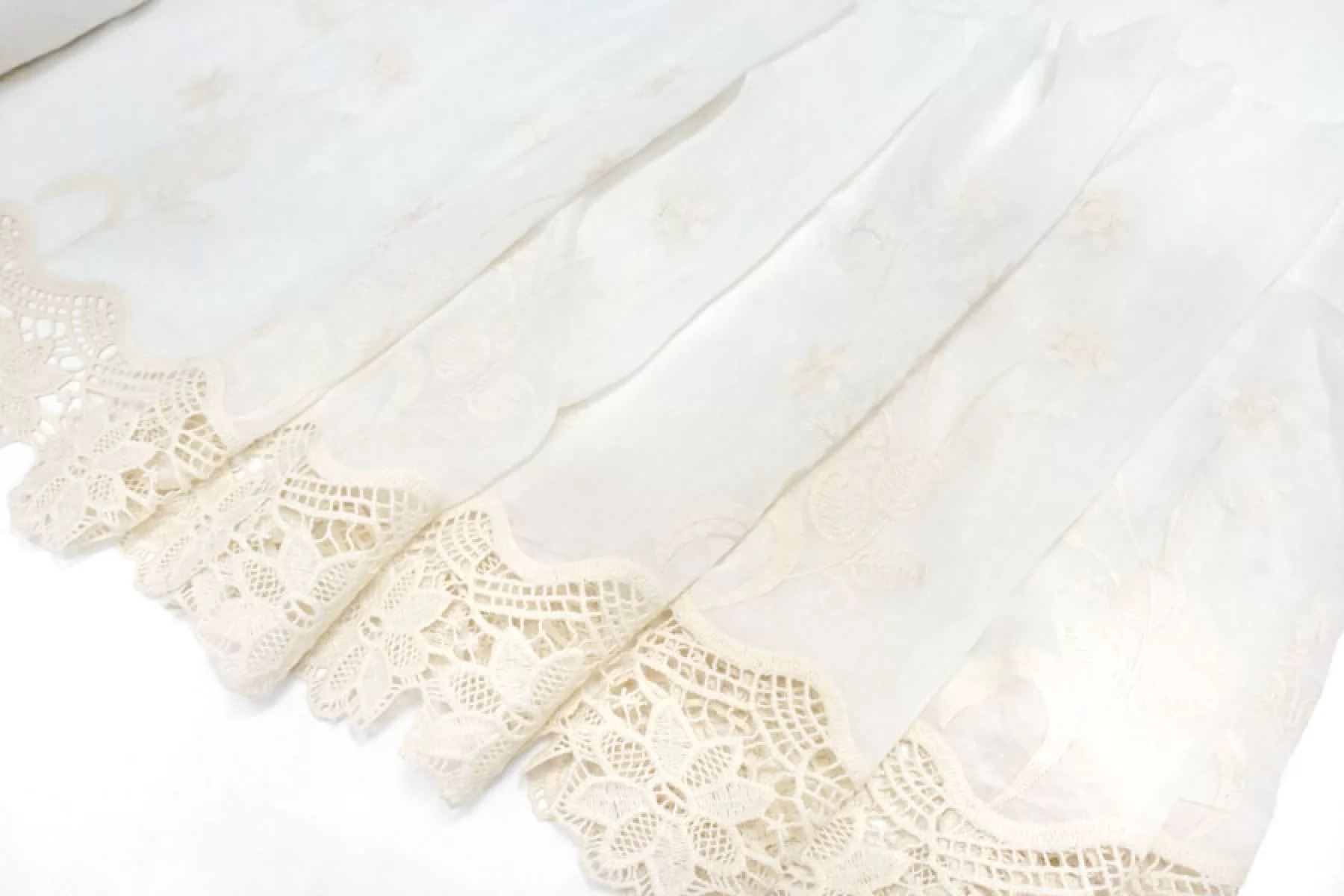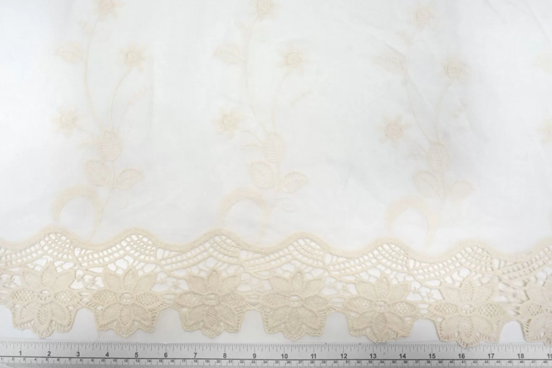 Шитье la Perla на белом батисте из хлопка и шёлка общей шириной вместе с кружевом 40 см !. Шитьё переходит в хлопковое кружево молочного оттенка ( ширина кружева 12 см) . Цена за метр.