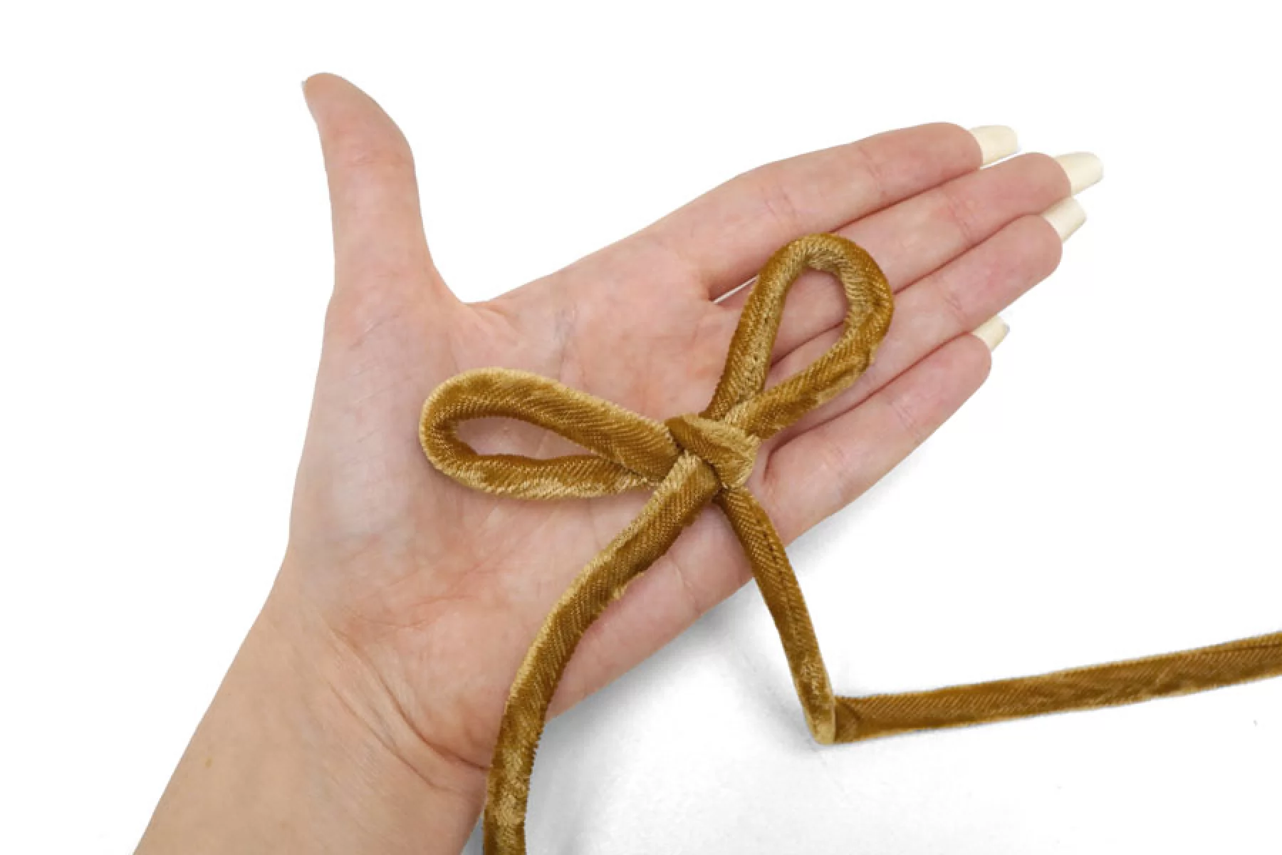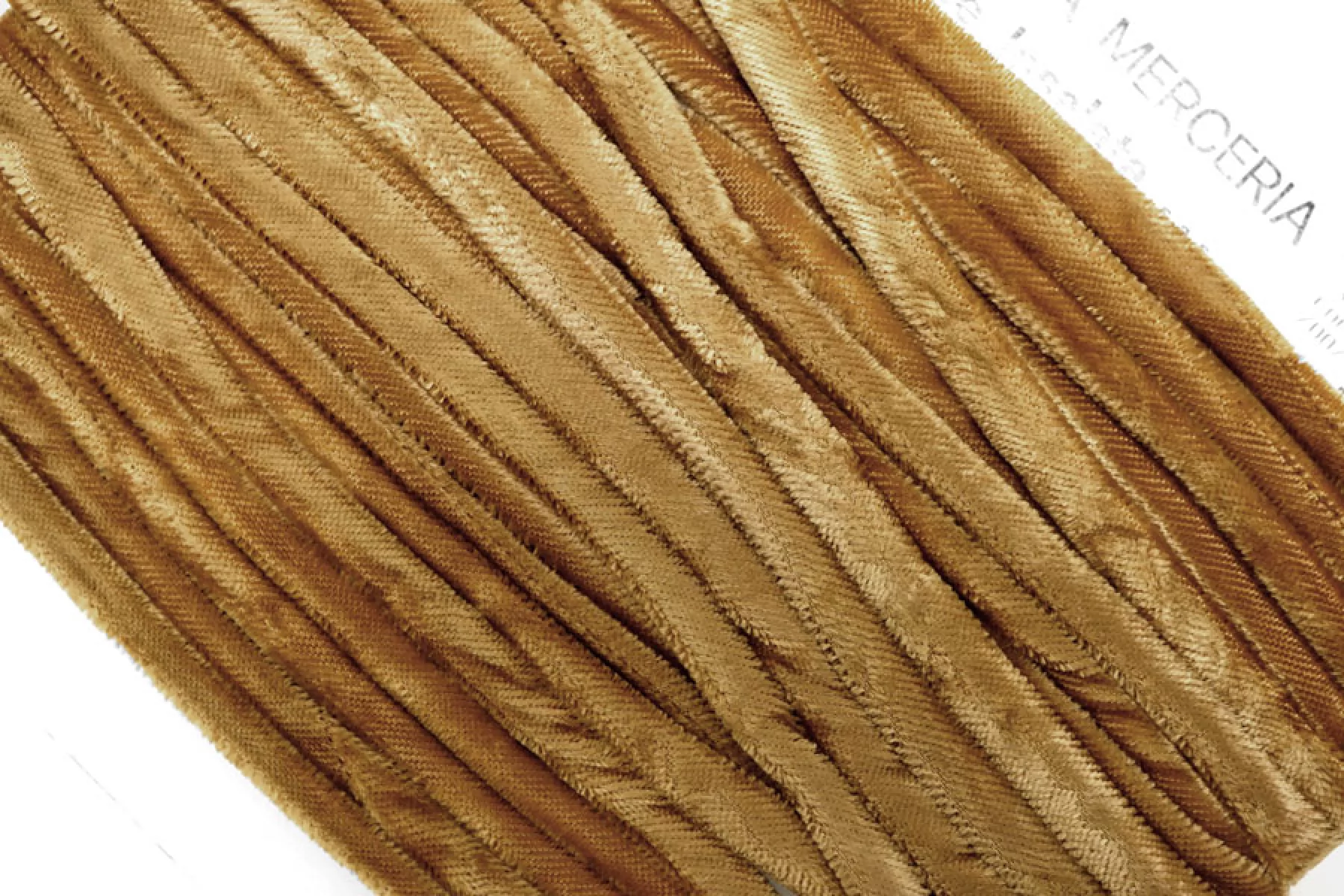 Бархатный шнур в карамельном оттенке . Ворс вискозный, внутри шнурок - хлопковый. Ширина 10 мм. Приятный наощупь, блестит.