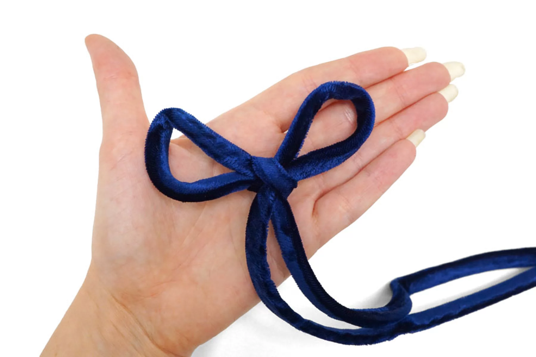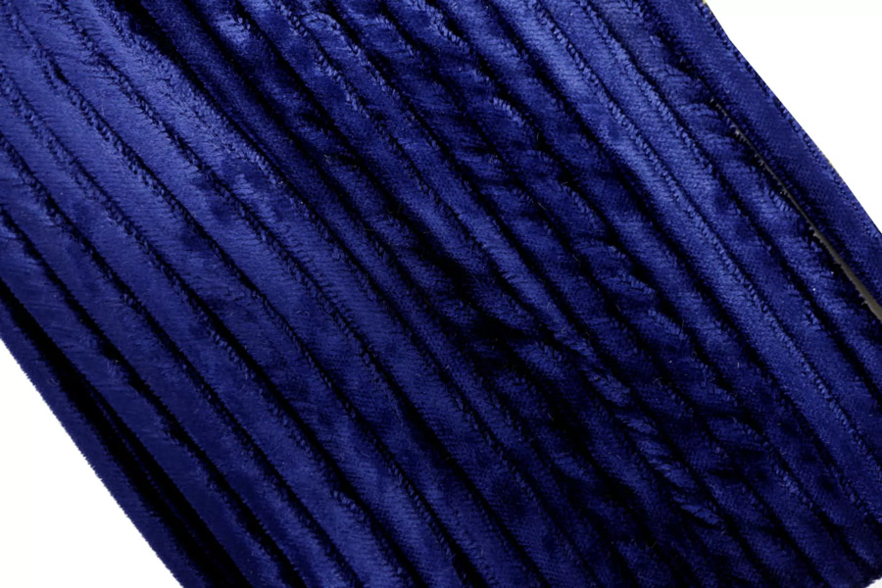 Бархатный шнур в синем оттенке . Ворс вискозный, внутри шнурок - хлопковый. Ширина 10 мм. Приятный наощупь, блестит.