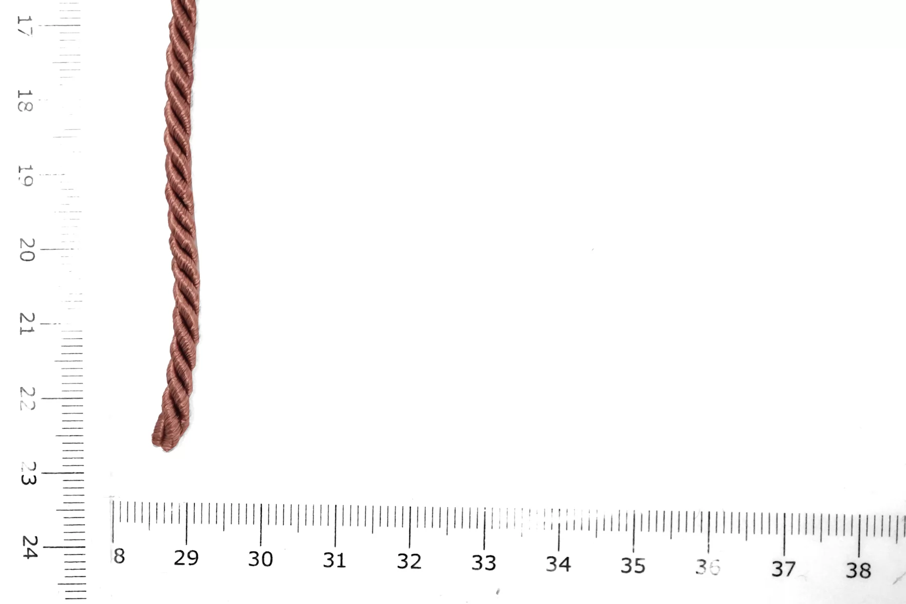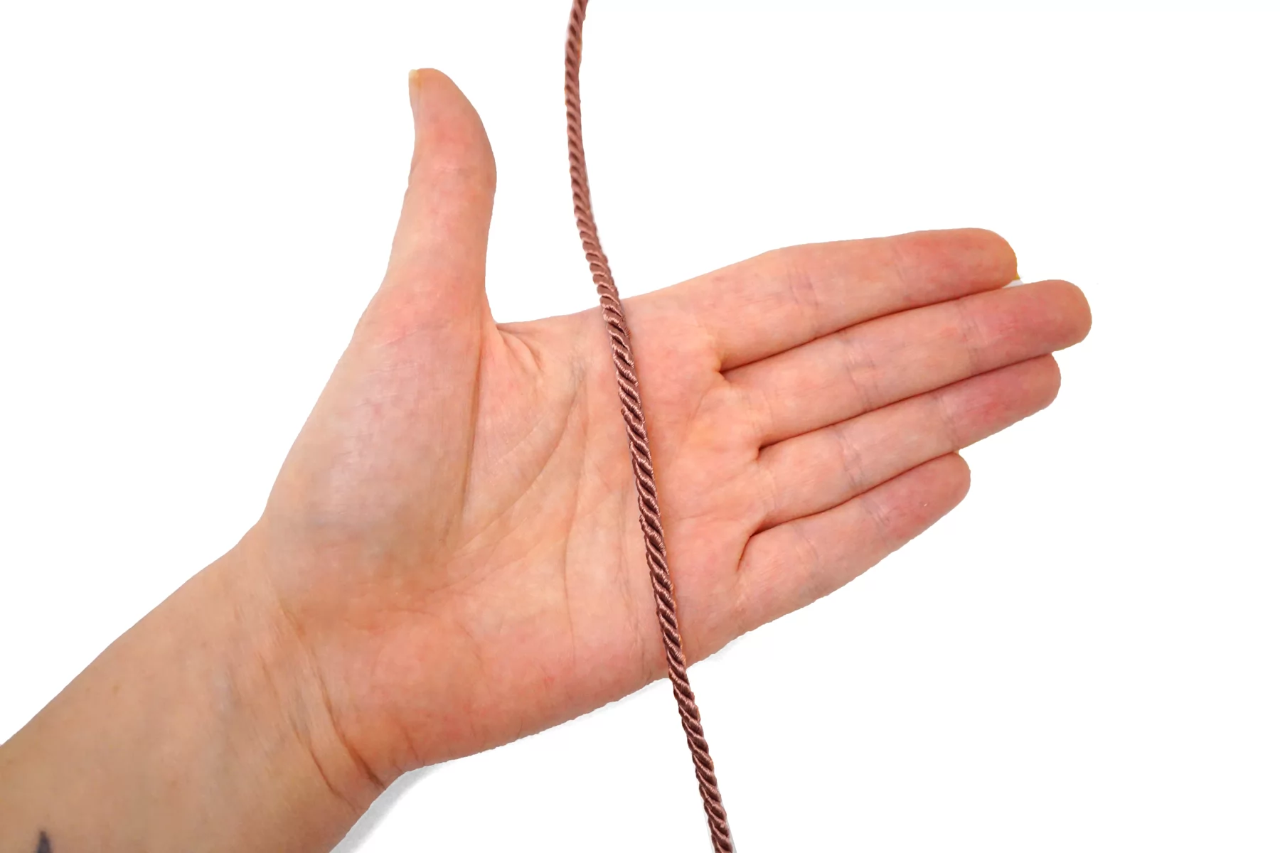 Гайтановый шнур цвета розового какао. Форма круглая. Ширина около 4 мм.