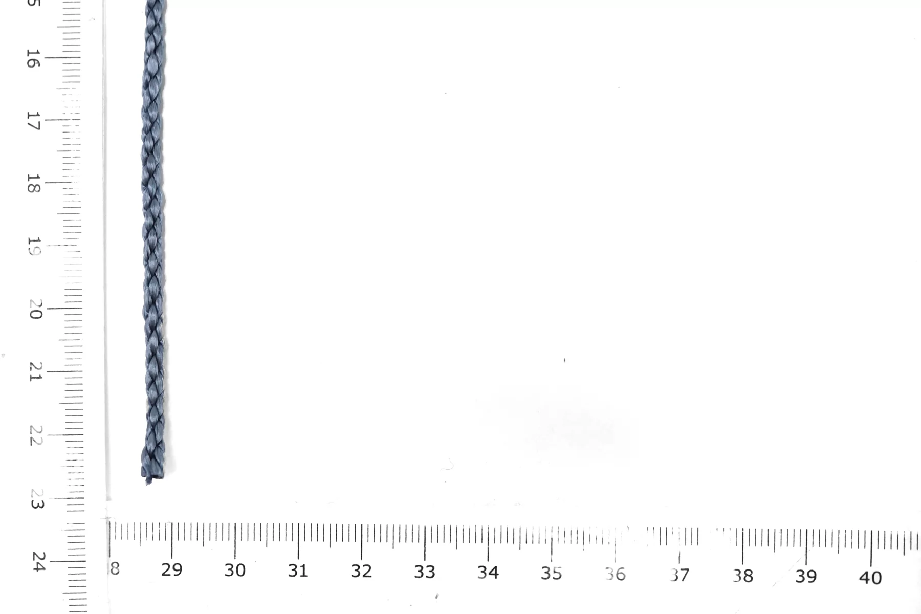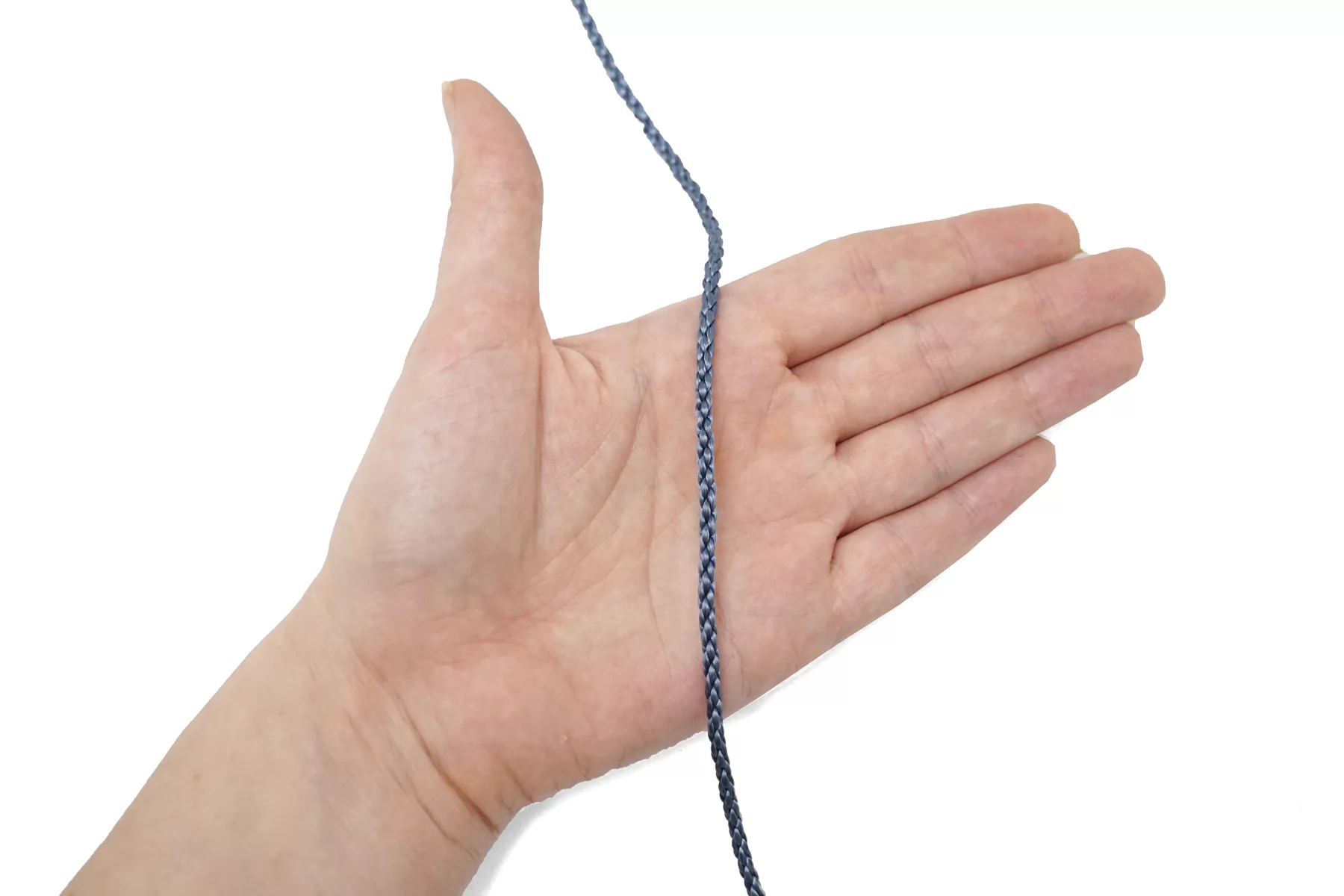 Гайтановый шнур, серо-голубой цвет. Форма круглая. Ширина около 4 мм.