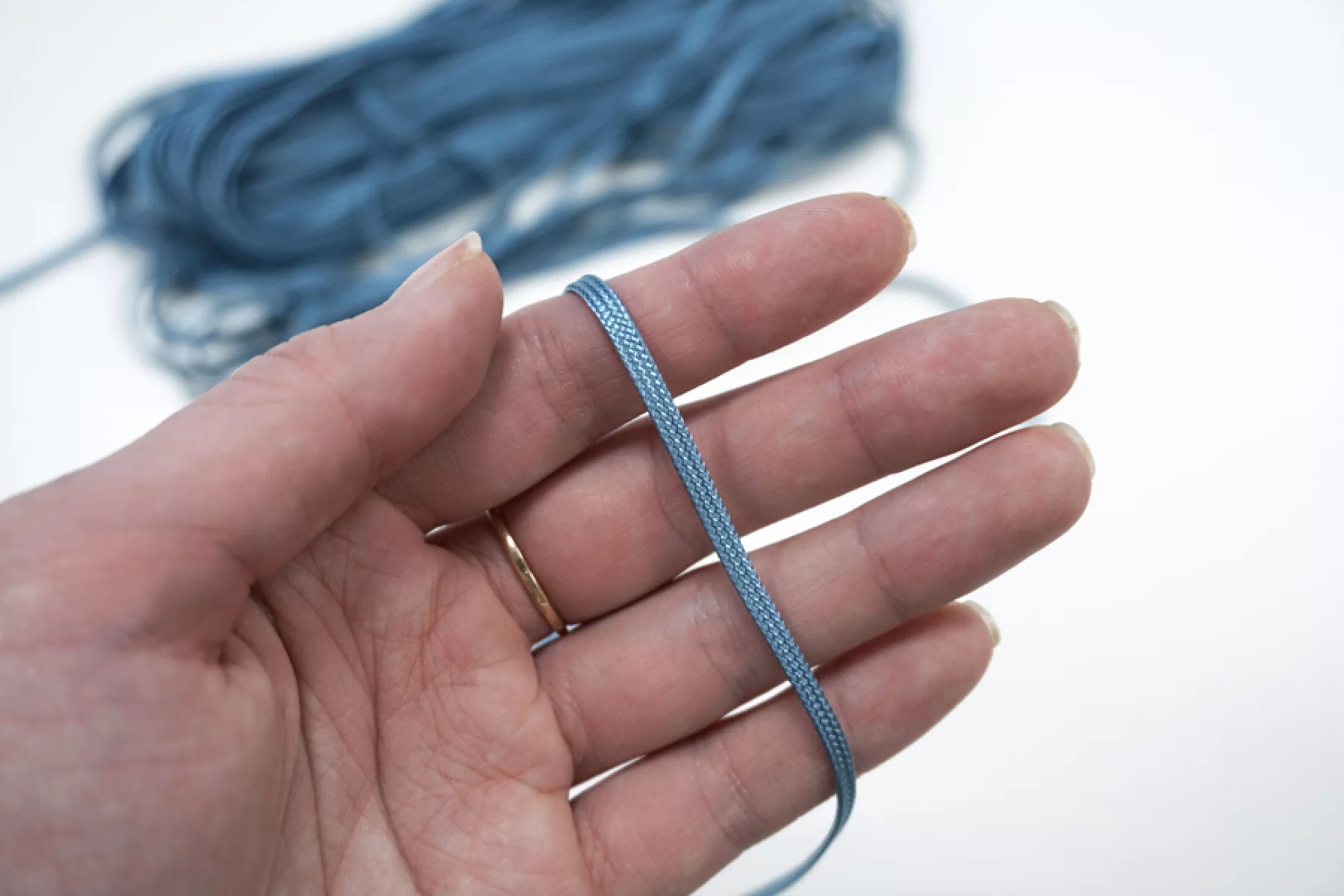 Плоский акриловый шнур голубого цвета, шириной 3 мм.