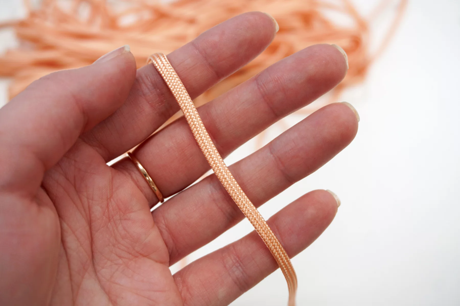 Плоский акриловый шнур персикового цвета, шириной 3 мм.