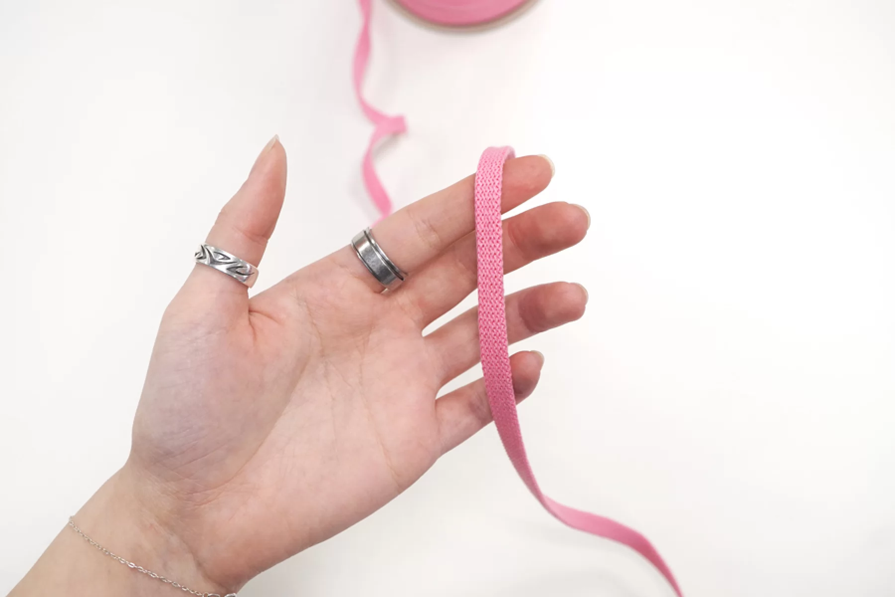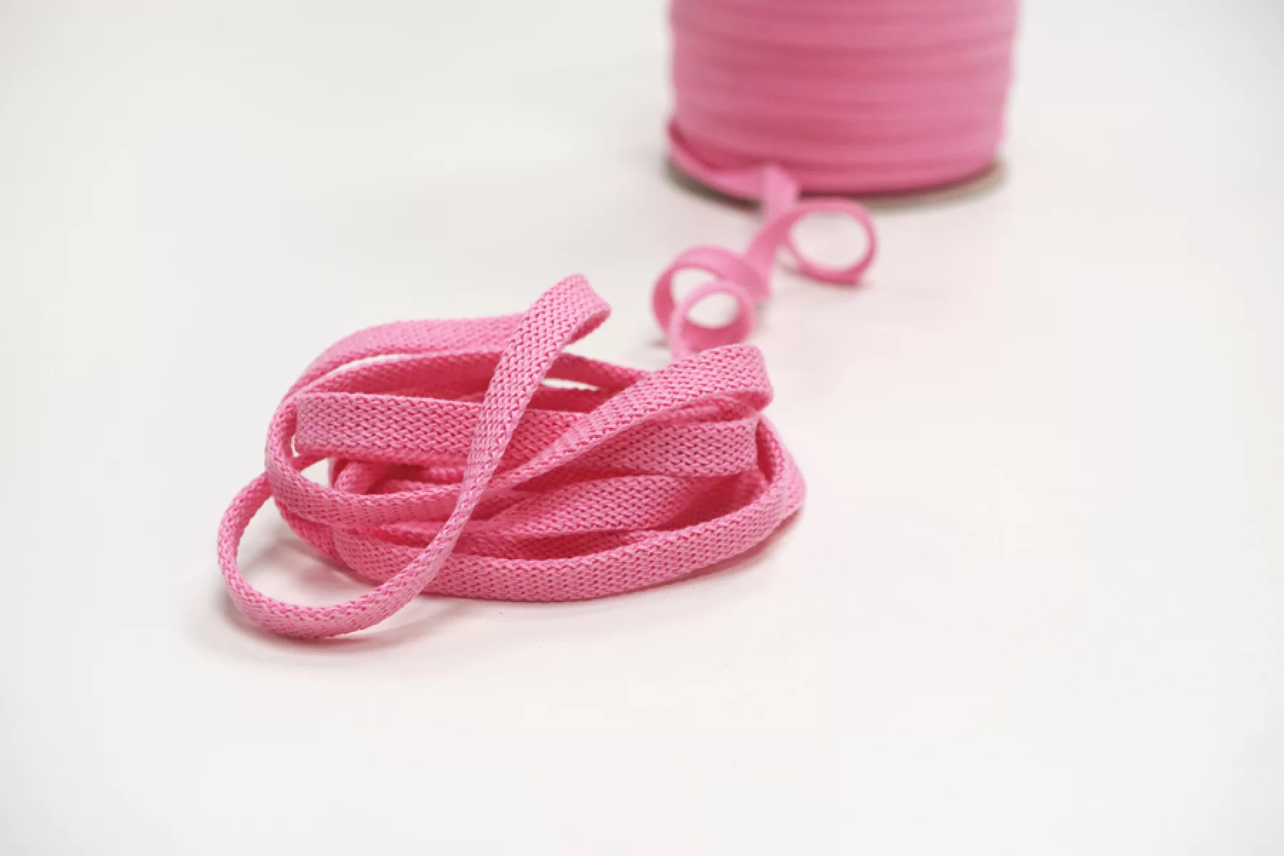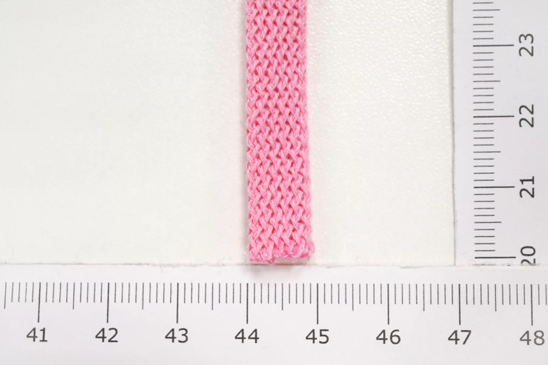 Плоский хлопковый шнур розового цвета, шириной 0,8 см.