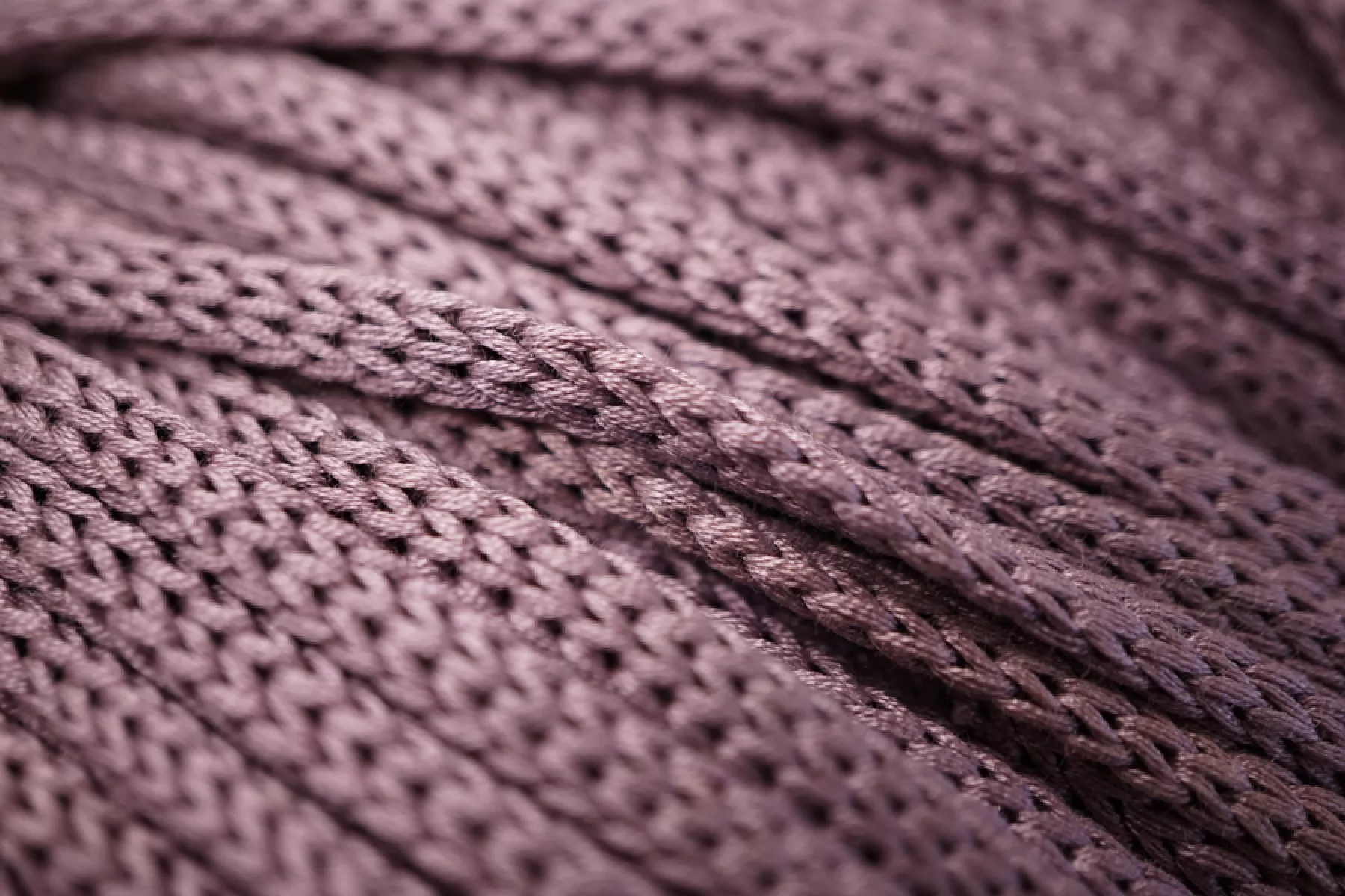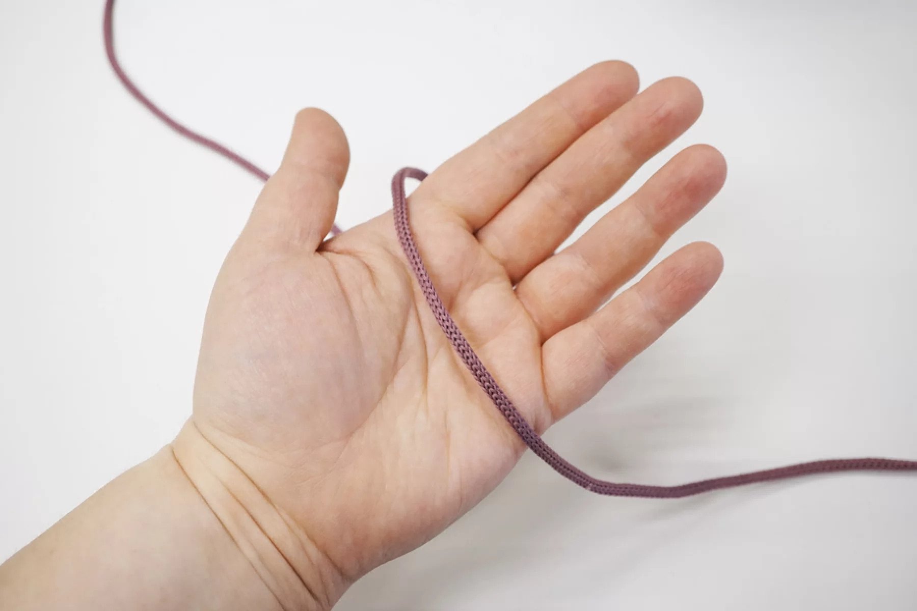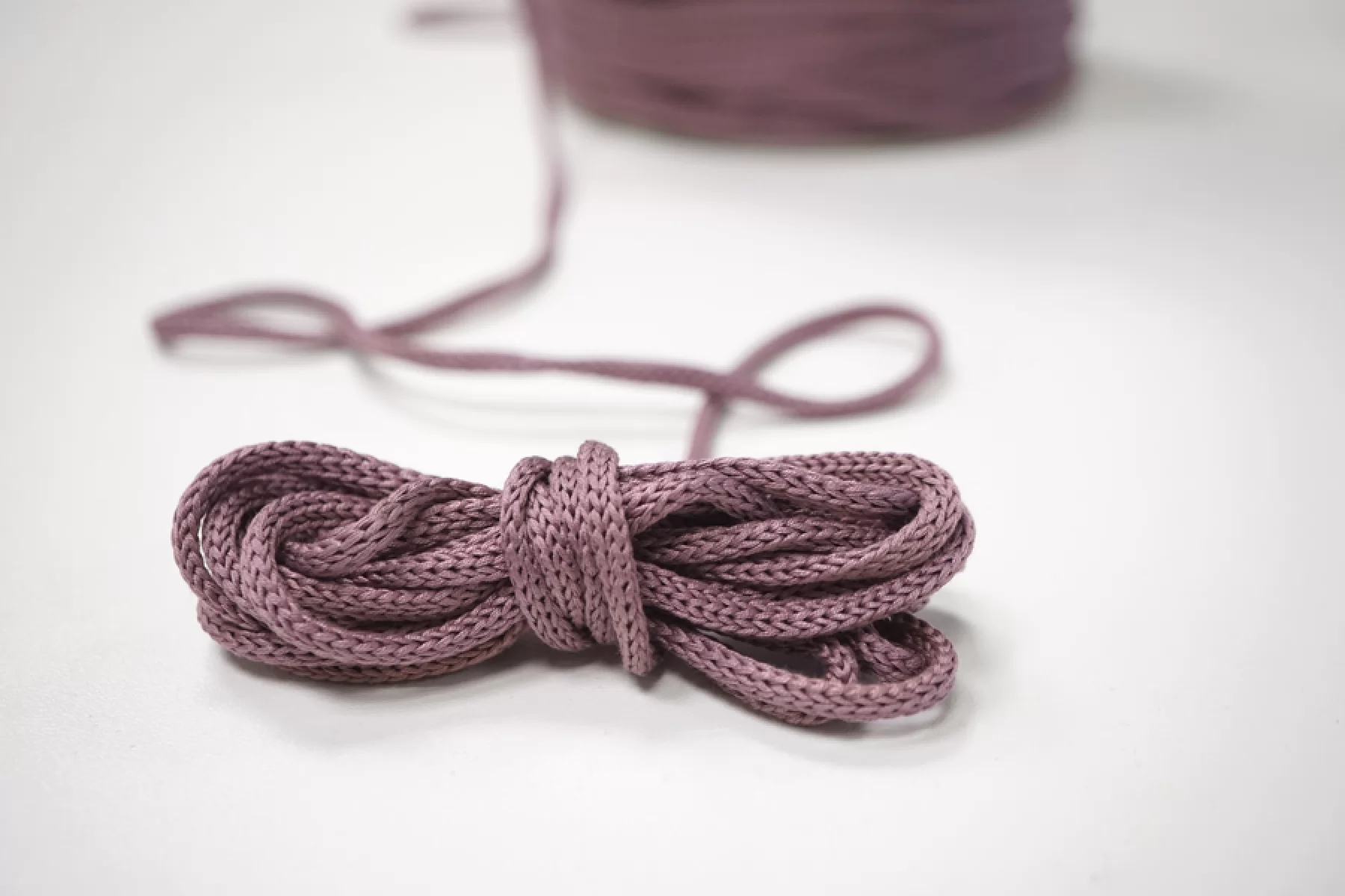 Хлопковый шнур пыльно-розового цвета. Форма круглая. Ширина около 4 мм.