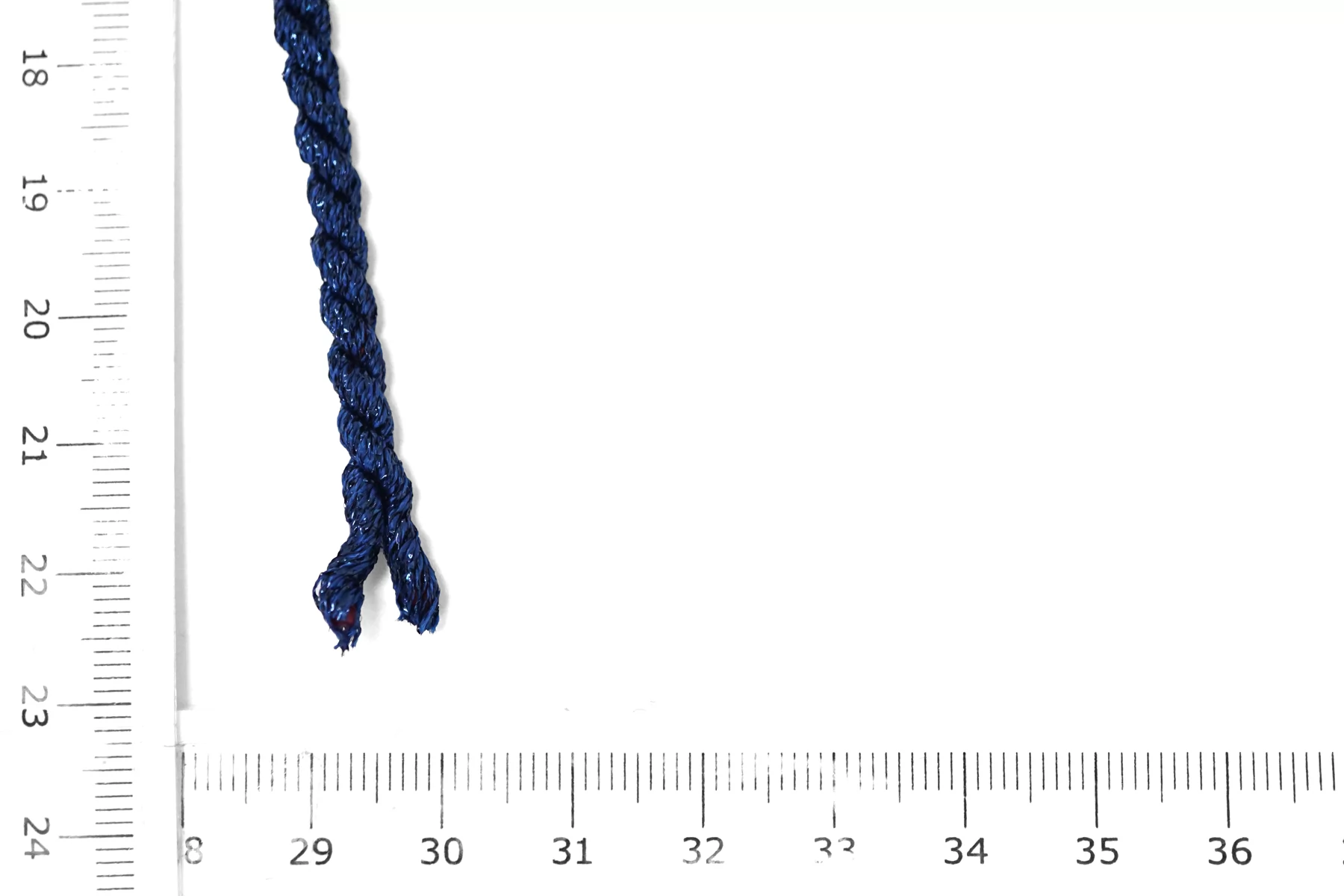 Шнур хлопковый ягодного цвета, в синей оплётке с синим люрексом. Форма круглая. Ширина около 5 мм.