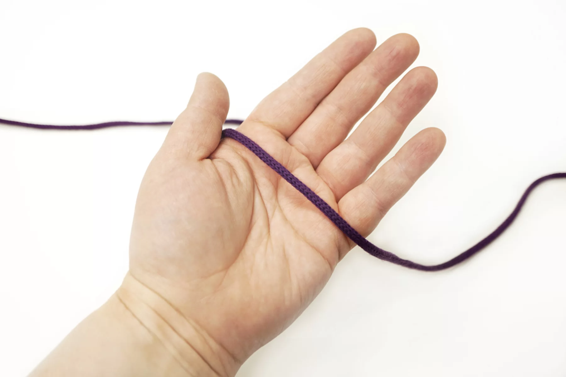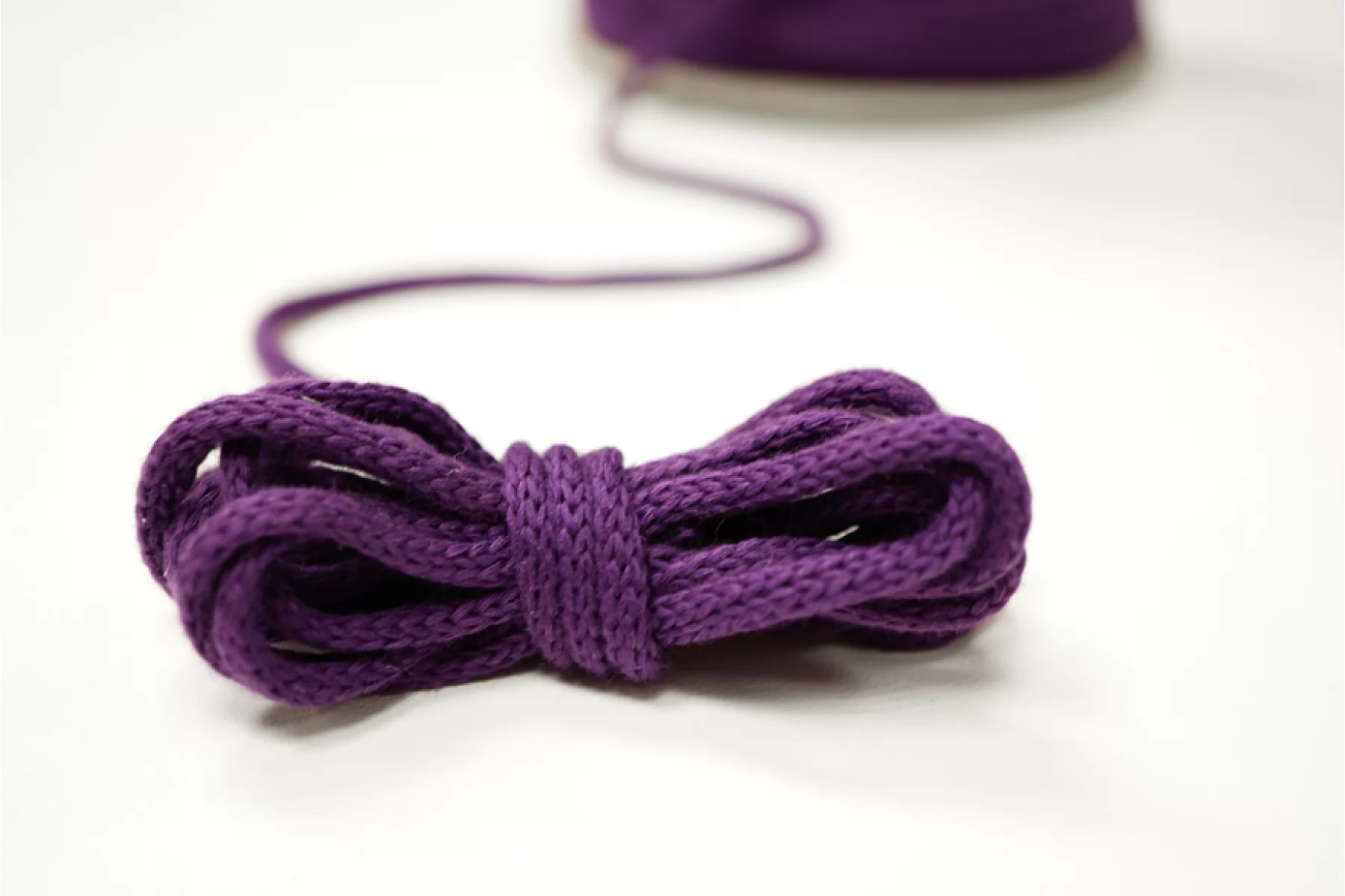 Хлопковый шнур темно-фиолетового цвета. Форма круглая. Ширина около 4 мм.