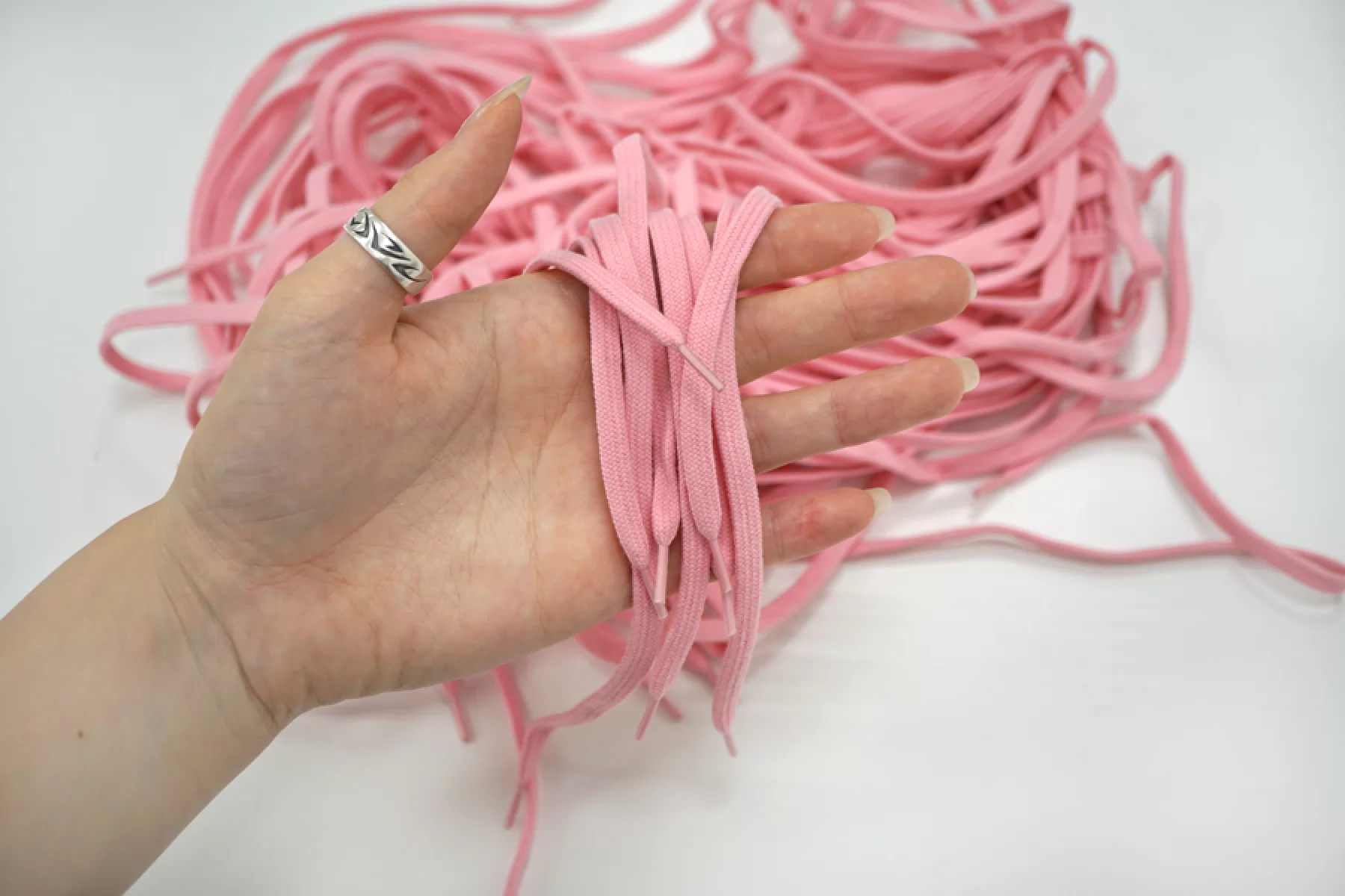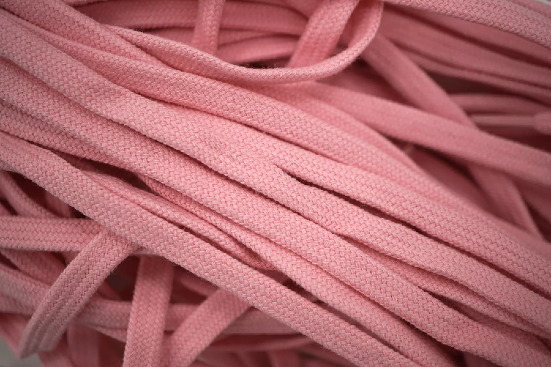 Плоский шнур Simonetta розового цвета с пластиковыми эглетами с обеих сторон. Ширина 5 мм, длина 110 см.