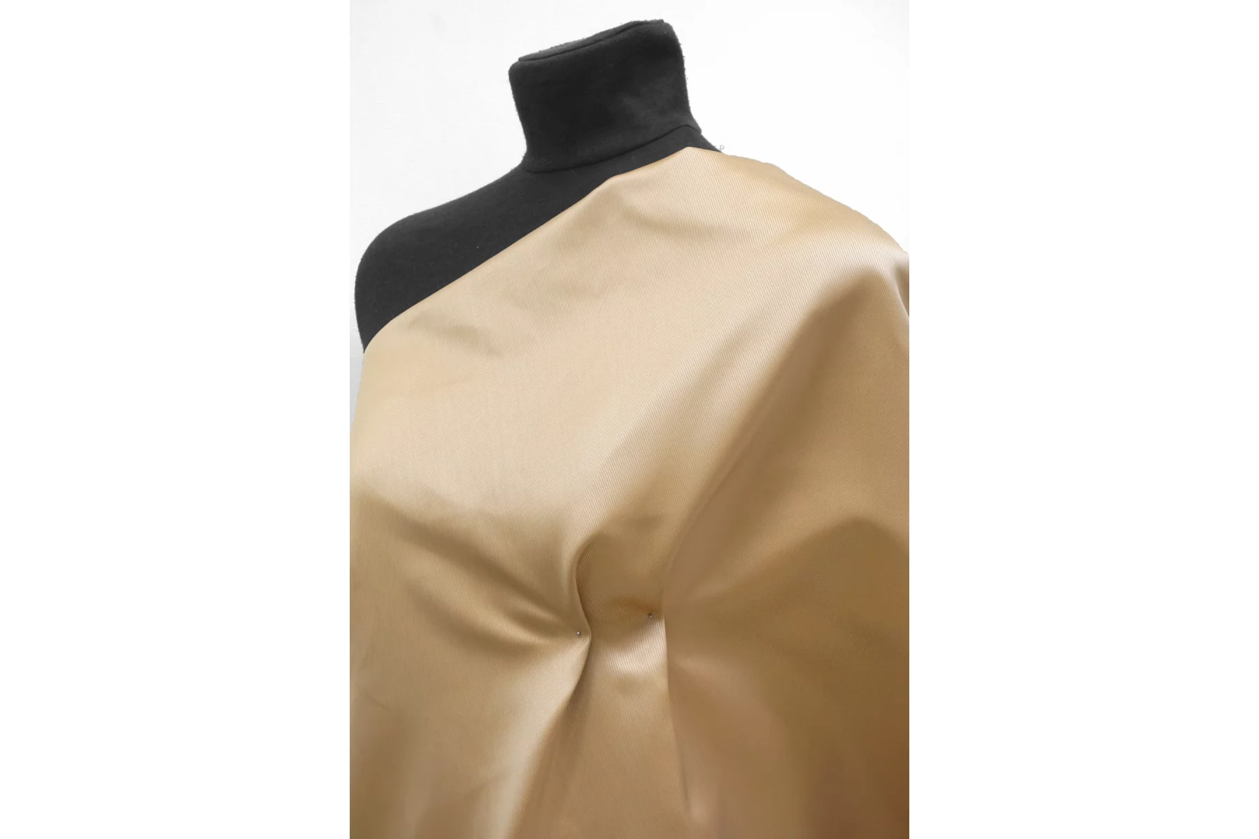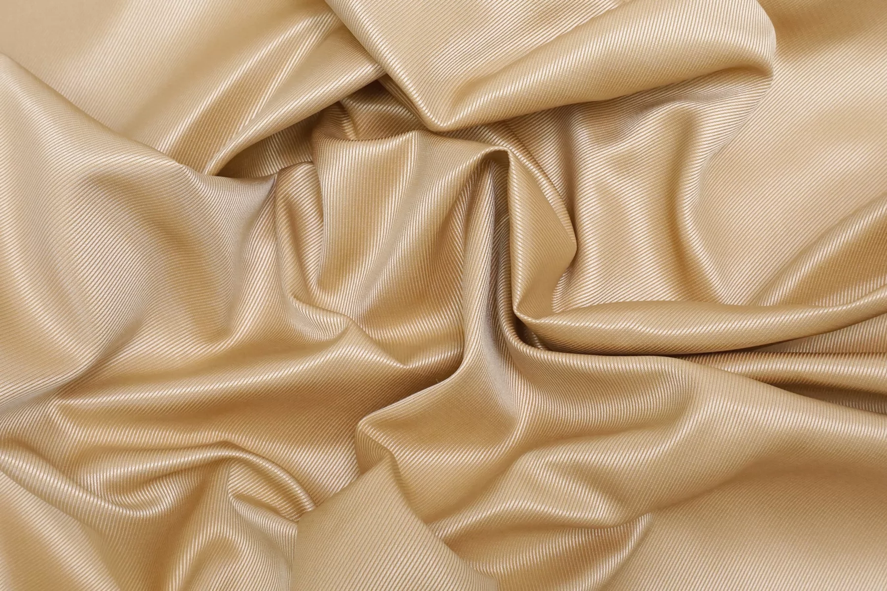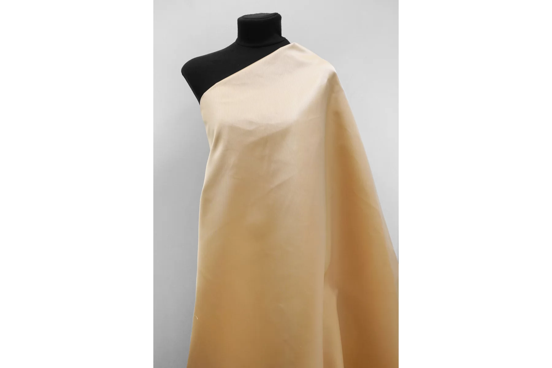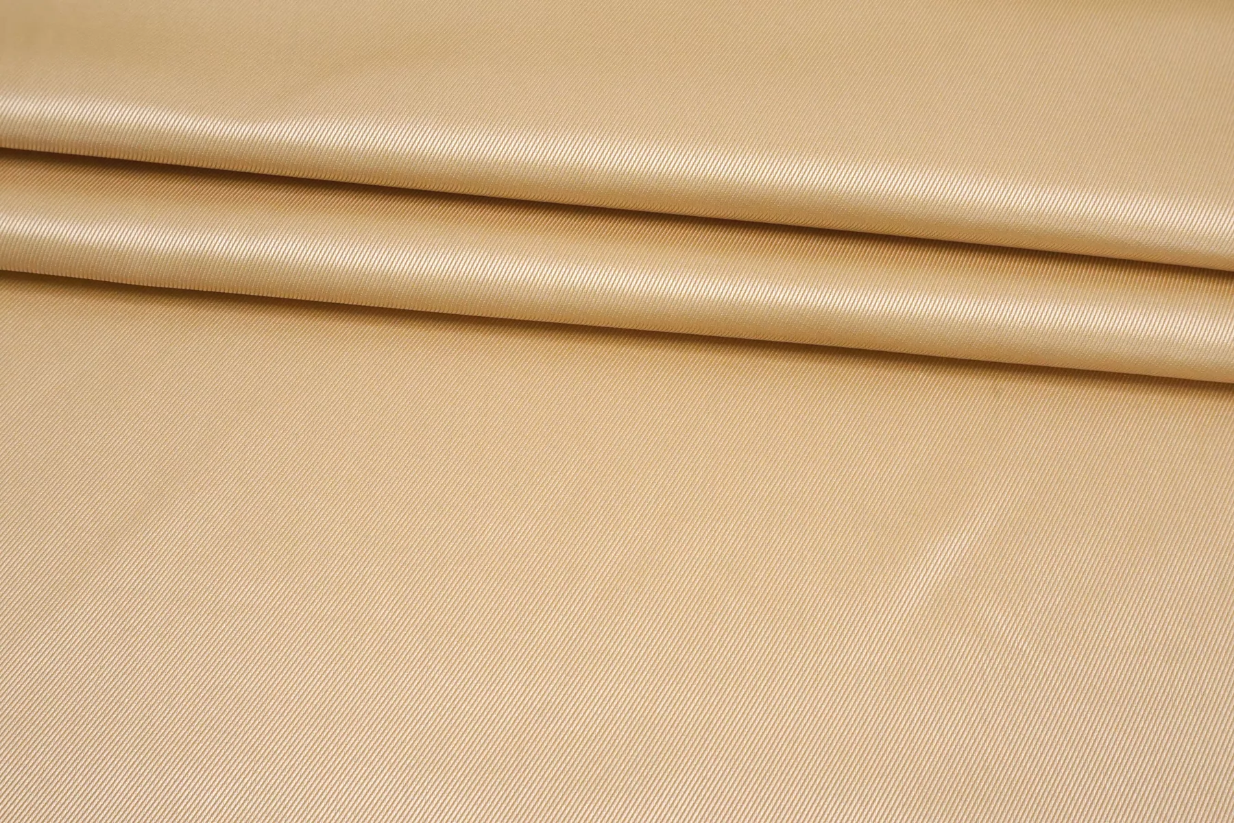 Внимание! По центру всего рулона полоса см. фото. Очень классная позиция - костюмный шёлк с полиамидом в красивом, золотистом персиково-бежевом оттенке. Плетение с одной стороны диагональное, с другой между атласом и сатином. С насыщенным отблеском. Смотрится нарядно. Тактильно плотный, но при этом пластичный, мягкий, гладкий. Форму держит, мнется. Не тянется, не просвечивает. Отличный вариант на жакеты, костюмы, формодержащие юбки. Уход за материалом деликатный.