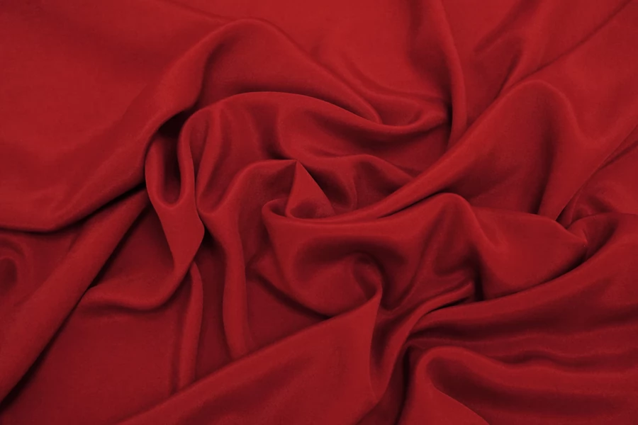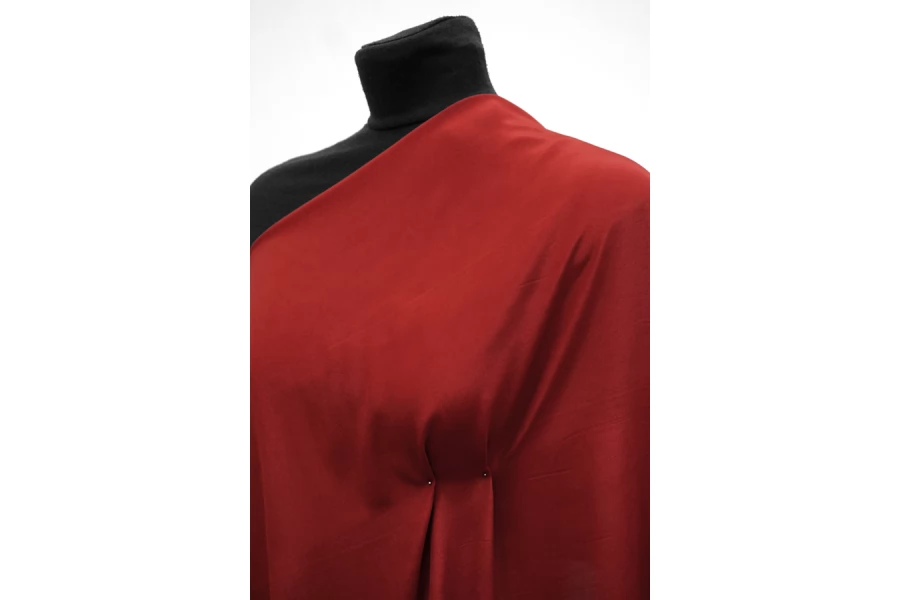 Плательно-блузочный по плотности, крепдешин из шёлка с ацетатом в бордовом (тёплом) оттенке. Тактильно слегка шероховатый, легкий и воздушный. Не тянется. Красив в своей пластике и в складках. Немного просвечивает в один слой. Отлично подойдет на платья, юбки, туники и блузки. Уход - деликатный.