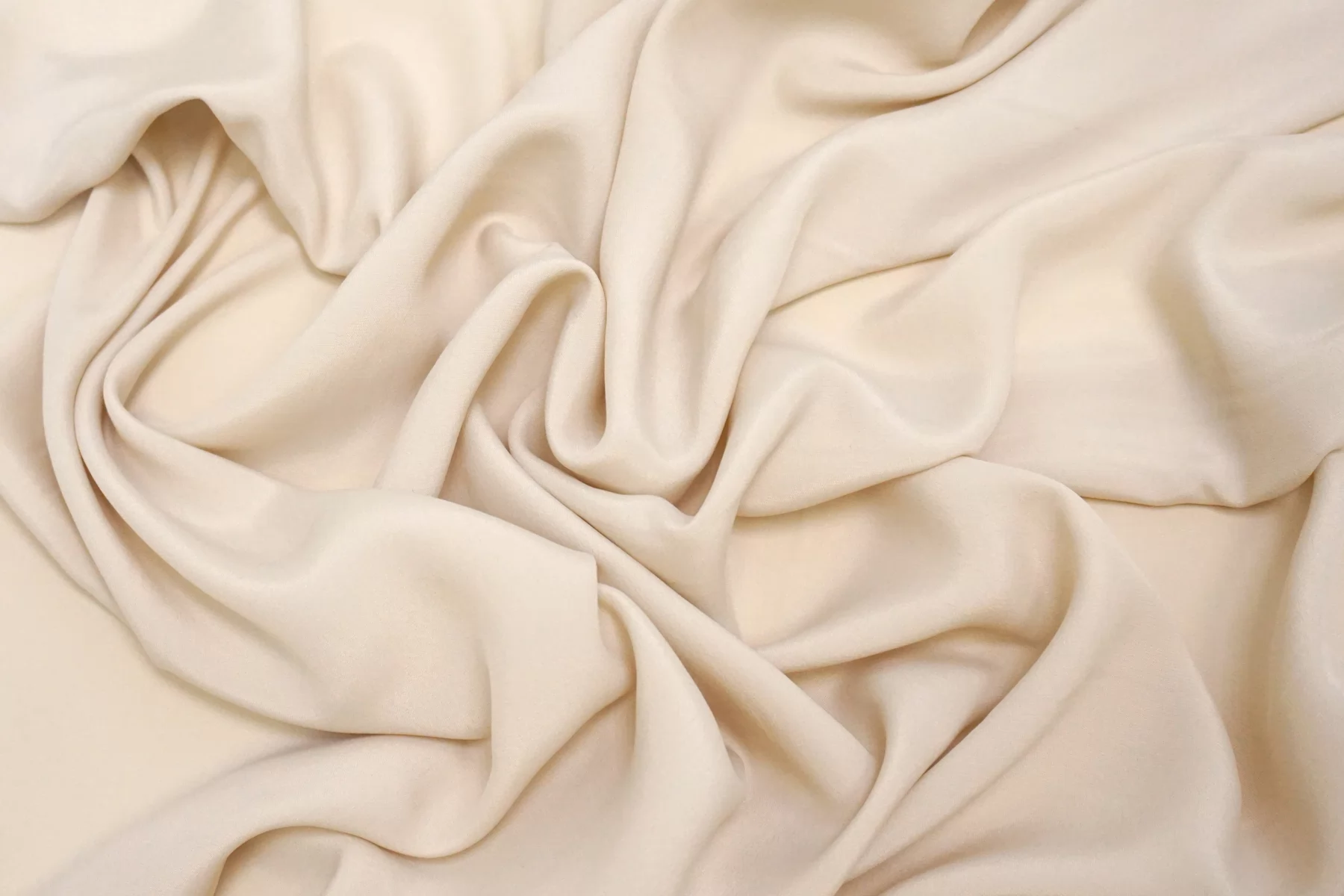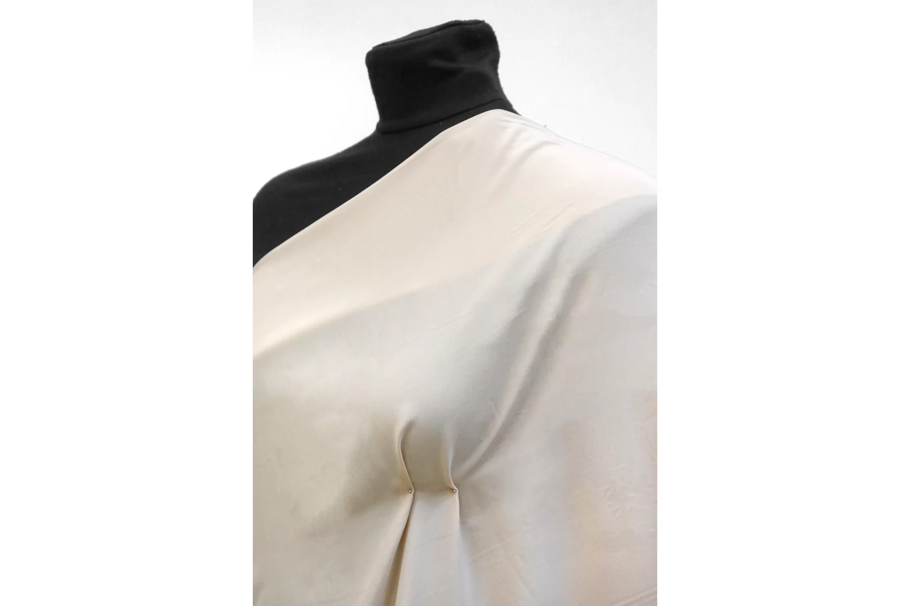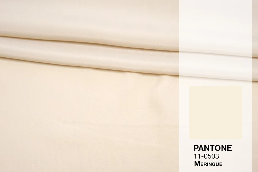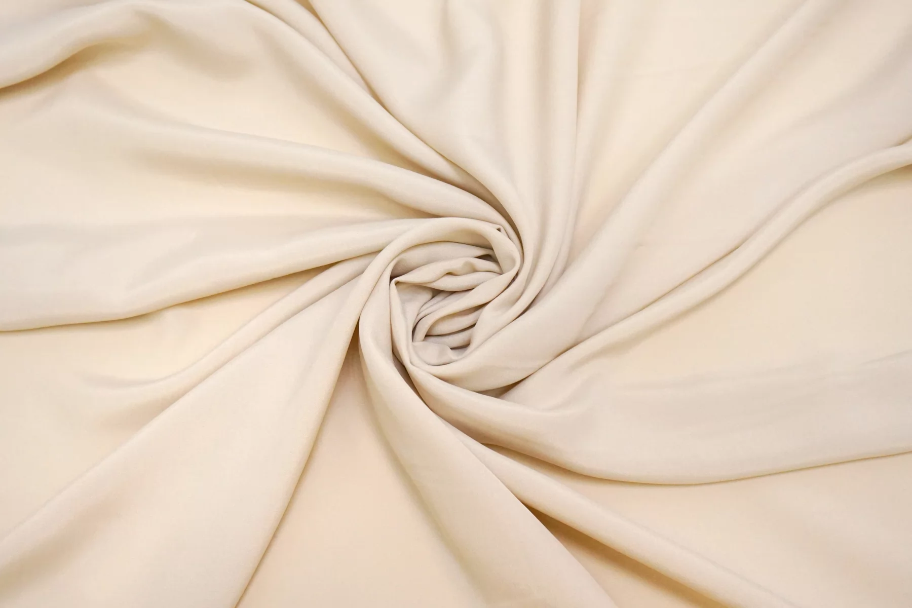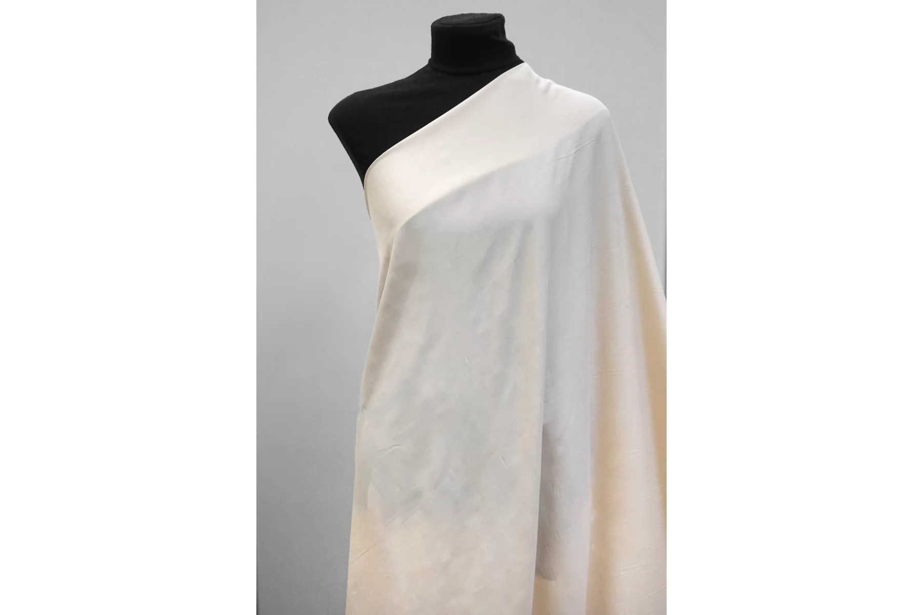 Плательно-блузочный по плотности, крепдешин из шёлка с ацетатом в красивом, светлом бежевом оттенке (нейтральном экрю). Присутствует муарный эффект. Тактильно слегка шероховатый, легкий и воздушный. Не тянется. Красив в своей пластике и в складках. Немного просвечивает в один слой. Отлично подойдет на платья, юбки, туники и блузки. Уход - деликатный.