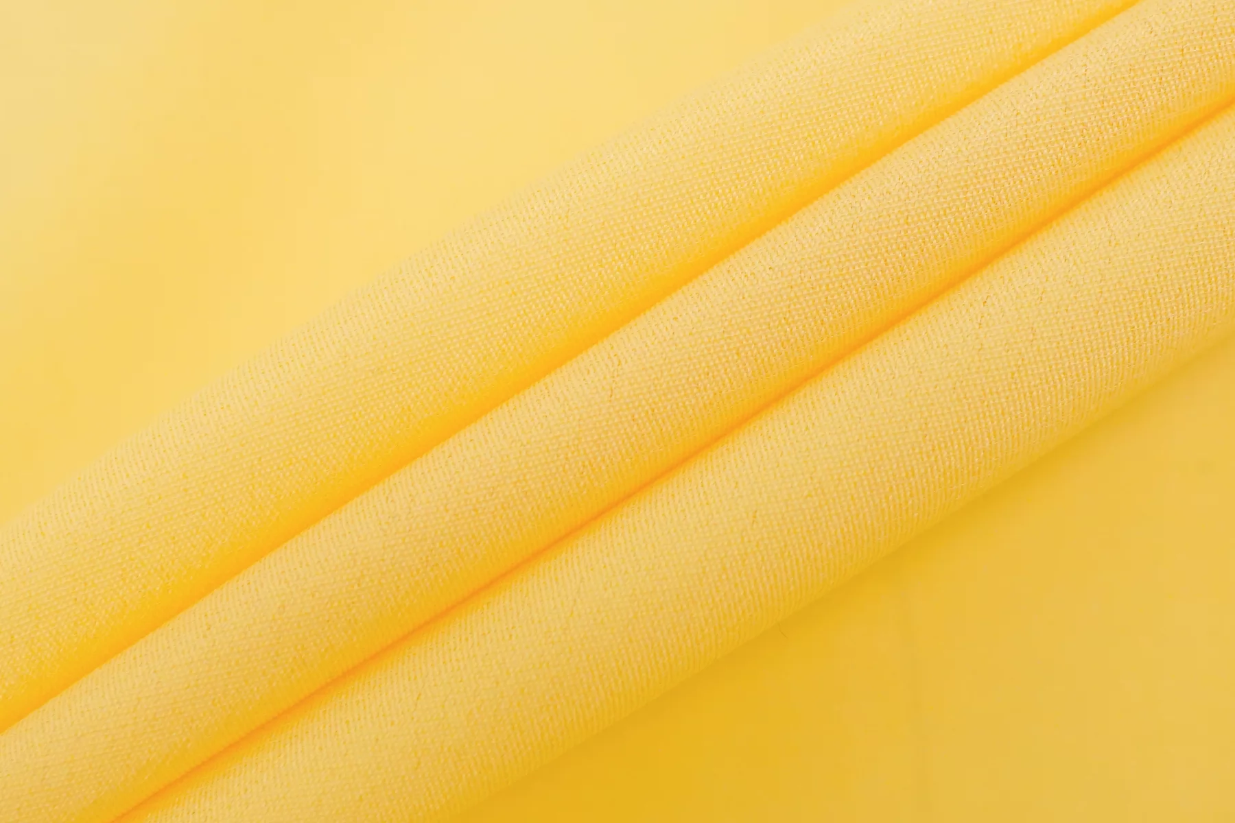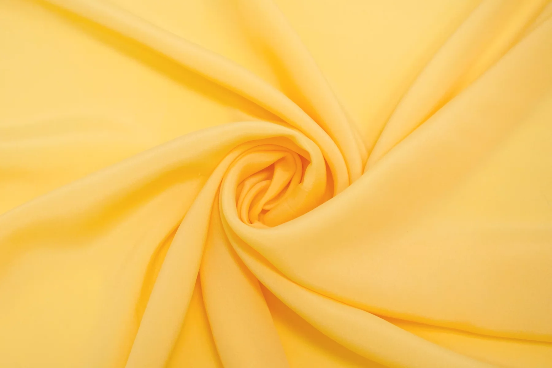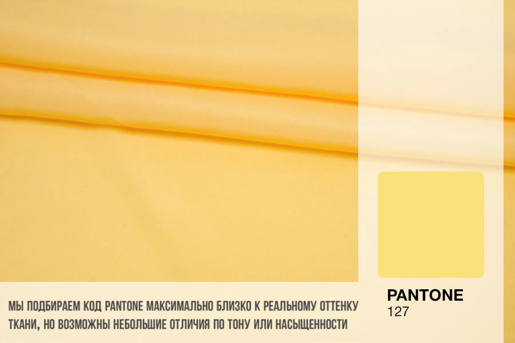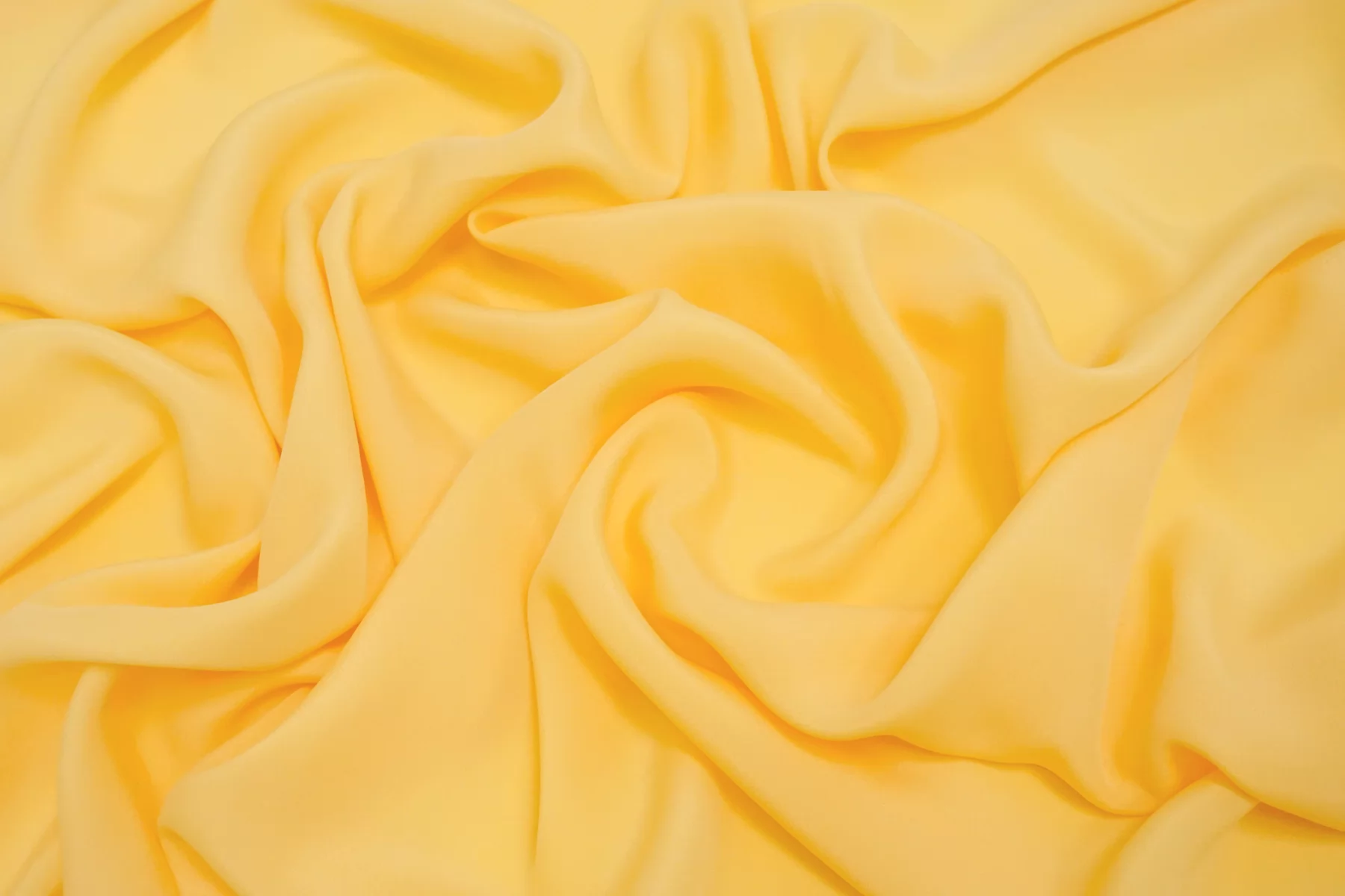 Плательно-блузочный по плотности, крепдешин из шёлка с ацетатом в красивом, насыщенном но при этом нежном, тёплом жёлтом оттенке. Присутствует муарный эффект. Тактильно слегка шероховатый, легкий и воздушный. Не тянется. Красив в своей пластике и в складках. Немного просвечивает. Отлично подойдет на платья, юбки, туники и блузки. Уход - деликатный.