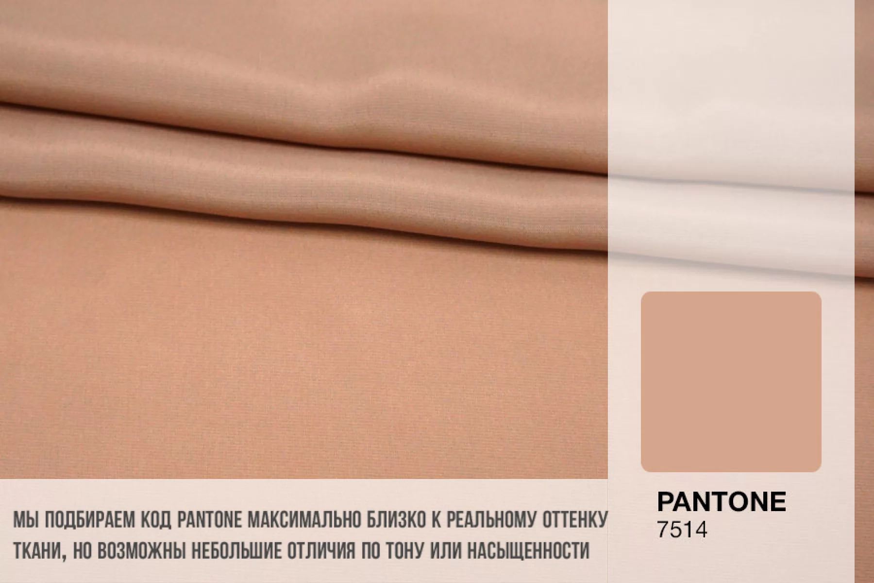 Крепдешин плательно-блузочный, шёлк с ацетатом в красивом бежево-розовом оттенке. Присутствует муарный эффект. Тактильно слегка шероховатый, легкий и воздушный. Не тянется. Красив в своей пластике и в складках. Немного просвечивает в один слой. На несколько тонов темнее кожи, но можно использовать в качестве нижнего платья под полупрозрачные ткани. Отлично подойдет на платья, юбки, туники и блузки. Уход - деликатный.