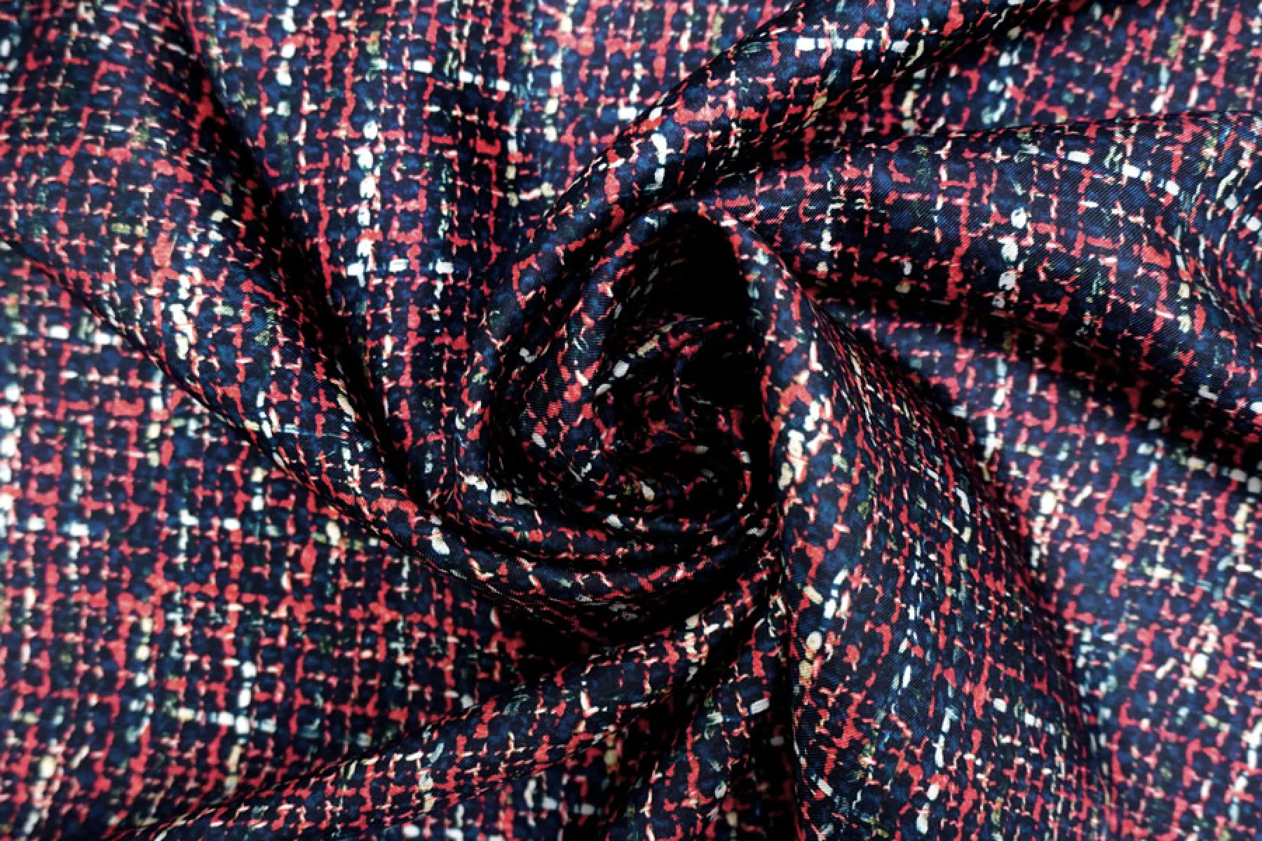 Шёлковый твил MAX MARA Абстракция под твид сине-бело-ягодная MM H31 N20 30092543
