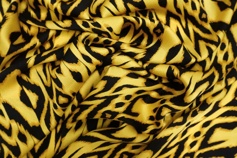 Сирсакер атласный вискозный плательно-блузочный MAX MARA Абстракция чёрно-желтая MM H21/2 H30 1102527
