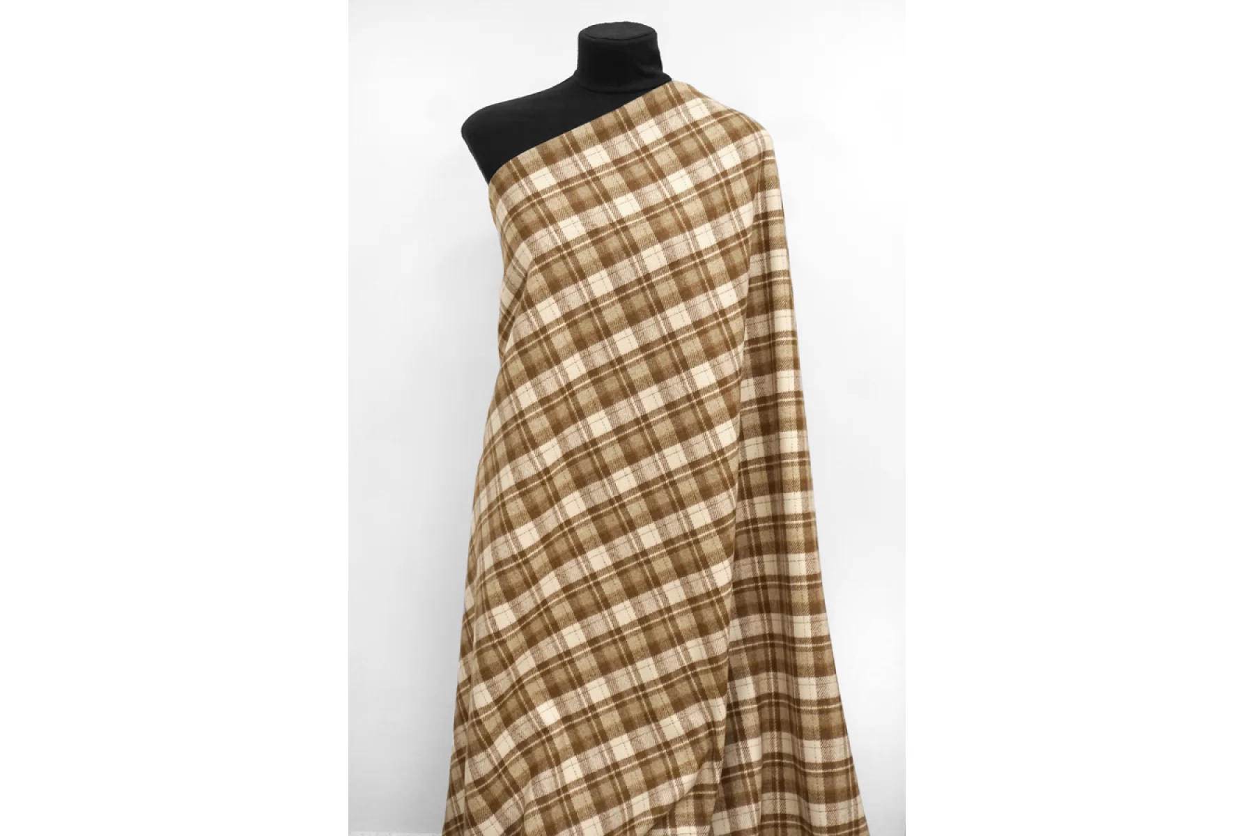 Шикарная костюмное шерстяное сукно диагонального плетение в светло-коричневую крупную клетку. Тактильно приятная, очень мягкая, с легким ворсом, немного суховатая, не колется. Не тянется и не просвечивает. Не мнется. Плотненькое, примерно 1,5 мм толщино . Обладает легким лоском. Пластичная. Хорошо драпируется и держит форму. Шьем костюмы или теплые рубашки.. Уход деликатный.