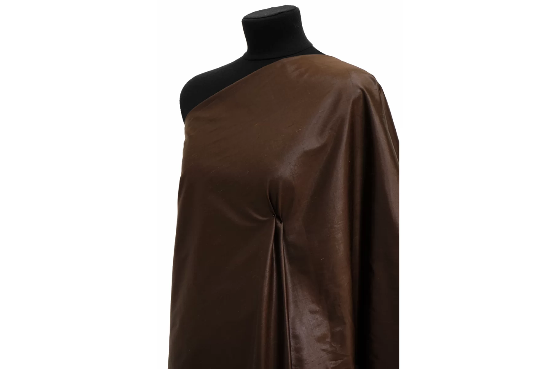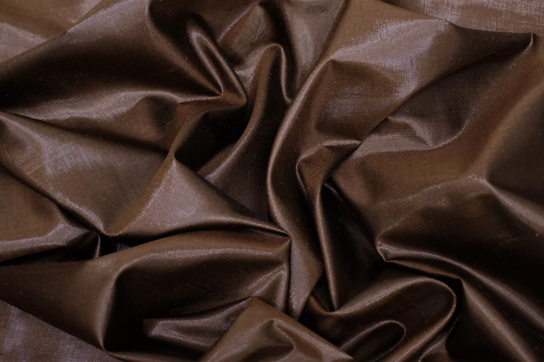 Шелковая тафта коричневого оттенка с легким блеском от Dolce & Gabbana. Плотная по плетению, отлично держит форму. Тактильно гладкая, тонкая. Мнется. Просвечивает силуэт на просвет. Не тянется. Отлично подойдет на платья, юбки, костюмные варианты и не только. При необходимости используйте подкладочный материал. Рекомендуется химчистка или деликатный уход.